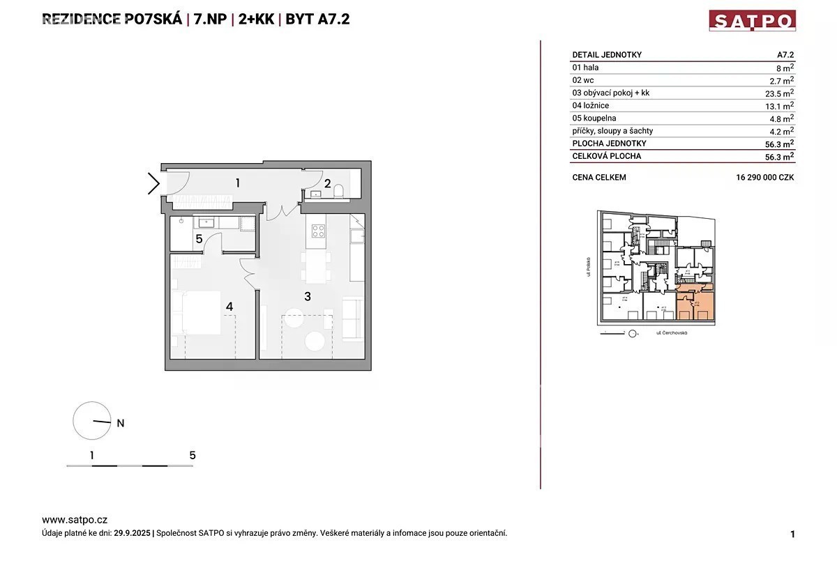 Pozvánka na virtuální prohlídku Rezidence PO7SKÁ: Srdečně Vás zveme na setkání do našeho klientského centra v následujících termínech. středa 5. 11. od 9:00 do 14:00 h čtvrtek 6. 11. od 13:00 do 19:30 h Těšit se můžete na příjemnou atmosféru, virtuální prohlídku a ukázku standardů vybavení. Součástí setkání bude také prezentace společnosti Decoland ze světa interiérů a drobné občerstvení, které zpříjemní Váš čas ve showroomu. Prosíme o rezervaci termínu na internetových stránkách SATPO. Hledáte moderní bydlení s odkazem pro další generace, které má vše, o čem jste snili? Představujeme vám prémiový byt 2+kk s dokonalým oddělením denní a noční zóny. Byt v 7. patře noblesního rohového domu s vnitřní plochou 56,3 m2 vám nabídne výjimečné zázemí na adrese, která má styl, atmosféru i duši. Výhodou tohoto bytu jsou velká ateliérová okna v obou místnostech orientovaná na východ. K bytu navíc patří sklep o velikosti 3,2 m2. Ve vinohradské ulici Polská právě dáváme život bytovému domu z počátku 20. století. Už na jaře 2026 bude připravený vám zajistit životní komfort promyšlený do posledního detailu. Realitní projekt roku 2024 oceněný Cenou veřejnosti vyniká především respektem k historii a zachováním původních zdobných prvků v exteriérech i interiérech. Nachází se jen pár kroků od náměstí Jiřího z Poděbrad, Riegrových sadů, stylových kaváren, kvalitních škol i stanice metra. Historická atmosféra Královských Vinohrad se zde potkává s moderním komfortem - kombinace, kterou si zamilujete. Jaké je uspořádání tohoto výjimečného bytu? Propojená kuchyně s obývacím prostorem umožní využít i ostrůvek a jídelní stůl pro 4 osoby. Ateliérová okna orientovaná na východ v kuchyni i ložnici zaplavují interiér ranním světlem a umocňují pocit vzdušnosti. Ložnice se díky nim stává privátní zónou klidu a pohodlí s přímým vstupem do stylové bílé koupelny. Byt i celý dům definují špičkové materiály a nadčasový design: - hliníková střešní okna - celoplošné podlahové vytápění - samostatná toaleta a en-suite koupelna - klimatizace ve všech obytných místnostech - přírodní dřevěná podlaha vyráběná na zakázku - exkluzivní bílá koupelna s vybavením Villeroy & Boch a Grohe. To vše doplňují elegantní společné prostory s historickými detaily, moderní výtah, sklep ke každé jednotce, čipový vstupní systém, videotelefon a příprava pro chytrou domácnost. K dispozici je navíc privátní wellness se saunou a fitness, stejně jako zelený vnitroblok pro chvíle klidu. V rezidenci PO7SKÁ je celkem 31 bytů, 2 ubytovací jednotky a 3 komerční prostory. Prodáno je přes 50 % jednotek a zájem nebývale roste - zajistěte si svůj domov už dnes. Jste připraveni psát nový příběh na mimořádném místě? Napište nám! Rádi vám o něm povíme více.