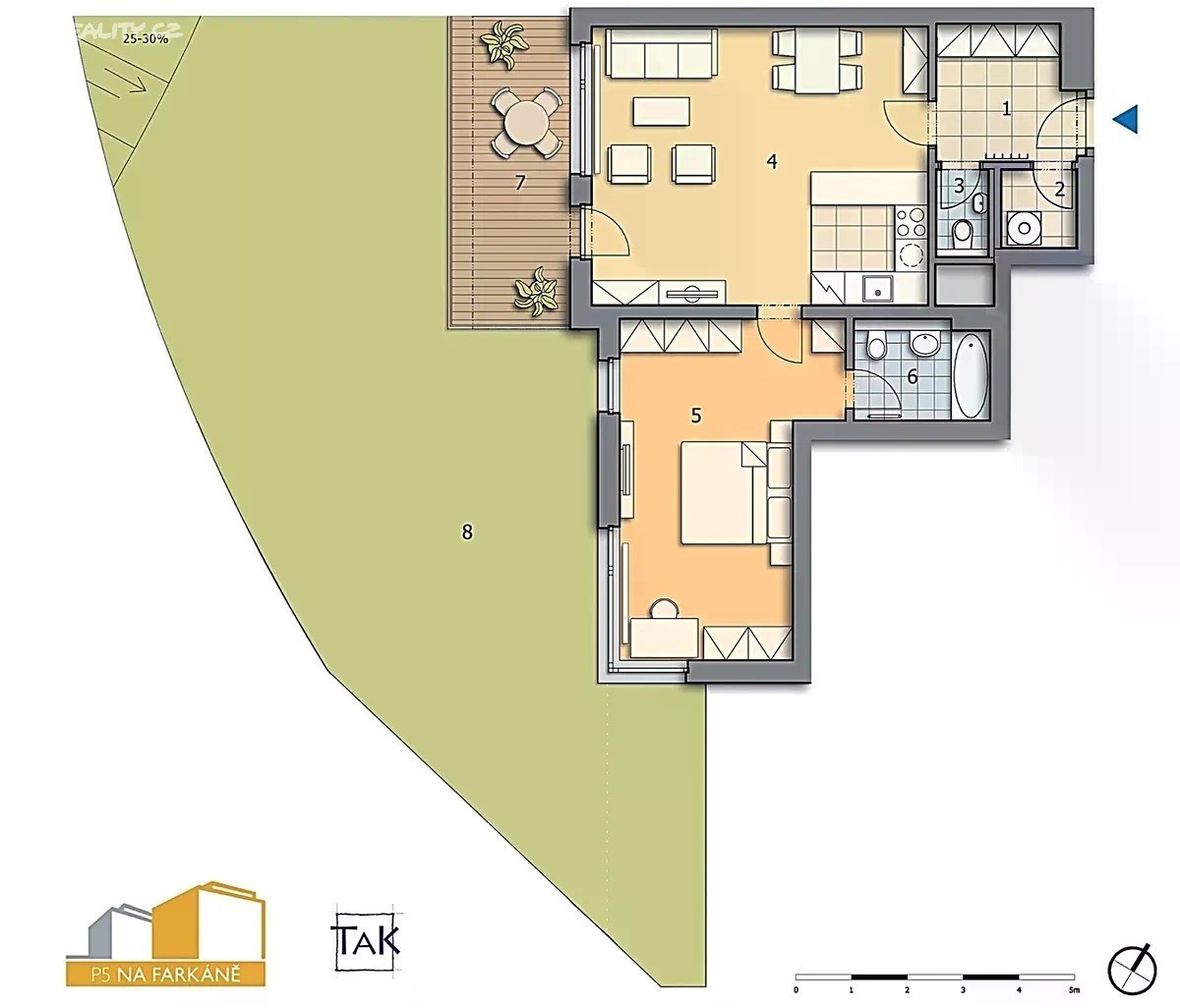 Nabízíme Vám k dlouhodobému pronájmu krásný a prostorný byt 2+kk se zahradou v projektu Rezidence na Farkáně. Luxusní byt orientovaný na jih se nachází v přízemí novostavby a nabízí velkorysou rozlohu 70,3 m2 a zahradu o velikosti 106 m2. V ceně nájmu jsou zahrnuta 2 parkovací stání - jedno garážové a jedno soukromé, venkovní, uzamykatelné stání. Dispozici bytu tvoří obývací pokoj s kompletně vybavenou kuchyní, televizní stěnou a přímým vstupem na zahradu, dále pak prostorná šatna s vestavěnými skříněmi na míru, koupelna s vytápěnou podlahou a zabudovaným sprchovým koutem a ložnice s nábytkem a postelí na míru. Ve vstupní hale se nachází vestavěné skříně, samostatná toaleta a komora s přípojkou na pračku. Vybavení bytu je ve výrazně vyšším standardu: • bezpečtnostní vstupní dveře • podlahy z pravého dřeva • designová koupelna v tmavém provedení • kuchyň značky Katalpa v bílém lesku • červeně lakované bezfalcové dveře italské značky Ferrero Legno s magnetickými zámky • venkovní bezpečnostní žaluzie • robotická sekačka Rezidence se nachází v klidné lokalitě části Prahy 5, v blízkosti metra B Radlická (cca 700 m), v blízkosti mateřské školy a 10 minut od obchodní centra Nový Smíchov. Nájemné: • 33 000 Kč / měsíc + poplatky 6 100 Kč / měsíc + elektřina • Vratná kauce 66 000 Kč • Elektřinu si nájemník přepíše na sebe • Provize realitní kanceláři 33 000 Kč + DPH Byt je volný k nastěhování ihned. Pro více informací neváhejte kontaktovat makléře.