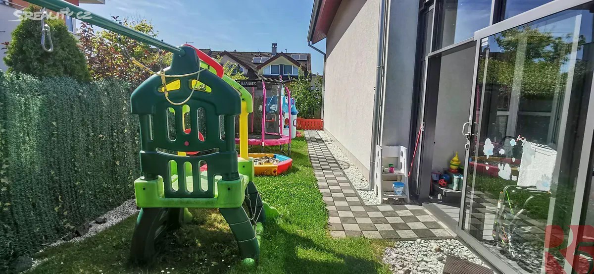 Exkluzivně dvoupodlažní rodinný dům z roku 2009, který se nachází v klidné a bezpečné slepé ulici v rezidenční části Újezdu nad Lesy. Dům o zastavěné ploše 92 m2 a pozemku 283 m2 je ve výborném stavu a nadstandardně vybaven, což z něj činí ideální místo pro rodinné bydlení. V přízemí se nachází prostorný obývací pokoj s francouzskými okny, které vedou do zimní terasy od společnosti Alukov. Obývací pokoj je propojen s kuchyňským koutem s moderní kuchyní na míru, vybavenou lakovanými dvířky a značkovými spotřebiči. Ve vstupní chodbě je k dispozici samostatná toaleta a plynový kotel se zásobníkem na vodu. Garáž, aktuálně využívaná jako tělocvična s úložným prostorem, nabízí další možnosti využití. Parkování je zajištěno na pozemku před garáží a také před vraty. V prvním patře se nachází čtyři pokoje, které jsou nyní využívány jako ložnice, pracovna, dětský pokoj se šatnou a čtvrtý pokoj přestavěný na prostornou šatnu. Okna jsou vybavena venkovními elektrickými žaluziemi, včetně střešních, což zajišťuje soukromí, tepelnou pohodu a bezpečnost. Za domem se nachází velký dřevěný domek a mnoho herních prvků pro děti, což z něj činí skvělé místo pro rodinné aktivity. Dále je zde vybudovaný zděný nadzemní bazén a zimní zahrada, která je ideální pro odpočinek. Újezd nad Lesy je vyhledávaná městská část s výbornou dopravní dostupností a kompletní občanskou vybaveností. V okolí najdete školy, školky, obchody a restaurace, přičemž zastávky MHD jsou v docházkové vzdálenosti. Dům se nachází v blízkosti přírody, cyklostezek a parků, což poskytuje kombinaci klidu a soukromí, přičemž veškerá infrastruktura je doslova za rohem. Je možnost ponechání kompletního vybavení a nábytku dle dohody, což je ideální pro okamžité nastěhování. Vřele doporučuji, dům je bez investic připraven k bydlení.