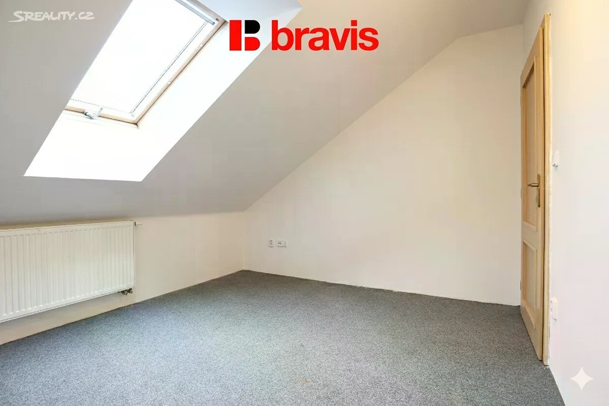 Ve výhradním zastoupení majitele nabízíme k dlouhodobému pronájmu útulné podkroví 2+1 o velikosti 65 m², nacházející se ve 2. patře rodinného domu na ulici Fryčajova v městské části Brno-Obřany. Jednotka je částečně zařízena a disponuje praktickým dispozičním řešením. Kuchyně je vybavena kuchyňskou linkou, elektrickým sporákem s troubou, jídelním stolem a židlemi. Oba pokoje jsou neprůchozí a nabízejí tak dostatek soukromí. Koupelna je zařízena sprchovým koutem, umyvadlem a toaletou. Dalším bonusem je možnost využití půdního prostoru jako úložného místa navíc. Parkování je možné bez problémů přímo před domem. Zastávka MHD se nachází cca 3 minuty chůze od domu, což zajišťuje pohodlné spojení do centra města i dalších částí Brna. Lokalita - Brno-Obřany Obřany jsou vyhledávanou rezidenční čtvrtí nabízející klidné bydlení v těsné blízkosti přírody a zároveň s výbornou dostupností do centra města. V blízkosti domu protéká řeka Svitava s oblíbenou cyklostezkou, která je ideální pro sportovní vyžití i relaxační procházky. Nedaleko se nachází také lesy a přírodní rezervace, které lákají k výletům a odpočinku v zeleni. V místě je k dispozici základní občanská vybavenost - obchody, restaurace, škola a školka, a díky blízkosti centra Brna snadno dostupné i veškeré další služby. Byt je ihned k dispozici. Prohlídky jsou možné po domluvě s uvedeným makléřem. Možnost pravidelného úkidu naší úklidovou firmou