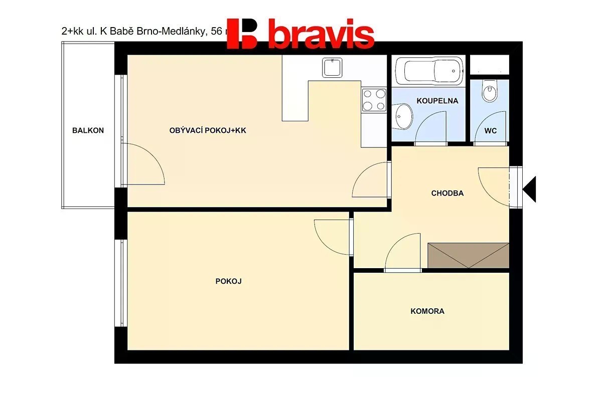 Pronájem bytu 2+kk 56 m² K Babě, Brno - Medlánky