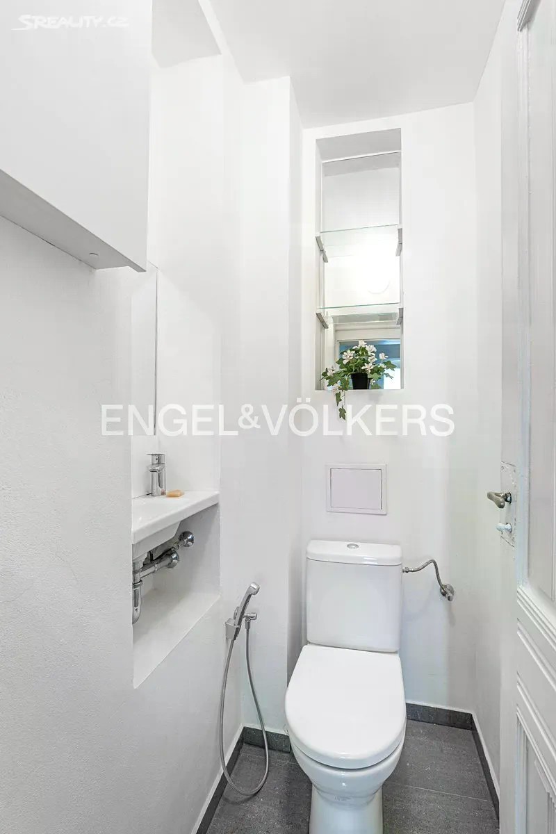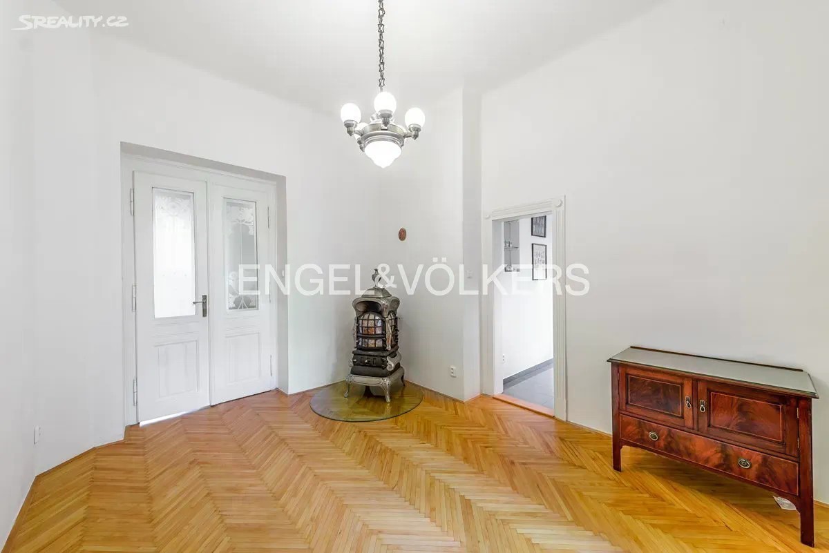 Ve druhém nadzemním podlaží zdobného nárožního činžovního domu z roku 1919, který právě prochází kompletní rekonstrukcí, se nachází elegantní a pečlivě zrekonstruovaný byt 3+1. Dům se postupně vrací ke své původní kráse - nová fasáda, páteřní rozvody, repliky špaletových oken s trojsklem a nově instalovaný výtah jsou již hotovy. V nejbližší době proběhne také obnova společných prostor a výměna vstupních dveří. Po příchodu do bytu vás přivítá prostorná a reprezentativní hala, ze které se pohodlně dostanete do všech hlavních místností. Obývací pokoj a hlavní ložnice jsou orientovány do krásného parku s fontánou, zatímco kuchyně s jídelnou nabízí výhled do tichého vnitrobloku. Dispozici doplňuje koupelna se sprchovým koutem a toaletou a další samostatná toaleta s umyvadlem. Byt kombinuje původní historické prvky s moderním komfortem - vysoké stropy se štukovou výzdobou, dřevěné parkety, nová špaletová okna a moderní kuchyňská linka se zabudovanými spotřebiči. V jídelní části zaujme půvabný původní krb, který prostoru dodává jedinečnou atmosféru. Vytápění je řešeno elektrickými přímotopy, ohřev vody zajišťuje elektrický bojler. K bytu náleží také prostorná sklepní kóje. Byt se nachází v prestižní a vyhledávané části Prahy 5 - Smíchova, jen pár minut chůze od historického centra, Janáčkova nábřeží a Kampy. Tato oblast je oblíbená pro svou klidnou atmosféru a bohatou historii, díky čemuž představuje ideální prostředí pro rodinné bydlení i reprezentativní městský život. V okolí naleznete širokou nabídku obchodů, restaurací, kaváren a kvalitních škol, včetně Francouzského lycea.