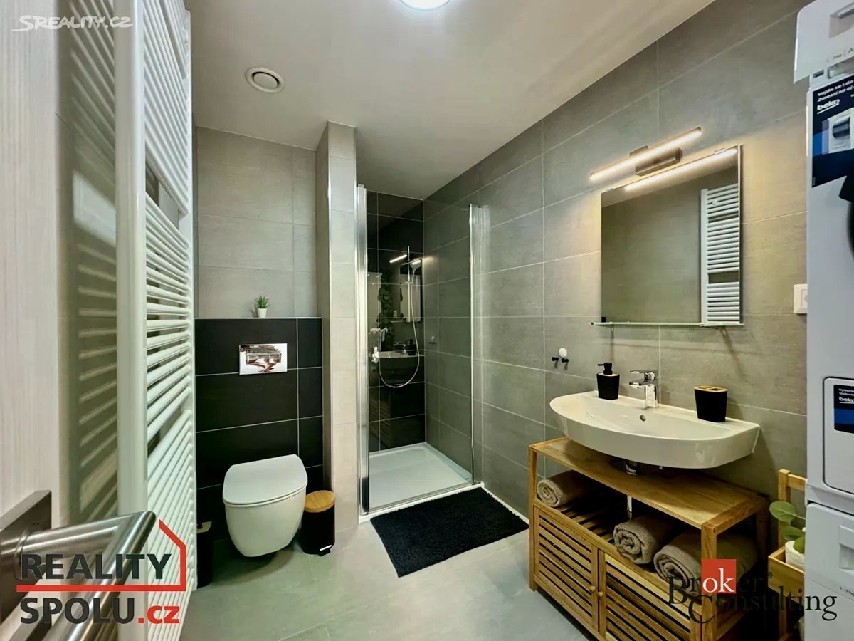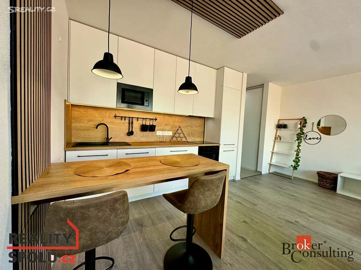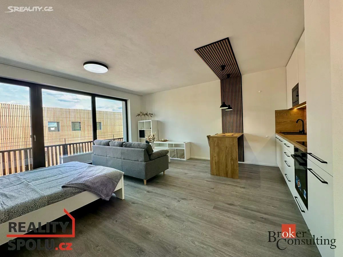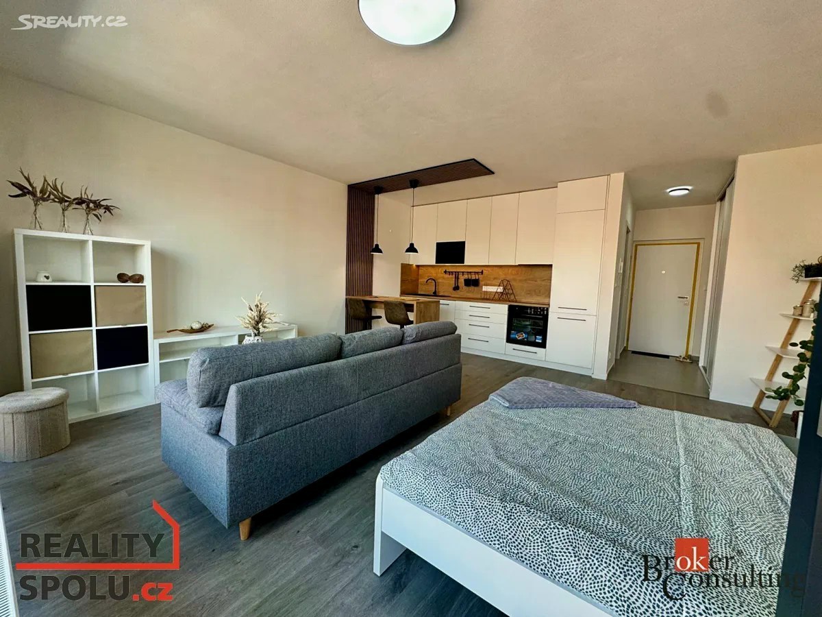 Exkluzivně nabízím k pronájmu krásný nový byt 1kk, ve vyhledávané lokalitě Nová Papírna, přímo v centru města Plzně. Světlý byt o velikosti 43 m2 se nachází v 4.NP v novostavbě s výtahem. Kolaudace proběhla v červnu 2024. Dispozice - za vstupními dveřmi do bytu na vás čeká prostorná předsíň s velkou šatní skříni. Z předsíně vstoupíte do luxusní koupelny, která obsahuje WC, pračku, sušičku a prostorný sprchový kout. Následuje obývací pokoj s kuchyňským a jídelním koutem. Z pokoje vstoupíte na lodžii s výhledem do vnitrobloku, který nabízí klidné posezení a dětské hřiště. Byt je plně vybavený nábytkem, včetně velké postele, sedačky, stolkem pod TV a jídelním pultem se židlemi. Moderní kuchyňská linka je kompletně vybavena elektrickými spotřebiči, lednice, mrazák, indukční deska, myčka a mikrovlnná trouba. Samozřejmostí je možnost připojení k vysokorychlostnímu internetu. K bytu náleží garážové stání a sklep. Vstup z garáže do domu je zajištěn výtahem. Dům je energeticky úsporný (PENB B), díky čemuž budou v bytě nízké provozní náklady. Ideální poloha domu nabízí dostupnost do centra města, cca 7 minut. Benefitem je blízkost řeky Radbuzy. Procházkou se dostanete buď do města, nebo na druhou stranu, kde najdete vyhlášenou hospůdku U Pechtů a bar U Dejva. Pro sportovně založené jsou tu tenisové a nohejbalové kurty, tělocvična a loděnice. Na druhém břehu naleznete DEPO 2015, plovárnu, supermarket Lidl a zimní stadion. V okolí veškerá občanská vybavenost a skvělá dopravní dostupnost. MHD, Autobus a vlakové nádraží. Cena za pronájem 14 900,- Kč/měsíc, kauce 30 000,- Kč a provize 18 029, - Kč (včetně DPH). Měsíční náklady 2 000, - Kč, plus el. energie. Byt je k dispozici od 1.11.2025.