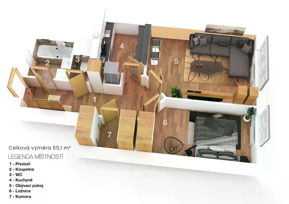 Pronájem bytu 2+kk 55 m² Benešova, Kutná Hora - Hlouška