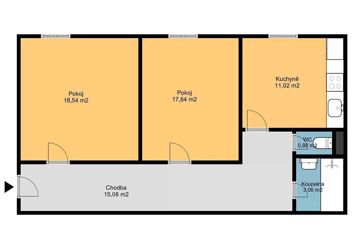Ve výhradním zastoupení majitele nabízíme k prodeji prostorný byt 2+1 o podlahové ploše 68,62 m2 ve 3.NP panelového domu (G40) v žádané lokalitě Padělky II. Byt se nachází ve 3.NP zatepleného panelového domu (bez výtahu), má plastová okna, podlahy jsou v kombinaci parkety/PVC/dlažba, vytápění ÚT dálkové. Byt je v původním stavu k rekonstrukci. Měsíční náklady na bydlení cca 5.000,- Kč. Dispozice: - Velká vstupní chodba - 15,08 m2 - Pokoj - 18,54 m2 - Pokoj - 17,84 m2 - Kuchyně - 11,02 m2 - Koupelna - 3,06 m2 - Samostatný WC - 0,88 m2 - Sklepní kóje - 2,20 m2 Lokalita nabízí klidné bydlení s výbornou občanskou vybaveností a dostupností do centra Zlína. Po předchozí domluvě jsou možné prohlídky i o víkendu.