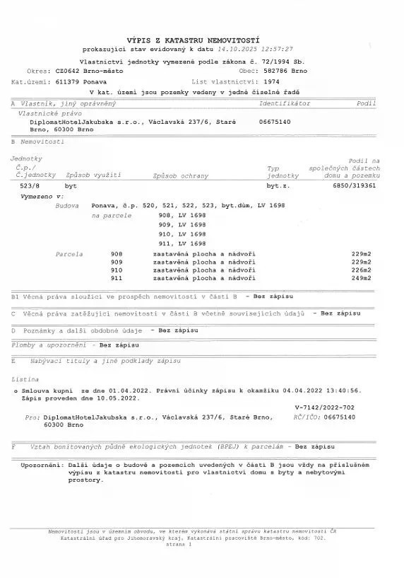Nabízíme k prodeji prostorný byt 2+1 o velikosti 78 m², umístěný v atraktivní lokalitě širšího centra Brna na ulici Tábor 44d (jednotka č. 523/8). Bytová jednotka disponuje dvěma neprůchozími pokoji, které zajišťují dostatek soukromí. Koupelna s vanou je prakticky oddělená od toalety. K dispozici je také samostatná kuchyně, předsíň a komora, která poslouží jako ideální úložný prostor. K bytu náleží sklep o velikosti cca 4 m² a v domě je k dispozici i společná kolárna a kočárkárna. Parkování je pohodlně dostupné přímo před domem. Měsíční náklady SVJ činí cca 6 500 Kč. Jednotka se nachází v atraktivní oblasti v bezprostřední blízkosti centra Brna. Samotné centrum Brna je dostupné v pěší vzdálenosti. V těsné blízkosti se nachází tramvajová a autobusová zastávka Klusáčkova či Šelepova, obě zajišťující dojezd do centra Brna během deseti minut. V okolí se nachází kompletní občanská vybavenost včetně několika obchodů, restaurací, barů a ostatních služeb. V blízkosti je známá restaurace Šelepka a také park, supermarket Billa a Lidl, základní a mateřská škola, dětské hřiště, fitness centrum, tenisová hala apod. Významný brněnský park Lužánky je vzdálen 10 minut chůze. Tento byt představuje skvělou příležitost k vlastnímu bydlení i investici v jedné z nejžádanějších částí Brna. Součástí inzerátu je i vizualizace pokojů. Byt se nabízí bez vybavení. V případě zájmu o více informací nebo prohlídku nás neváhejte kontaktovat.