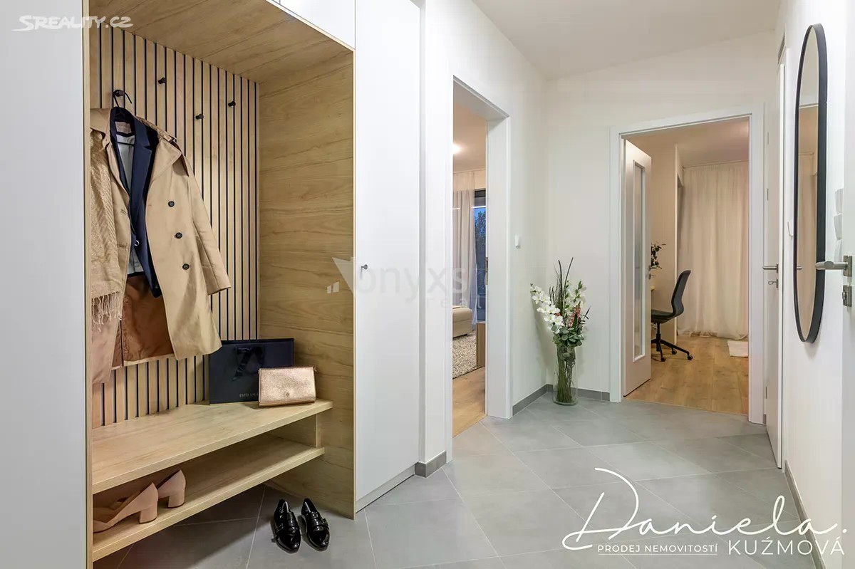 Designový byt 2+kk s balkónem a parkovacím stáním, s výhledem na zámeček - Karlín, U Sluncové Tady se budete cítit jako doma. Designový byt 2+kk s prostorným balkónem nabízí přesně to - pohodlí, klid, vynikající dostupnost i inspirativní výhledy. Byt je kompletně zařízený, připravený k okamžitému nastěhování. Stačí si přinést osobní věci a můžete bydlet. Představte si, že po náročném dni otevřete balkonové dveře, posadíte se s čajem nebo sklenkou vína a necháte na sebe působit pohled do zeleně a na zámeček. Ticho sem tam naruší jen tlumený zvuk míčků z nedalekých tenisových kurtů - a pokud budete chtít, můžete si jít sami zahrát. Milujete vaření? Moderní kuchyňská linka s velkorysým prostorem je připravena na vaše kulinářské experimenty a posezení s přáteli. Když se návštěva zdrží, rozkládací gauč v obývacím pokoji poskytne pohodlné přespání. Ráno vás probudí sluneční paprsky v ložnici s výhledem do korun stromů. Pokud pracujete z domova, můžete klidně zůstat - v ložnici je připravený pracovní kout, který vám umožní soustředěně pracovat a zároveň si užívat klidného prostředí. Všechny své věci si přehledně uložíte do šatny. Samozřejmostí je garážové parkovací stání a sklep, které k bytu náleží. Rezidence U Sluncové spojuje dvě věci, které se málokdy potkají: klidné prostředí téměř venkovské atmosféry a přitom docházkovou vzdálenost do centra Karlína a na metro a tramvaje. Nájemné: 33.300 Kč/měsíc Poplatky: 6.000 Kč + elektřina 1.570 Kč, 2x najem jako kauce, provize RK Plocha: 55 m² + balkón 7 m² Příslušenství: Parkovací stání, sklep Byt, ve kterém se budete těšit každý den domů. Zavolejte mi a ráda vás provedu.