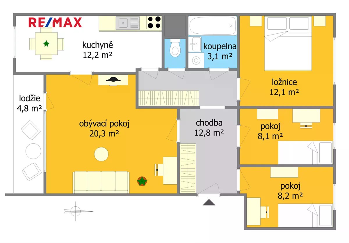 Provizi u této nabídky nehradíte! Hledáte byt, kde bude mít každý člen rodiny svůj vlastní pokoj a společně si užijete prostorný obývák s lodžií? Nebo investici, která se díky blízkosti Campusu Masarykovy univerzity a FN Brno bude dlouhodobě výborně pronajímat studentům? Nabízím vám byt 4+1 o celkové ploše 88,5 m² (81,7 m² podlahová plocha + lodžie 4,8 m² + sklep 2 m²). Dispozice umožňuje mít všechny pokoje neprůchozí - ideální pro rodinné bydlení i pro pronájem až šesti studentům. Obývací pokoj je prostorný a světlý, s přímým vstupem na lodžii. Kuchyň má dostatek místa i na jídelní stůl, ložnice a dva menší pokoje poskytnou soukromí dětem, rodičům nebo nájemníkům. Obývací pokoj i lodžie jsou vysoko nad terénem a působí velmi světlým dojmem. Naopak ložnice a dva menší pokoje mají okna na severní stranu, níže nad zemí, takže jsou klidnější a tmavší - což je na spaní i pro studenty spíš výhoda. Tato skutečnost je zohledněna i v ceně, která je díky tomu pro kupující atraktivnější. Byt je v původním, ale dobře udržovaném stavu - funkční kuchyňská linka, vestavěné skříně, koupelna s vanou a samostatné WC. Velkou výhodou je prostorná předsíň s možností další vestavěné skříně. Panelový dům je plně zateplený a po rozsáhlé revitalizaci. SVJ funguje bez dluhů a s dostatečným fondem oprav. V okolí jsou dětská hřiště, školy a školky, sportovní areál Pod Plachtami i chráněná přírodní lokalita Kamenný vrch. Zastávka MHD je 3 minuty chůze - na Campus Square dojedete za pár minut, do centra pohodlně během čtvrthodiny. Autem se snadno napojíte na dálnici D1 i městský okruh. Napište mi nebo zavolejte - rád vám sdělím více informací a domluvíme si termín prohlídky.