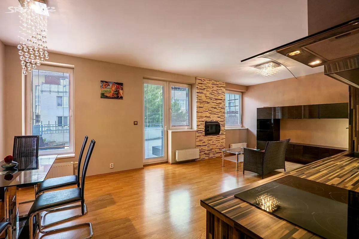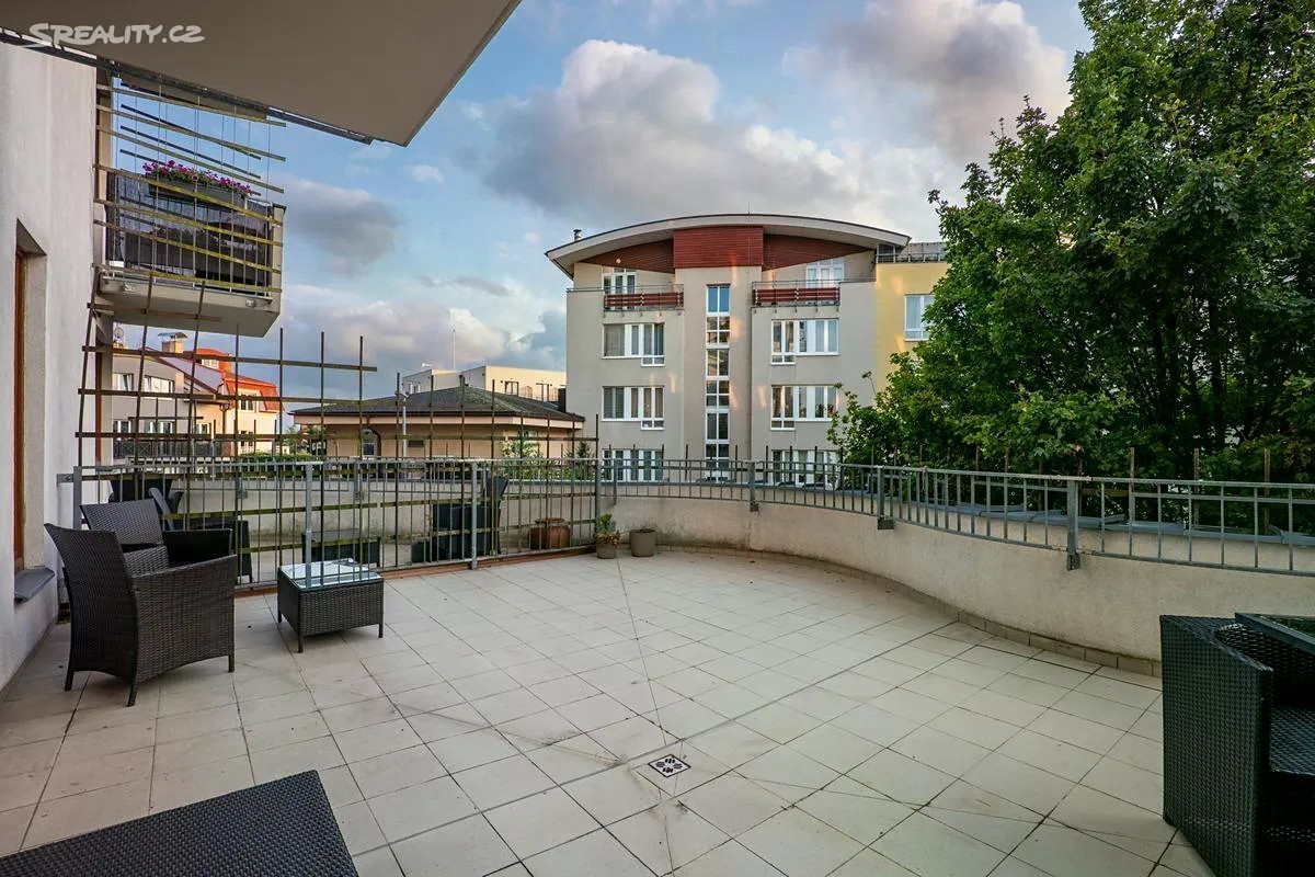 Pro milovníky klidu a pohody si dovoluji nabídnout atraktivní byt 1+kk s prostornou terasou. Byt se nachází v Praze 9 - Kyjích, v lokalitě s osobitým kouzlem, v blízkosti zeleně a cykostezek, veškerou občanskou vybaveností a s výbornou dostupností do centra. V docházkové vzdálenosti cca. 5-ti minut se nachází nejen stanice metra B Rajská zahrada, ale také vlakové nádraží, ze kterého se dostanete za 15 minut do centra Prahy. Samotný byt je situován v přízemí cihlového domu s úrovni oken více než 1.patra. Byt je dispozičně řešen jako 1+kk. ale lze jej rozdělit na byt 2+kk. Celková plocha bytu činí 43,9 m2 včetně venkovní komory 2,2 m2. K bytu náleží terasa o ploše 37,3 m2, která vyzývá k příjemnému posezení, slunění, grilování nebo také k pěstování vlastních rajčátek. Byt je velmi zdařile a nápaditě designově proveden. Je vybaven kuch. linkou se zabudovanými spotřebiči, vestavěnou skříní v předsíni. V pokoji se nachází biokrb. Veškerá okna směřují na terasu a jsou orientována na západní stranu, v oknech jsou instalovány žaluzie. Vytápění bytu a ohřev teplé vody zajišťuje plynový kondenzační kotel. K bytu je možné přikoupit podzemní garážové stání, které se nachází hned ve vedlejším domě. Stání je prostorné a uzpůsobené i pro větší vozy. V domě jsou nízké měsíční náklady, PENB budovy je C. Dům je monitorován kamerovým systémem a zabezpečen bezpečnostní agenturou. Neváhejte a domluvte si prohlídku tohoto jedinečného bytu ještě dnes.