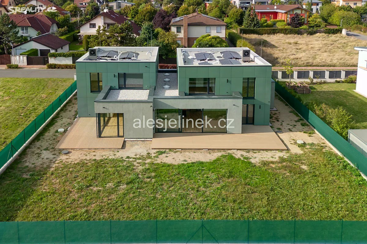 Dům A+B Exkluzivně nabízím pronájem novostavby celého dvojdomu o dispozici 5+kk+4+kk ve vyhledávané a klidné lokalitě Kunratic. Dům se nachází v blízkosti lesoparku Bažantnice, v docházkové vzdálenosti rybníka Šeberák a Kunratického lesa - ideální poloha pro relaxaci i aktivní odpočinek. Vysoký standard bydlení - úplná novostavba, vysoká kvalita materiálů i provedení, užitná plocha 417 m², zahrada, terasa. Pět parkovacích stání na pozemku, další místa před domem. Moderní a energeticky úsporný dům - solární panely, tepelné čerpadlo, podlahové topení, světlovody. Mezinárodní a bilingvní školy a školky - v dosahu například PORG, Prague British International School/Nord Anglia, Sunny Canadian International School, International Montessori Preschool a Montessori Vrbičky. Místní kvalitní ZŠ Kunratice 15 min pěšky. Výborná dopravní dostupnost - autobusová zastávka MHD 10 min pěšky, stanice metra C (Opatov/Chodov) do 10 minut. Dobře dostupná jsou také business centra The Park Chodov, Roztyly Plaza a BB Centrum Brumlovka. Autem snadný přístup na D1 a vnější pražský okruh. Široká nabídka nákupních možností - v okolí například OC Westfield Chodov, OC Kunratice, Billa, Tesco, Lidl. Preference dlouhodobého pronájmu. Ideálně současně obě poloviny dvojdomu. Unikátní příležitost vybrat si souseda, přestěhovat širší rodinu, kolegu. Oba domy jsou k nastěhování od 1.10. kdy bude dokončen interiér a zahrada. 3D prohlídka domu je mezi fotografiemi. Kontaktujte mě s dotazy, nebo pro sjednání osobní prohlídky. Nájemné 175 000 Kč měsíčně + energie (energeticky úsporný dům).