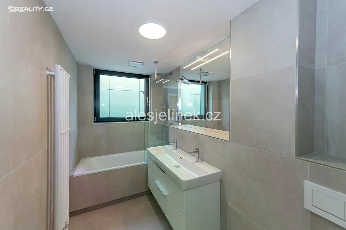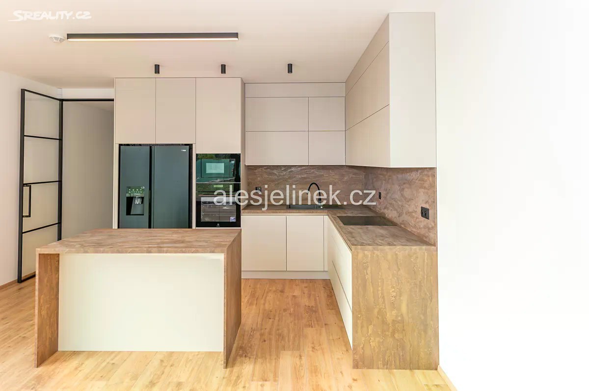 Dům B Exkluzivně nabízím pronájem novostavby poloviny dvojdomu o dispozici 4+kk ve vyhledávané a klidné lokalitě Kunratic. Dům se nachází v blízkosti lesoparku Bažantnice, v docházkové vzdálenosti rybníka Šeberák a Kunratického lesa - ideální poloha pro relaxaci i aktivní odpočinek. Vysoký standard bydlení - úplná novostavba, vysoká kvalita materiálů i provedení, užitná plocha 169 m², zahrada, terasa. Tři parkovací stání na pozemku, další místa před domem. Moderní a energeticky úsporný dům - solární panely, tepelné čerpadlo, podlahové topení, světlovody. Mezinárodní a bilingvní školy a školky - v dosahu například PORG, Prague British International School/Nord Anglia, Sunny Canadian International School, International Montessori Preschool a Montessori Vrbičky. Místní kvalitní ZŠ Kunratice 15 min pěšky. Výborná dopravní dostupnost - autobusová zastávka MHD 10 min pěšky, stanice metra C (Opatov/Chodov) do 10 minut. Dobře dostupná jsou také business centra The Park Chodov, Roztyly Plaza a BB Centrum Brumlovka. Autem snadný přístup na D1 a vnější pražský okruh. Široká nabídka nákupních možností - v okolí například OC Westfield Chodov, OC Kunratice, Billa, Tesco, Lidl. Preference dlouhodobého pronájmu. Ideálně současně s pronájmem domu A o dispozici 5+kk a užitné ploše 248 m². Unikátní příležitost vybrat si souseda, přestěhovat širší rodinu, kolegu. Oba domy jsou k nastěhování od 1.10. kdy bude dokončen interiér a zahrada. 3D prohlídka domu je mezi fotografiemi. Kontaktujte mě s dotazy, nebo pro sjednání osobní prohlídky. Nájemné 75 000 Kč měsíčně + energie (energeticky úsporný dům).