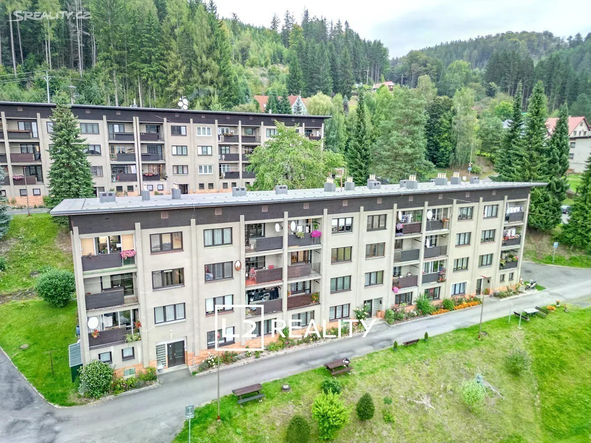 Na pomezí Krkonoš a Jizerských hor, v obci Jablonec nad Jizerou je prostorný a světlý byt 3+1 o velikosti 81 m², který spojuje pohodlí městského bydlení s kouzlem horské přírody. Z obývacího pokoje, kuchyně i přilehlé lodžie se otevírá úchvatný výhled do zeleného údolí. Jižní orientace obytné části zajišťuje dostatek slunce a světla v bytě, zatímco obě ložnice směřující na sever poskytují ideální podmínky pro odpočinek. Interiér tvoří obývací pokoj propojený s kuchyní vybavenou původní linkou s nerezovým dřezem, prostorem pro sporák a místem pro samostatně stojící lednici s mrazákem, dvě ložnice s vestavěnými skříněmi, koupelnu s vanou a umyvadlem a samostatné WC. Další vestavěné skříně v chodbě i ložnicích nabízejí dostatek úložného prostoru. Podlahy v obytných místnostech pokrývají bukové parkety, v obývacím pokoji a ložnici v současné době kryté kobercem. Ke kuchyni přiléhá lodžie o velikosti 4 m², v přízemí domu je k dispozici prostorná sklepní kóje o velikosti 8 m². O vytápění bytu se starají akumulační elektrická kamna, elektroinstalace je hliníková, rozvody vody a kanalizace plastové, okna plastová s izolačním dvojsklem, vnitřní dveře dřevěné v ocelových zárubních, v chodbě, koupelně na WC pak keramická dlažba. V případě zájmu je k dispozici k samostatná garáž, která je umístěna cca 100m od domu, cena garáže je 690.000,- Kč. V centru obce funguje městský úřad, pošta a základní služby, nechybí menší obchody s potravinami, restaurace a kavárny. Pro rodiny je k dispozici mateřská i základní škola, včetně školní družiny, a nechybí lékárna ani ordinace praktických lékařů; specializovaná zdravotní péče je dobře dostupná v blízkých Semilech či Vrchlabí. Město má autobusové i vlakové spojení, které zajišťuje pohodlný dojezd do okolních krkonošských středisek i do větších měst. Přímo v Jablonci se nachází lyžařský areál Kamenec a řada turistických a cyklistických tras, v okolí pak množství možností pro zimní sporty, výlety i horskou turistiku. Díky poloze v malebném údolí Jizery tu obyvatelé i návštěvníci najdou klidné prostředí, krásnou přírodu a přitom dostatečnou občanskou vybavenost pro každodenní život.