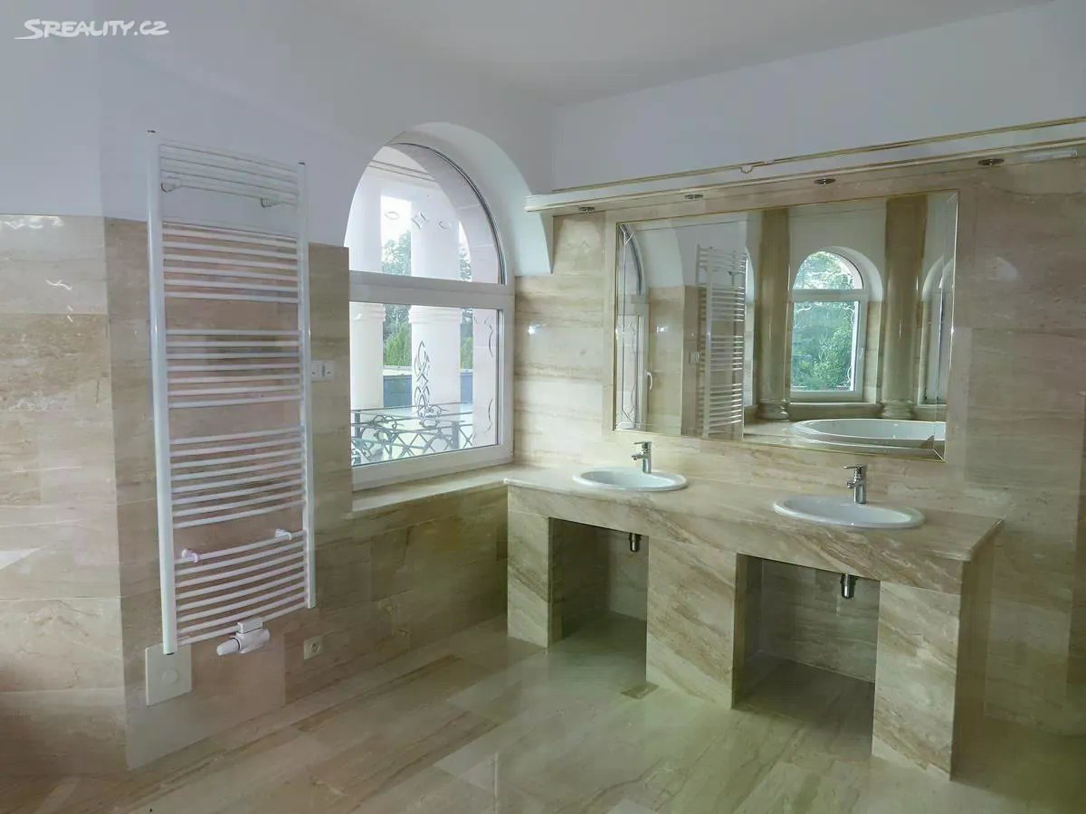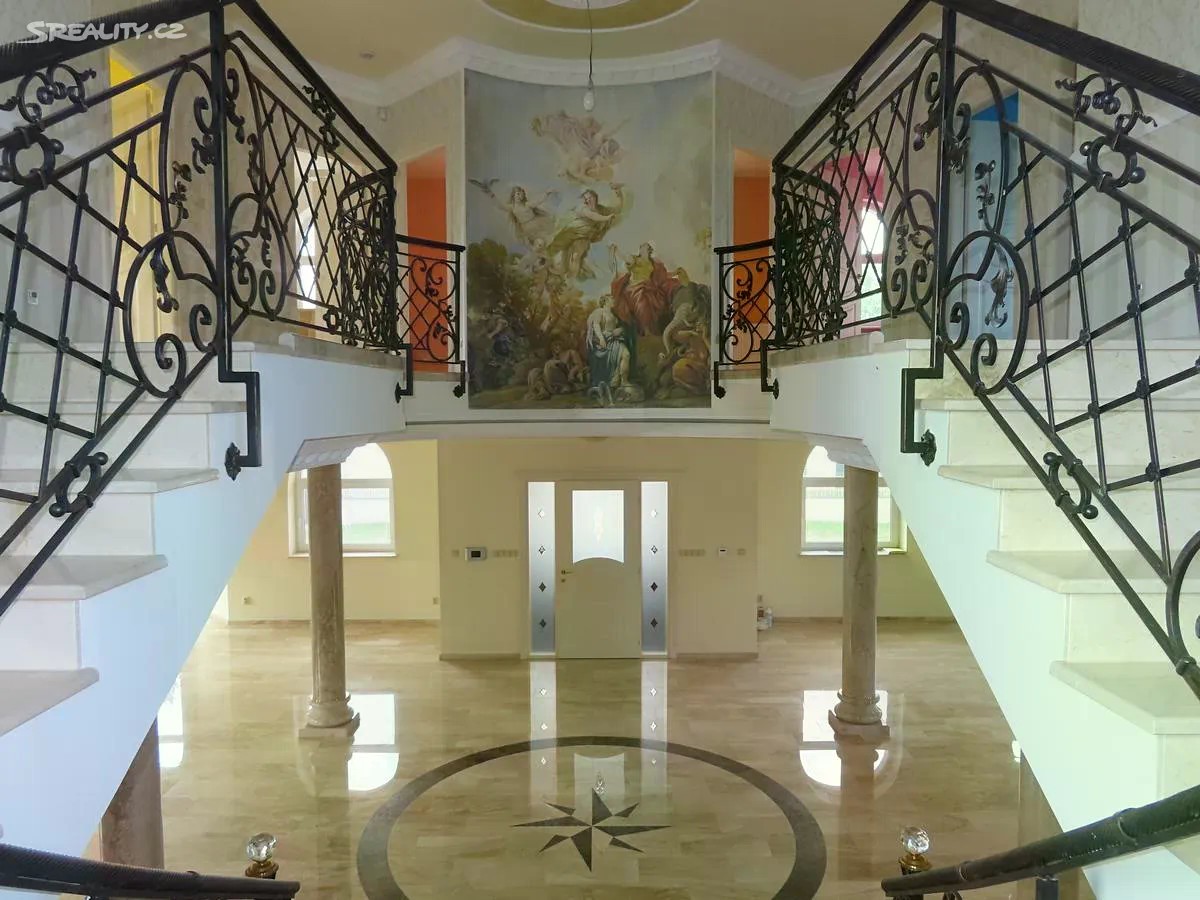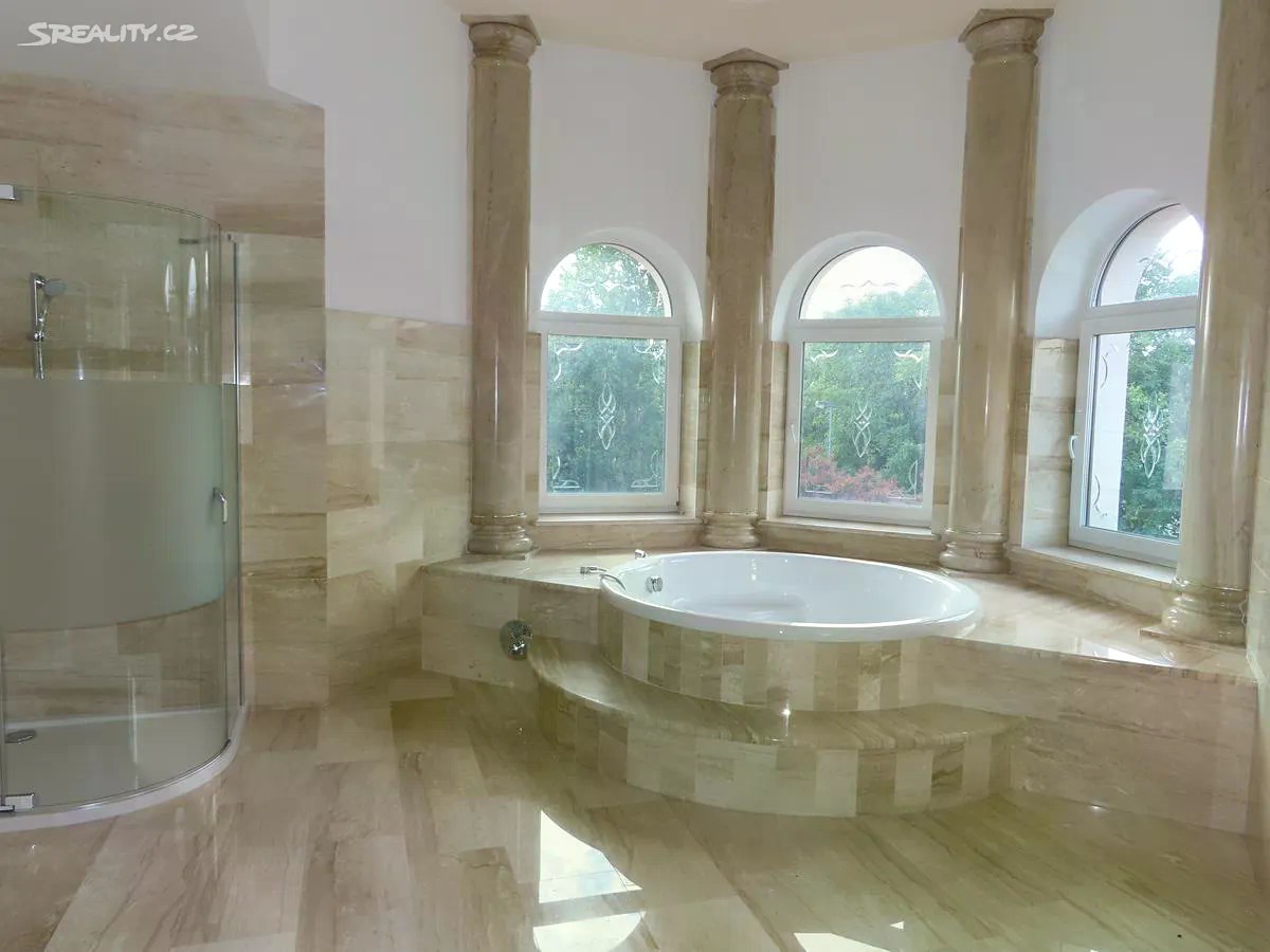 Ráda bych Vám nabídla jedinečnou vilu v klidné a vyhledávané lokalitě Klánovic. V Klánovicích naleznete veškerou občanskou vybavenost. Dopravní spojení je výborné. V blízkosti jsou silnice I.třídy s napojením na dálnice a městský okruh. Veřejnou dopravu zajišťují autobusy MHD směřující nejen ke stanici metra B Černý Most, ale také na vlakové nádraží, odkud se pohodlně a rychle dostanete do centra Prahy. Vila je situována v zástavbě rodinných domů a vil na rohovém pozemku o celkové ploše 886 m2. Zahrada u domu je udržovaná, osázená okrasnými dřevina s klidovou zónou s jezírkem. Pozemek je opatřen automatickou závlahou. Vila je čtyřpodlažní o celkové užitné ploše 600 m2. Při vstupu vás osloví velká obytná hala s mramorovou podlahou, vysokými stropy, impozantním schodištěm a krásnými nástěnnými malbami. V přízemí se dále nachází příprava na kuch. linku, výstup na terasu a soc. zázemí. 1.patro domu je připraveno jako soukromá část disponující několika samostatnými pokoji a prostornou koupelnou 2.patro domu je velký otevřený prostor, který si může nový vlastník případně rozdělit na menší části a uzpůsobit svým potřebám. Nachází se zde 2. koupelna s vířivou vanou. Suterén domu tvoří prostorná garáž pro 6 aut, technické zázemí domu, úložné prostory a společenská místnost. Nechybí zde ani další sociální zázemí. Vila je vytápěna plynovým kondenzačním kotlem, je vybavena centrálním vysavačem. Podlahy ve všech obytných podlažích jsou mramorové. Vnější parapety jsou žulové, vnitřní mramorové. Celý dům je obložen travertinem. Vyhřívané okapy jsou samozřejmostí. Podlahy v celém domě jsou samonosné, v případě potřeby je zde možné vybudovat výtah, kterým se dostanete z garáží až do podkroví. PENB je B, což zajistí komfortní a energeticky nenáročné bydlení. Připraveno k okamžitému nastěhování. Neváhejte a domluvte si prohlídku této impozantní vily ještě dnes.