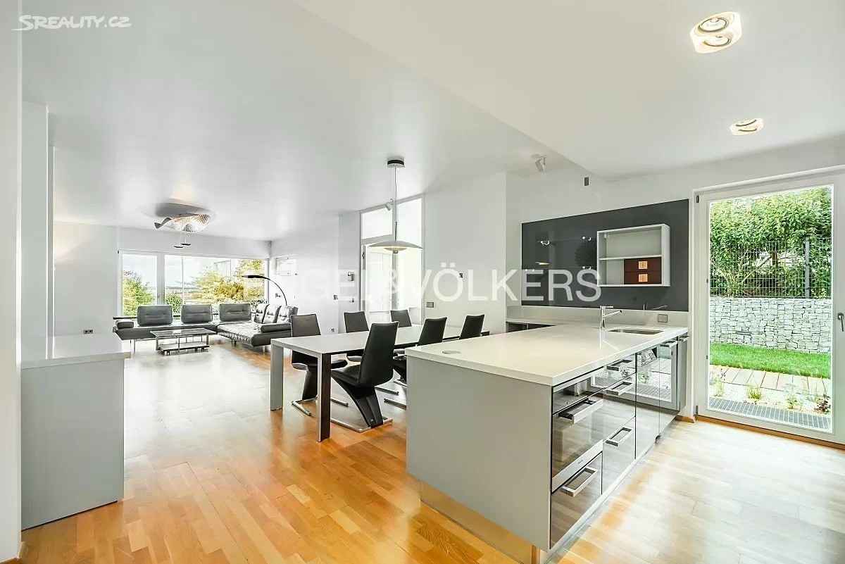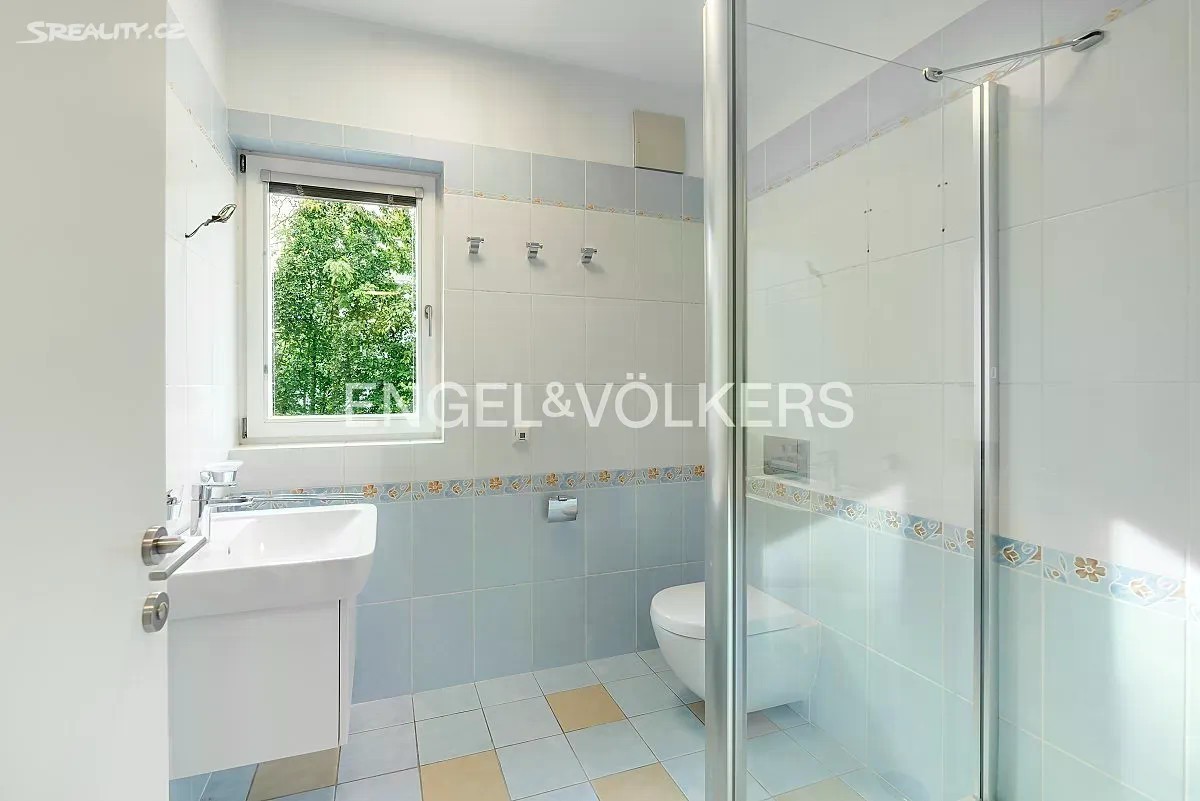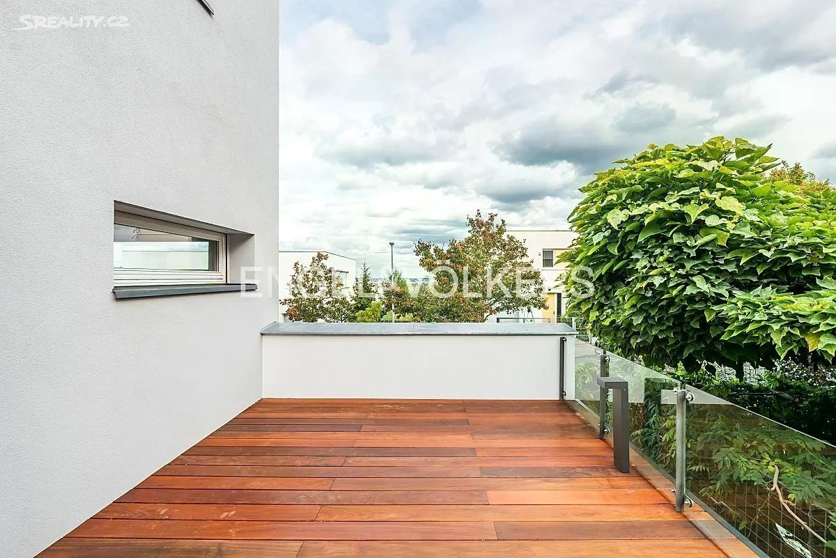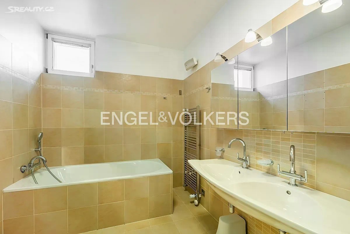 Přinášíme Vám k pronájmu rodinný dům ve vysokém standardu s dispozicí 6+kk, se zahradou a vnitřním bazénem, v exkluzivní lokalitě pražské Hanspaulky. Dům se skládá z 5 samostatných ložnic, obývacího pokoje s kuchyňským koutem, 4 koupelen, garáže a vnitřního bazénu se saunou. Po vstupu do přízemí se nachází zádveří se samostatnou toaletou. Dále zde najdeme prostorný obývací pokoj s kuchyňským koutem, který je plně vybaven spotřebiči Miele včetně kávovaru, konvektomatu a vinotéky. Z obývacího pokoje je přístup na zahradu s terasou. Zahrada je vybavena bezúdržbovým systémem. V prvním patře se nacházejí 3 samostatné ložnice - hostinský pokoj, dětský pokoj a manželská ložnice - společně se dvěma koupelnami. Na chodbě v tomto patře jsou vestavěné skříně. V posledním patře se nachází samostatná ložnice, která může sloužit také jako pracovna, s další koupelnou. Z této ložnice je přístup na prostornou terasu s nábytkem a úžasným výhledem na Pražský hrad a Tróju. V prvním podzemním podlaží se nachází dominanta celého domu - vnitřní bazén se saunou. Bazén má profesionální systém chlorování a čištění. V tomto podlaží se nachází také samostatný byt s koupelnou, ideální například pro hospodyni. V chodbě je dostatek vestavěných skříní. Garáž disponuje dvěma parkovacími stáními a nabíječkami na elektromobil 10-20 kW. Před garáží je prostor pro další tři auta. Elektřina činí přibližně 10 000 Kč a plyn 7 000 Kč.