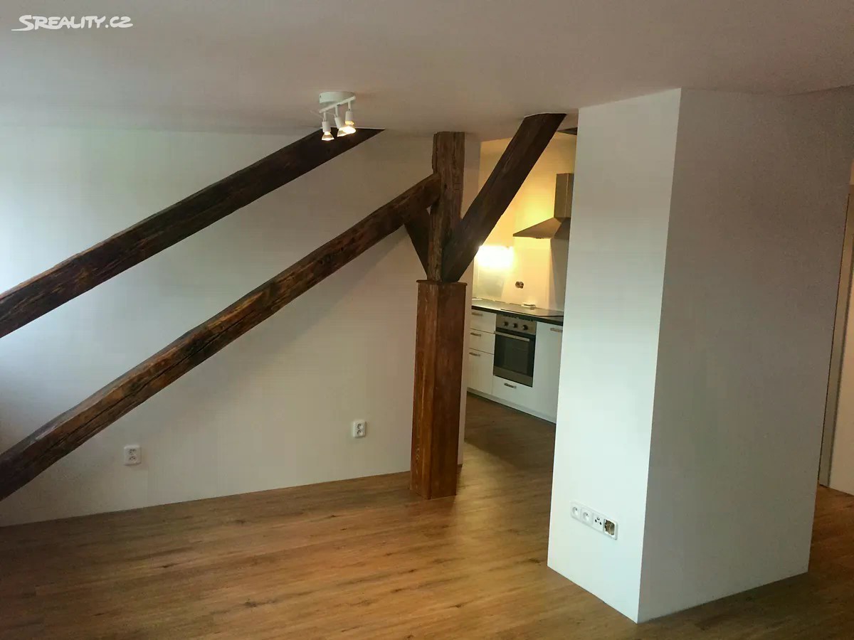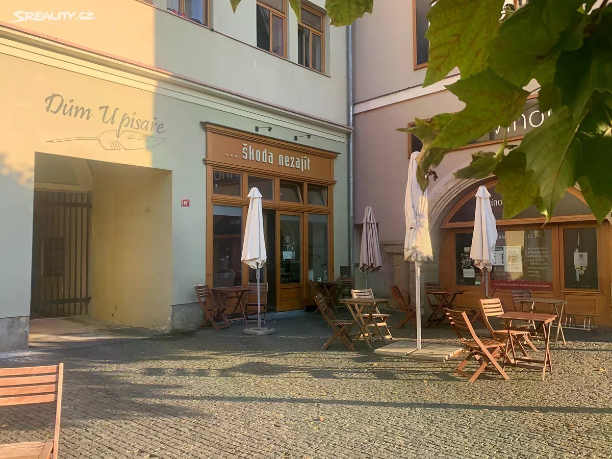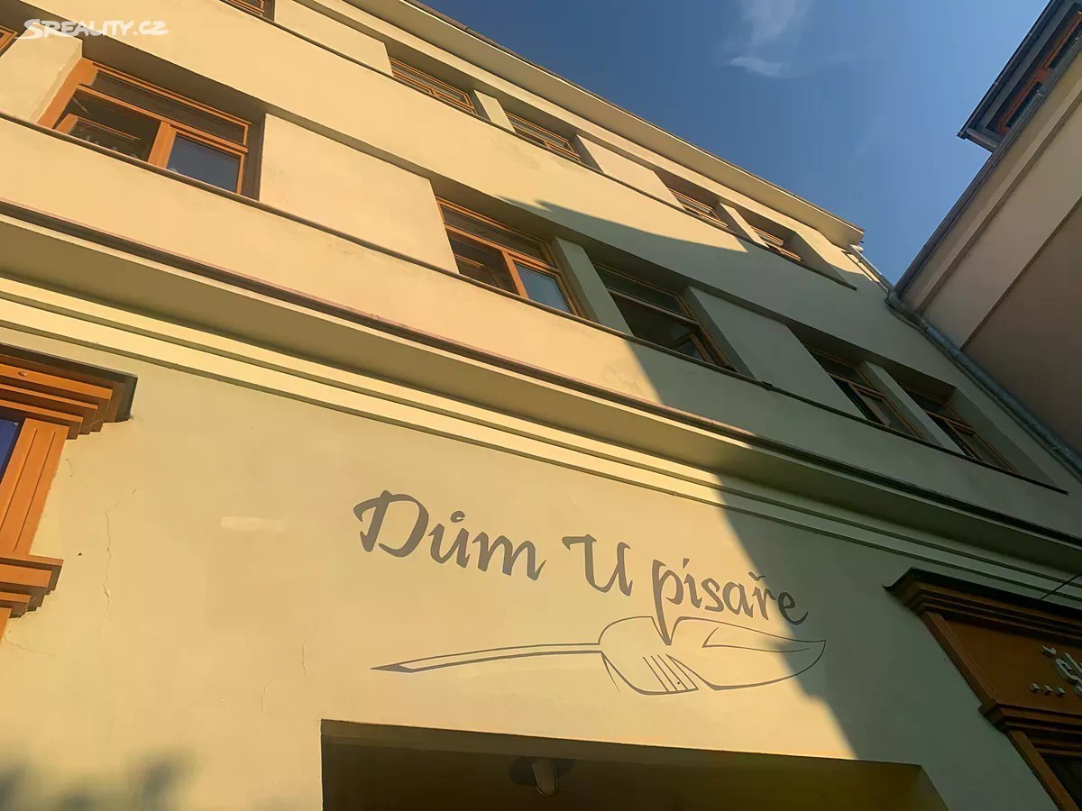 Dlouhodobě (minimálně na 2 roky) pronajmeme podkrovní byt v domě U Písaře přímo na Staroměstském náměstí. Ideální lokalita. Byt má krásný výhled přes střechy okolních domů do krajiny - ze všech pokojů - viz foto. Byt je umístěn ve 4. nadzemním podlaží, v podkroví hlavní budovy bytového domu. V přízemí domu je kavárna "škoda nezajít", která je příjemným zázemím obyvatel domu. Dispozice: obývací pokoj s kuchyňským koutem, přiznané renovované původní trámy, samostatná ložnice, šatna, koupelna se sprchovým koutem a toaletou. Podkrovní byt s velkými vikýřovými okny, výborně tepelně izolovaný, v obytných pokojích je příprava na mobilní klimatizaci. Koupelnový nábytek, TV přípojka, dřevěná eurookna, textilní žauzie, internet zaveden optickým kabelem - možnost převzetí služby v bytě. Nová kuchyně IKEA bílý lesk - vestavná lednička, indukční varná deska, myčka, trouba, digestoř. Byt je částečně vybaven - malý gauč, barový stůl a židle, manželská postel. Byt bude volný dle dohody. Vhodný svou dispozicí pro 2 osoby, nekuřáky, bez domácích zvířat. Elektroměr bude převeden přímo na podnájemníka, zálohy cca 1000 Kč/měsíc. Zálohy na teplo 1000 Kč/měsíc, na spotřebu vody 300 Kč/osobu a měsíc, budou vyúčtovány dle skutečné spotřeby. Možnost pronájmu parkovacího místa přímo ve dvoře domu. Vratná kauce 2 nájmy. Pouze vážní zájemci, kontaktujte nás prosím písemně.