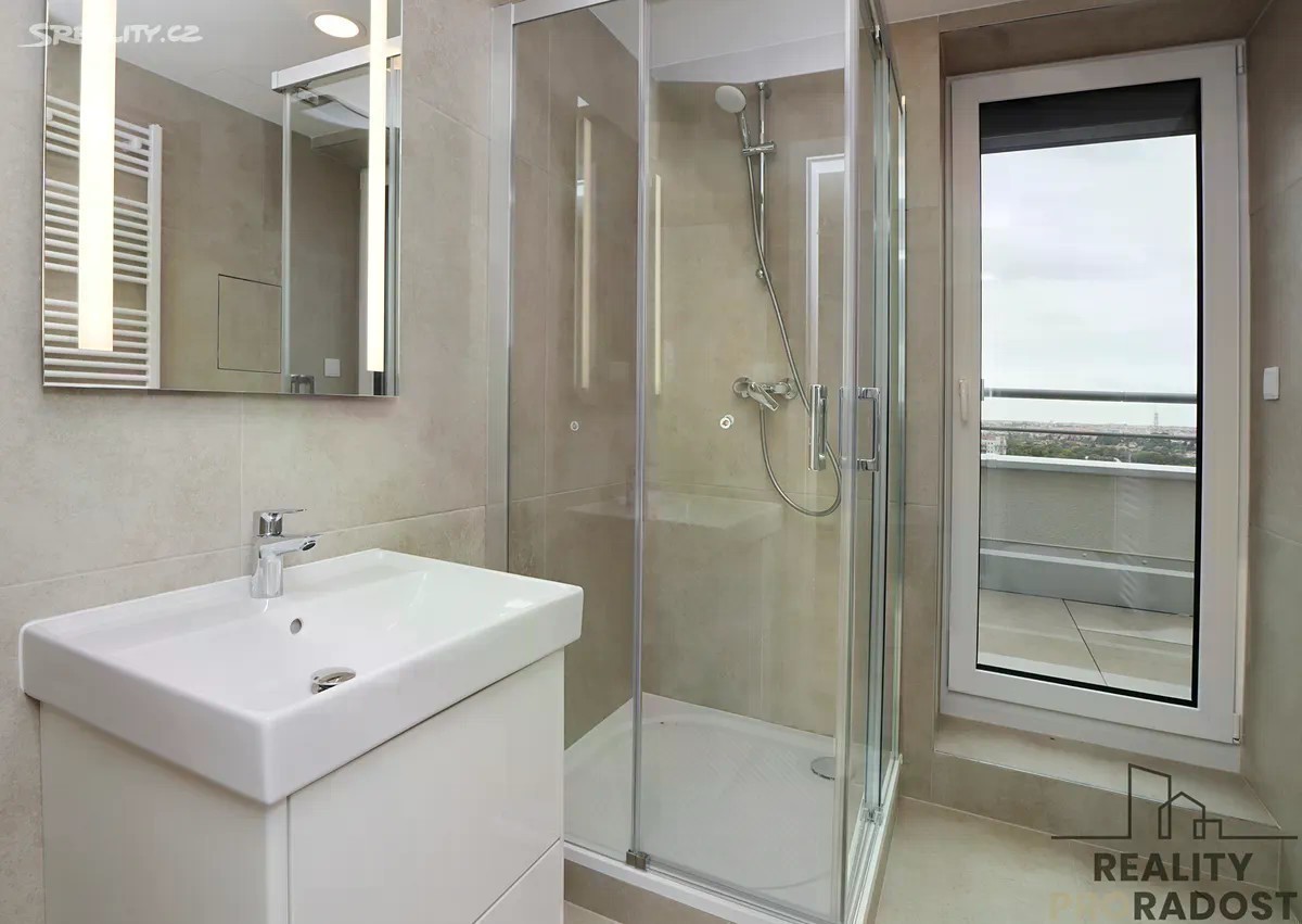 Nabízíme k pronájmu krásný střešní byt 2+kk, 61,4m2 + terasa 20,7m2. Byt se nachází v právě dokončeném viladomu na adrese Praha 10 - Záběhlice, Klapálkova ulice. Tento bytový projekt nabízí vysoký standart bydlení. Jednotka se nachází ve 4. podlaží novostavby s výtahem a sestává ze vstupní předsíně, ve které je umístěna šatní skříň vyrobená na míru, dále sestává z obývacího pokoje propojeného s kuchyňským koutem, jedné samostatné ložnice, koupelny se sprchovým koutem a wc a komory. K bytu patří sklepní kóje 4,4m2 a jedno parkovací stání v přízemí domu. Další venkovní vyhrazené stání je možné si pronajmout za poplatek. Moderní kuchyňská linka je vybavena elektrickou troubou, varnou deskou, lednicí s mrazákem, myčkou a mikrovlnkou. Kuchyně poskytuje dostatek úložného a pracovního prostoru. Z obývacího pokoje, ložnice i koupelny se vchází na terasu s krásným výhledem do okolí. Velká okna v bytě poskytují dostatek světla a hezký výhled do otevřeného prostoru. Na oknech jsou instalovány venkovní žaluzie na dálkové ovládání, byt je vybavený klimatizací. Podlahy jsou vinylové, v bytě je podlahové topení, v koupelně je umístěná pračka. Dům se nachází 7 minut chůzí od autobusové zastávky. Nedaleko lesoparku a vodní nádrže Hostivař, Toulcova dvora a meandrů Botiče. Cena pronájmu je 29.900,-Kč + poplatky 5.113,-Kč + spotřeba elektřiny, kauce 2 měsíční nájmy, + provize pro rk. Byt je nekuřácký, vhodný dvě osoby nebo menší rodinu.