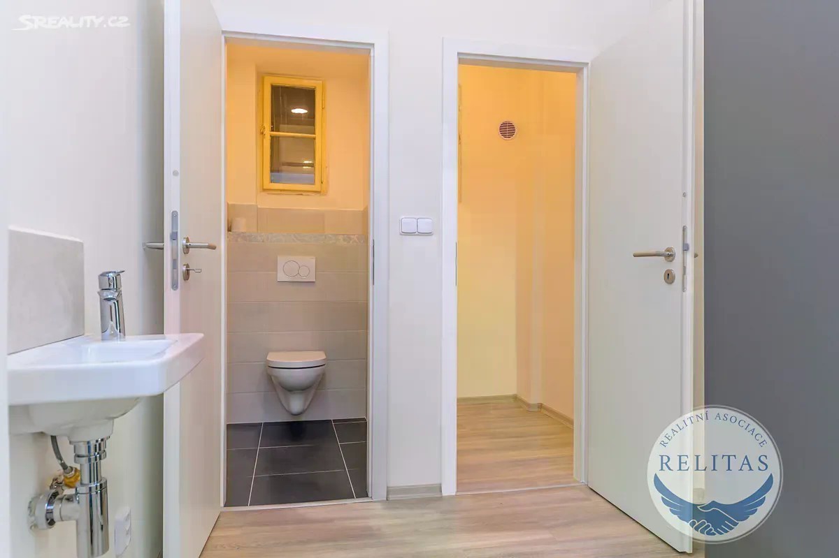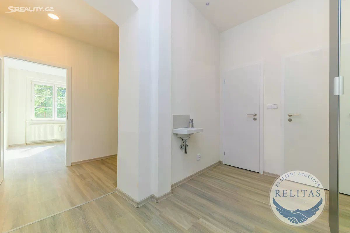 Exkluzivně zprostředkuji k dlouhodobému pronájmu citlivě kompletně zrekonstruovaného bytu 2+kk, 59,6 m² v 1. patře cihlové budovy v Peroutkově ulici, Praha 5 - Smíchov, ve vyhledávané části Malvazinky. Byt se sestává z předsíně, obývacího pokoje s kuchyňskou linkou, koupelny se sprchovým koutem, ložnice, samostatně umístěné toalety a komory (vizte, prosím, půdorys). Kuchyňská linka je vybavena elektrickou i mikrovlnnou troubou, varnou deskou, myčkou nádobí a digestoří. V koupelně je k dispozici pračka. Lednice může být dodána. Předsíň a ložnice je vybavena prostornými šatními skříněmi. K bytu přísluší prostorná sklepní kóje a zahrádka v klidném vnitrobloku (52 m²), do kterého jsou orientována i okna bytu. Zároveň lze využívat společnou lodžii v mezipatře. Přímo před domem se nachází autobusová zastávka Malvazinky s dostupností na stanici metra =B= Anděl 6 min. Internet lze sjednat od Vodafone, T-Mobile i O2. Záloha za služby činí 1 200 Kč/měsíc pro první osobu, každá další osoba + 500 Kč. Elektroměr (odhadovaná spotřeba ~ 1 000 Kč/měsíc) a plynoměr (odhadovaná spotřeba ~ 2 000 Kč/měsíc) bude převeden na nájemce. Měsíční náklad na bydlení včetně záloh a energií může tak pro dvě osoby činit ~ 4 700 Kč/měsíc. Při uzavření nájemní smlouvy je třeba uhradit odměnu realitní kanceláře a vratnou kauci ve výši nájmu. Nájemní smlouva je uzavírána na jeden rok, v případě oboustranné spokojenosti je možné ji každý rok prodlužovat. Byt je ihned k dispozici. Pronajímatel si vyhrazuje právo vybrat nájemce dle jím zvolených kritérií. Do not hesitate to contact me if you are English speaker. Vřele doporučuji prohlídku.