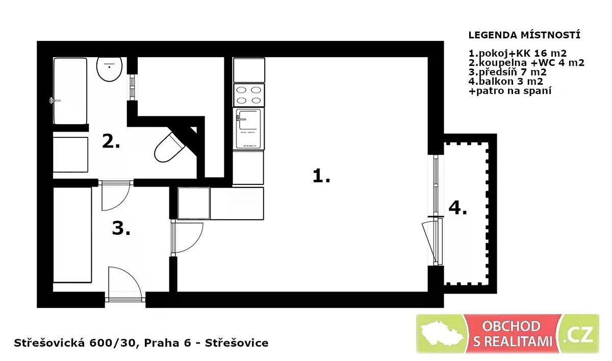 Bytová jednotka 1+KK s balkonem se nachází v menším bytovém domě na adrese Střešovická 600/30, Praha 6 (Střešovice). Všichni obyvatelé domu můžou užívat společnou terasu na zahradě! Byt je ve velmi dobrém stavu a je částečně vybavený. V předsíni se nachází velká skříň, koupelna je vybavena pračkou. Kuchyňská linka je vybavena pečící troubou, indukční varnou deskou, odsavačem par, kombinovanou chladničkou a myčkou. Okna je možné zastínit venkovními roletami, vchodové dveře jsou bezpečností. Z obytné místnosti je výstup na balkon, ze kterého je pěkný výhled do zahrady. Z hlavní obytné místnosti je přístupné velkorysé patro na spaní. Veškeré vybavení bytu je zachyceno v přiložené fotodokumentaci, která obsahuje i dispoziční plánek bytu. Velmi dobrá občanská vybavenost i dopravní dostupnost. Přímo před domem je zastávka TRAM, 6 minut na metro trasy A Hradčanská. Nájemné 17.800 Kč, služby v domě 800 Kč pro jednu osobu. Ke službám v domě je potřeba připočítat spotřebu elektrické energie, přibližně 2.500 Kč / měsíc (vytápění akumulačním přímotopem, případně v koupelně podlahovým topením, ohřev vody boilerem). Jistota (kauce) 25.000 Kč, odměna realitní kanceláře jedno měsíční nájemné.