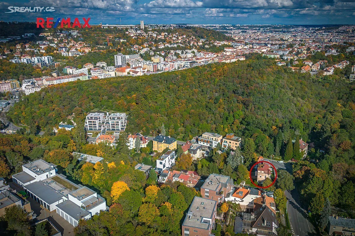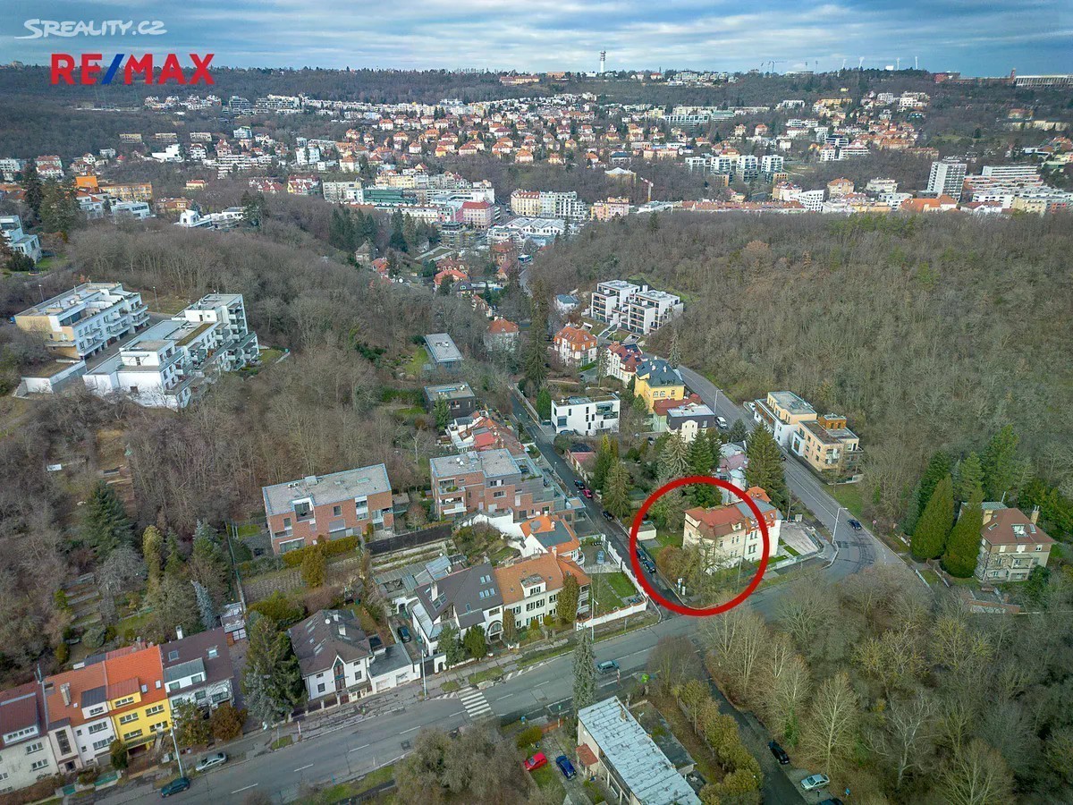 Nabízíme výhradně k prodeji třípodlažní vilu v Praze 5 - Košířích, ul. Jinonická. Nemovitost se nachází na vlastním dostatečně velkém pozemku, disponuje původní stavební dokumentaci datovanou r. 1907, upoutá typickou ornamentálností se znaky secesní architektury, zejména na fasádě. Stavba je celá podsklepená. Suterén má samostatný vchod také ze zahrady. Je zde předsíň a 3 sklepní místnosti (původně sklep, prádelna a sklad potravin). Do nadzemních podlaží stoupá točité schodiště na které se v 1. NP připojuje hlavní vchod a dále propojuje tři nadzemní podlaží. V prvním nadzemním podlaží se z předsíně vstupuje do kuchyně, dvou pokojů a koupelny se sprchou a WC. Druhé podlaží bylo rozšířeno přístavbou do zahradní části domu a nabízí největší podlahovou plochu. Nachází se zde kuchyně, pokoj do zahrady s balkonem a opět dva pokoje s jižní a západní orientací. Dále koupelna a samostatné WC. Třetí podlaží je podkrovní, nabízí předsíň, kuchyň, pokoj, koupelnu se sprchou a WC. Také půdu. Byty v jednotlivých podlažích jsou v současné době řešeny jako tři samostatné bytové jednotky, včetně samostatného vytápění kotli na zemní plyn. Dům je v dobrém, zachovalém stavu, byla provedena výměna oken, modernizace koupelen, zachován původní stavební záměr. Zajímavým a ozvláštňujícím prvkem krásného secesního domu je vystupující rohová arkýřová věžička nesoucí označení vily jménem Marta. Pěkný dům s klasickou dispozicí tří samostatných bytů může upoutat i možností nenáročného převedení na využití pro komerční účely nebo pro využití kombinované. Tedy například část nemovitosti v 1.NP jako sídlo firmy i s technickým a servisním zázemím v prostorném suterénu a další dvě horní podlaží jako pěkné byty. Vhodné například pro dentální, plastickou nebo jinou zdravotnickou soukromou kliniku. K domu přiléhá zatravněná odpočinková zahrada s několika vzrostlými stromy. Z boční ulice se vjíždí do samostatné garáže nebo na parkovací místo přímo na pozemku. Nabízená nemovitost je velkou příležitostí získat a dále investovat do pěkné, poctivé a jedinečné stavby na lukrativním místě ve vyhledávané vilové a diplomatické části Praha 5 - Košíře.