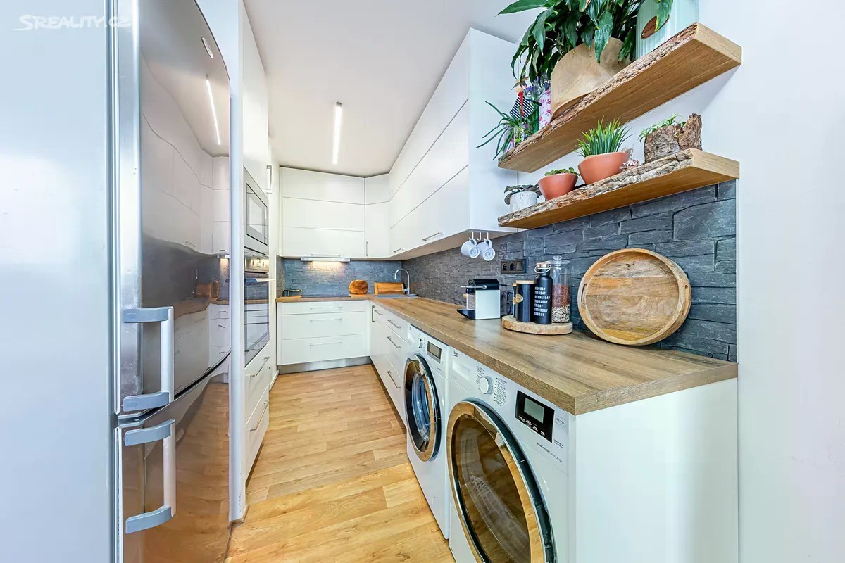 Nabízíme Vám krásný byt o dispozici 3+kk s podlahovou plochou 86 m², který se nachází v 9. podlaží bytového domu v oblíbené a klidné části Prahy 5 - Stodůlek. Tato lokalita je ideální pro ty, kdo hledají rovnováhu mezi městským životem a blízkostí přírody. Byt disponuje lodžií o velikosti 7 m² orientovanou na východní stranu klidné ulice s nádherným výhledem do Prokopského údolí - ideální místo pro ranní kávu nebo večerní odpočinek. Dispozice bytu 3+kk je řešena neprůchozími pokoji, otevřený a prosvětlený prostor odpovídá současným trendům. Byt prošel rekonstrukcí a splňuje kritéria moderního bydlení. Součástí bytu je také sklepní kóje o ploše 3 m², která poskytuje praktický úložný prostor a možnost využití kočárkárny a kolárny. V bytě jsou nová plastová okna s izolačními trojskly, nové bytové jádro, nová elektroinstalace, nové rozvody vody a odpadů, koupelna s velkým sprchovým koutem, vestavěné WC Geberit, nové interiérové dveře, LED osvětlení celého bytu, vestavěné skříně. Kuchyňská linka na míru včetně vestavěných spotřebičů (myčka, horkovzdušná trouba včetně indukční desky, mikrovlnná trouba, lednice, digestoř), granitový kuchyňský dřez. Bytový dům je po celkové revitalizaci. Zateplená fasáda, střecha, okna, výtah. Nově zrekonstruované společné chodby a vstupní dveře včetně otevírání pomocí čipů. Dům se nachází v klidné a zelené lokalitě s výbornou dopravní dostupností - stanice metra B Hůrka a Lužiny jsou v docházkové vzdálenosti, stejně jako autobusové zastávky. V okolí najdete veškerou občanskou vybavenost, včetně škol, školek, obchodů, restaurací či zdravotnických zařízení. Jen pár minut chůze vás dělí od Prokopského údolí, které je ideálním místem pro procházky, sport i relaxaci v přírodě. S financováním vám rádi pomůžeme - dokážeme zajistit kompletní servis včetně vyřízení hypotéky. Pro více informací nebo prohlídku bytu kontaktujte makléře nemovitosti.