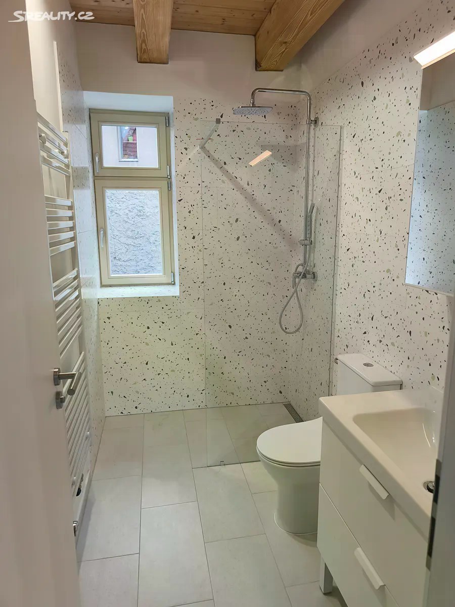 V zastoupení majitele Vám nabízím pronájem krásného mezonetového bytu dispozice 3+KK a podlahovou plochou 81 m2 v centru města Slaný s parkovacím stáním ve dvoře. Byt je nový, kolaudovaný v letošním roce. Do bytu se vchází po venkovních schodech. V bytě je prostorný obývací pokoj s kuchyňským koutem, koupelnou a WC v prvním patře a v podkroví se pak nachází dva samostatné pokoje - ložnice, technická místnost a WC. Byt je moderní a praktický nejen na pohled a použitými interiérovými materiály, ale především i podlahovým vytápěním a klimatizací, čímž se řadí do úsporného bydlení. Velkou výhodou je parkovací místo ve společném dvoře, který je z ulice uzamčen. Nájemné činí 20.200,- Kč, zálohy na provoz 4.800,- Kč (zahrnují elektřinu, vodu a teplo). Vratná kauce činí 35.000,- Kč. K nastěhování od 1.11.2025.