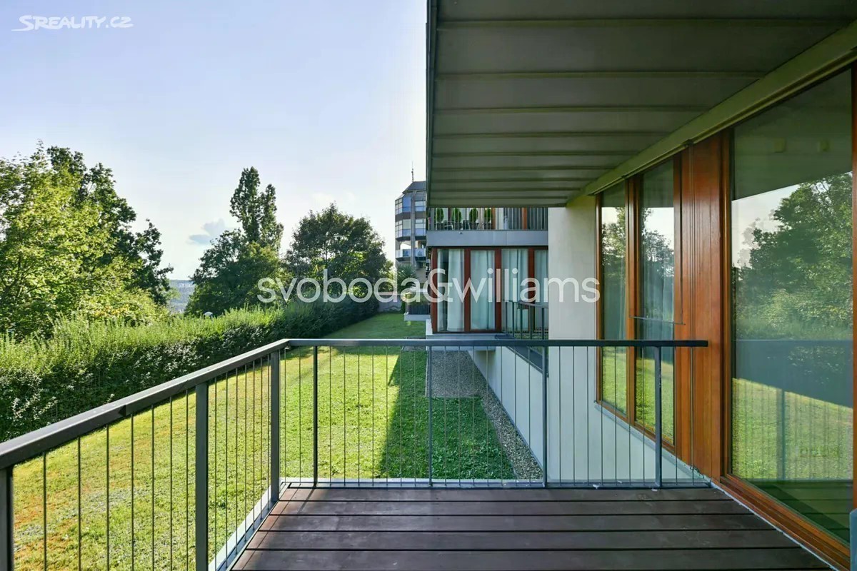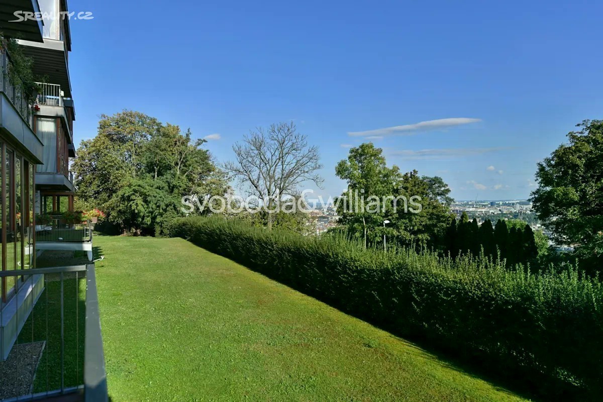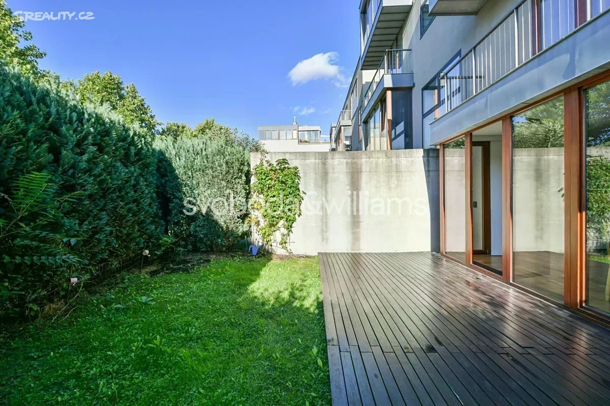 Částečně zařízený byt s 42 m2 zahrádkou, 13 m2 terasou a pěkným výhledem do zeleně situovaný v přízemí uzavřeného rezidenčního komplexu Villa Park Strahov s nepřetržitou recepční službou, ostrahou a podzemním parkováním. Atraktivní klidná lokalita na strahovském kopci s dobrou dopravní dostupností do centra, na letiště, do Francouzského lycea a mezinárodních škol v Praze 6. Interiér bytu tvoří otevřený obývací pokoj s balkónem, plně vybavená otevřená kuchyň se vstupem na zahrádku, 2 samostatné ložnice, koupelna s vanou a toaletou, technická komora, toaleta pro hosty a vstupní hala. Parkety, podlahové topení, bezpečnostní vstupní dveře, mnoho francouzských oken, pračka, myčka, TV, videotelefon, alarm. Jedno parkovacího stání v garáži v ceně. Sklepní kóje.