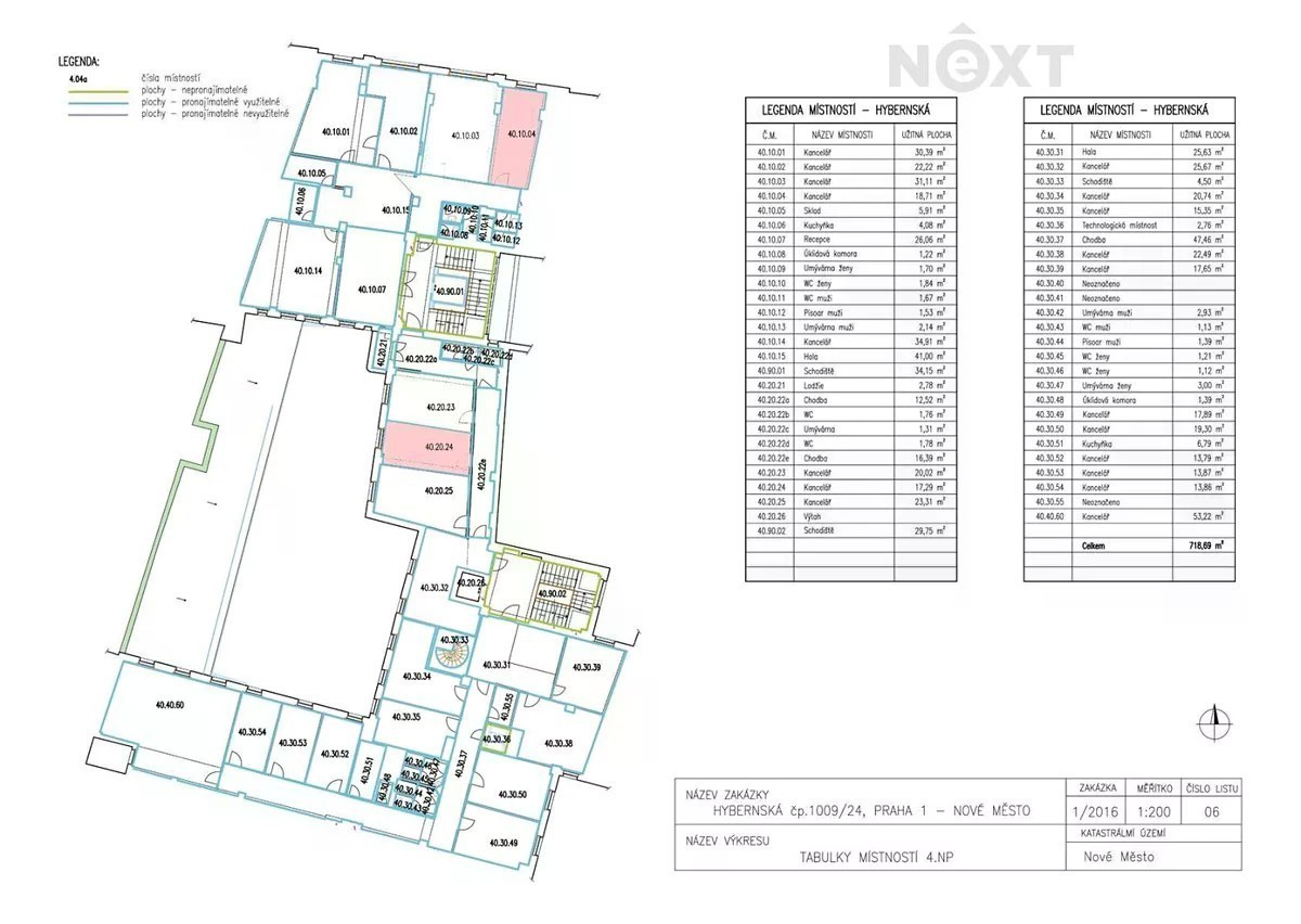 Nabízíme k pronájmu kancelář o celkové ploše 20,98 m² (kancelář 18,71 m² + podíl na společných prostorech 2,27 m²) ve 3. patře administrativního objektu Hybernská centrum. Viz přiložený plánek č. 40.10.04. Kancelář je kompletně zasíťovaná, vybavená vlastní klimatizační jednotkou. K dispozici je sdílené sociální zázemí a kuchyňka. Nájemné: CZK 450/m2/měsíc + DPH (efektivní nájemné při délce nájemní smlouvy alespoň na 3 roky). Zálohy na služby: CZK 120/m2/měsíc + DPH. Objekt má velmi dobrou dopravní dostupnost - pěší vzdálenost od metra „C“ Hlavní nádraží a „B“ Náměstí republiky. Součástí nabídky jsou ilustrační fotografie. Pro více informací volejte makléřku. Pro komunikaci uvádějte evidenční číslo zakázky N114309.