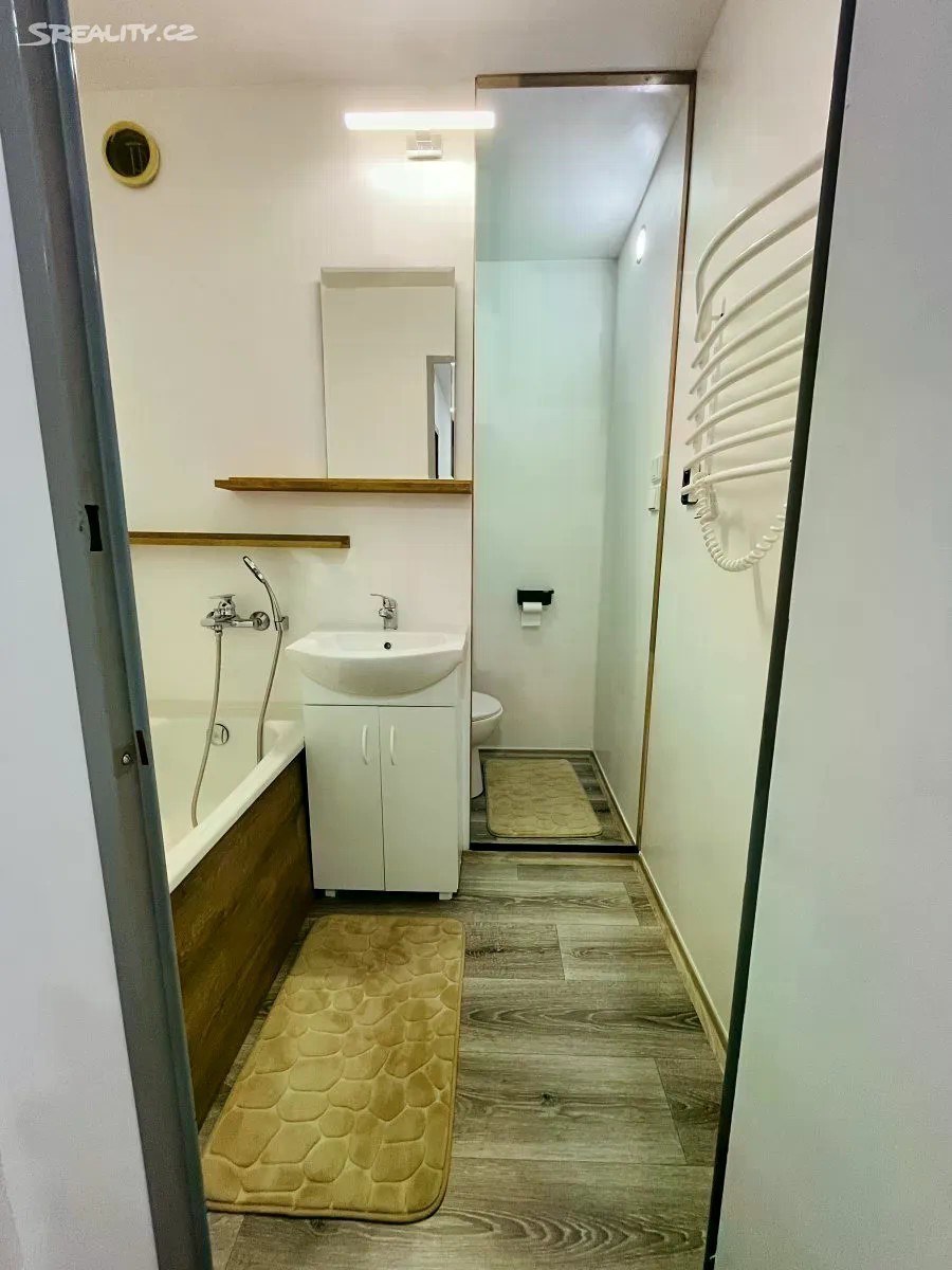 K dlouhodobému podnájmu nabízíme krásný a prosluněný byt o velikosti 2+1 o celkové výměře 44m2 ve třetím patře panelového domu. Byt je po kompletní rekonstrukci a je částečně vybavený. Nabízí jeden neprůchozí pokoj, do kterého vstupujeme z dlouhé chodby, která disponuje botníkem a komodou. Z chodby také míříme do průchozího pokoje a do koupelny se záchodem. Ta je společná. Kuchyně je plně vybavená vestavěnými spotřebiči, elektrickou troubou, sklokeramickou deskou, myčkou, mikrovlnnou troubou, volně stojící lednicí, jídelním stolem a židlemi. Obývací pokoj je průchozí a nabízí pohodlný rozkládací gauč, konferenční stolek s televizí, police a komody. V okolí najdeme veškerou občanskou vybavenost, doktory, lékárny, obchody, školy a školky, dětská hřiště a restaurace hostinec U Formana, restaurace Stodola, La Futura. V docházkové vzdálenosti najdeme spoustu zeleně - například lesopark Bělský les. Byt je volný ihned k nastěhování a domácí mazlíčci po domluvě.