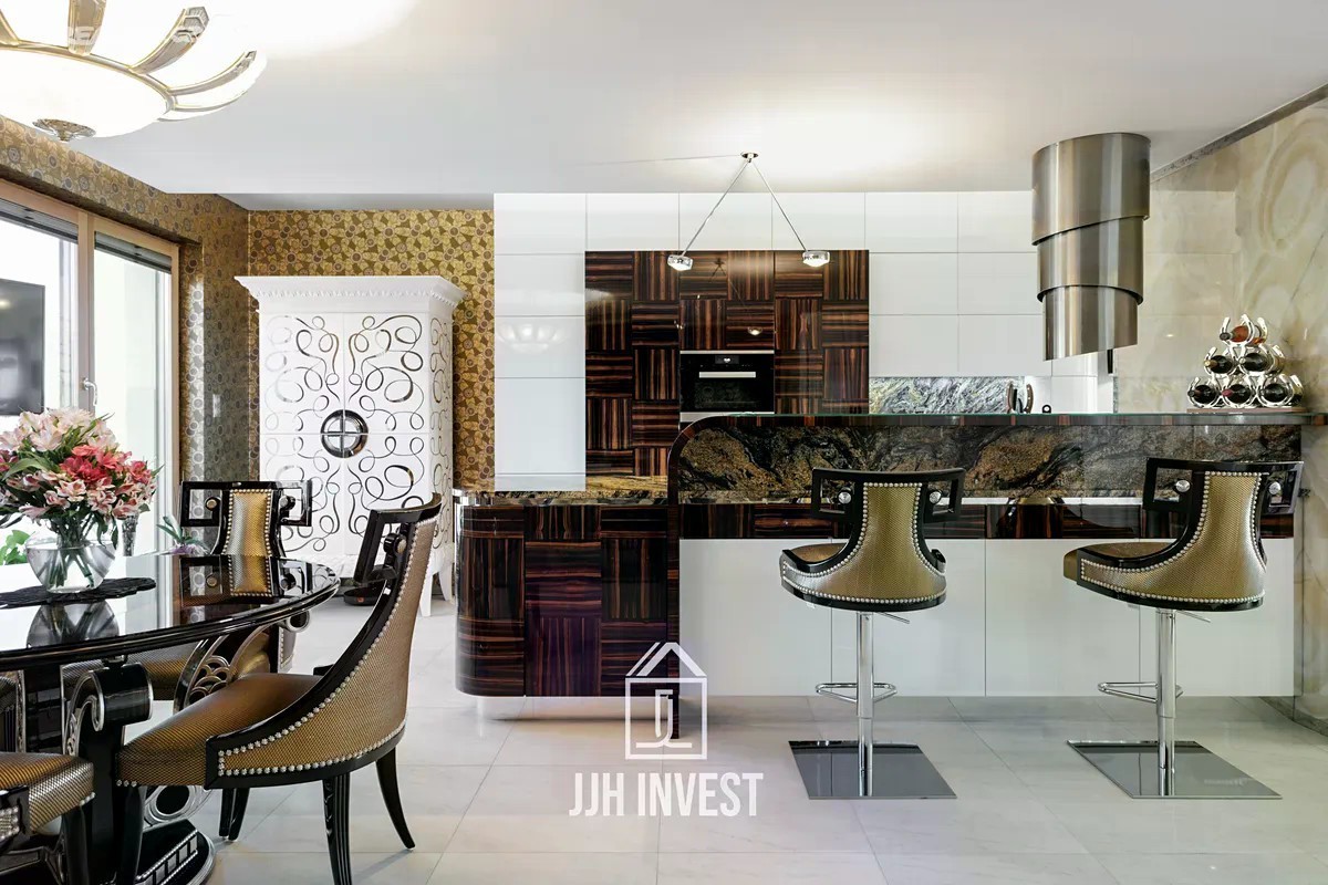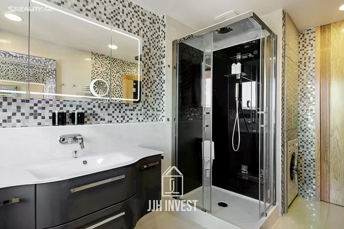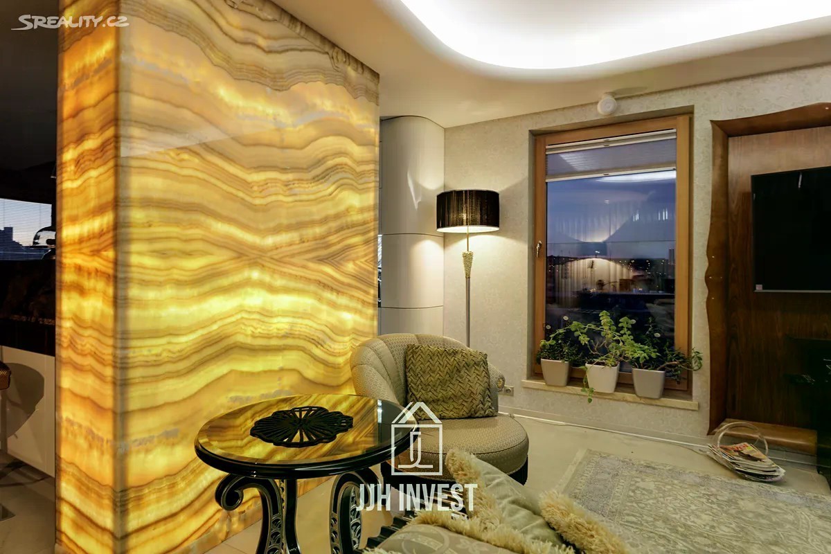 Nabízíme Vám jedinečný mezonet 4+kk o ploše 143 m2, situovaný v nejvyšších patrech domu na pražském Smíchově, který nabízí bydlení, jaké v nabídce jen tak nenajdete. A hlavně - nezapomenutelný výhled, který vám vezme dech. Opravdový Million Dollar View. Z bytu ve 2 podlažích (6. a 7. patro) vystoupíte přímo na soukromou terasu 48 m2, která vám otevře Prahu jako na dlani - od Strahova až po Pankrác. Další balkon u ložnice (4 m2) je ideálním místem pro ranní kávu nebo večerní klid. Absolutní soukromí a bezpečí zajišťují špičkové technologie: kamerový systém, bezpečnostní dveře, chytrá domácnost i sofistikovaný přístupový systém. Interiér? Nadčasové Art Deco, laděné do posledního detailu. Designové značky jako Carpanelli, světla Fendi, postel Hästens, podsvícený onyx v obývacím pokoji nebo schodiště z masivního mramoru - každý prvek má svou kvalitu i příběh. Podlahové vytápění po celém bytě doplňují stylová krbová kamna pro atmosféru. Dvě koupelny, každá na jiném patře. Spodní s párou, sprchou a saunou z cedrového dřeva, horní s masážní vanou. Vše doplněno vybavením prémiových značek, kamennými obklady a promyšleným úložným prostorem. Okna/portály Internorm - kombinace dřevo/hliník s trojsklem - přináší ticho a komfort. Všude sítě proti hmyzu, žaluzie. Všechny technologie propojené do chytré domácnosti. Dům samotný je spíše praktický než reprezentativní, ale to, co najdete uvnitř tohoto mezonetu, předčí i ta nejvyšší očekávání. Zvenčí možná nenápadný, uvnitř zcela výjimečný. Dispozice bytu: • Spodní patro: 2 ložnice, koupelna se saunou, balkon • Horní patro: otevřený obývací prostor s kuchyní, koupelna, technická místnost, vstup na terasu • Dva sklepy, dvě parkovací místa v garáži Pro prohlídky nás neváhejte kontaktovat.