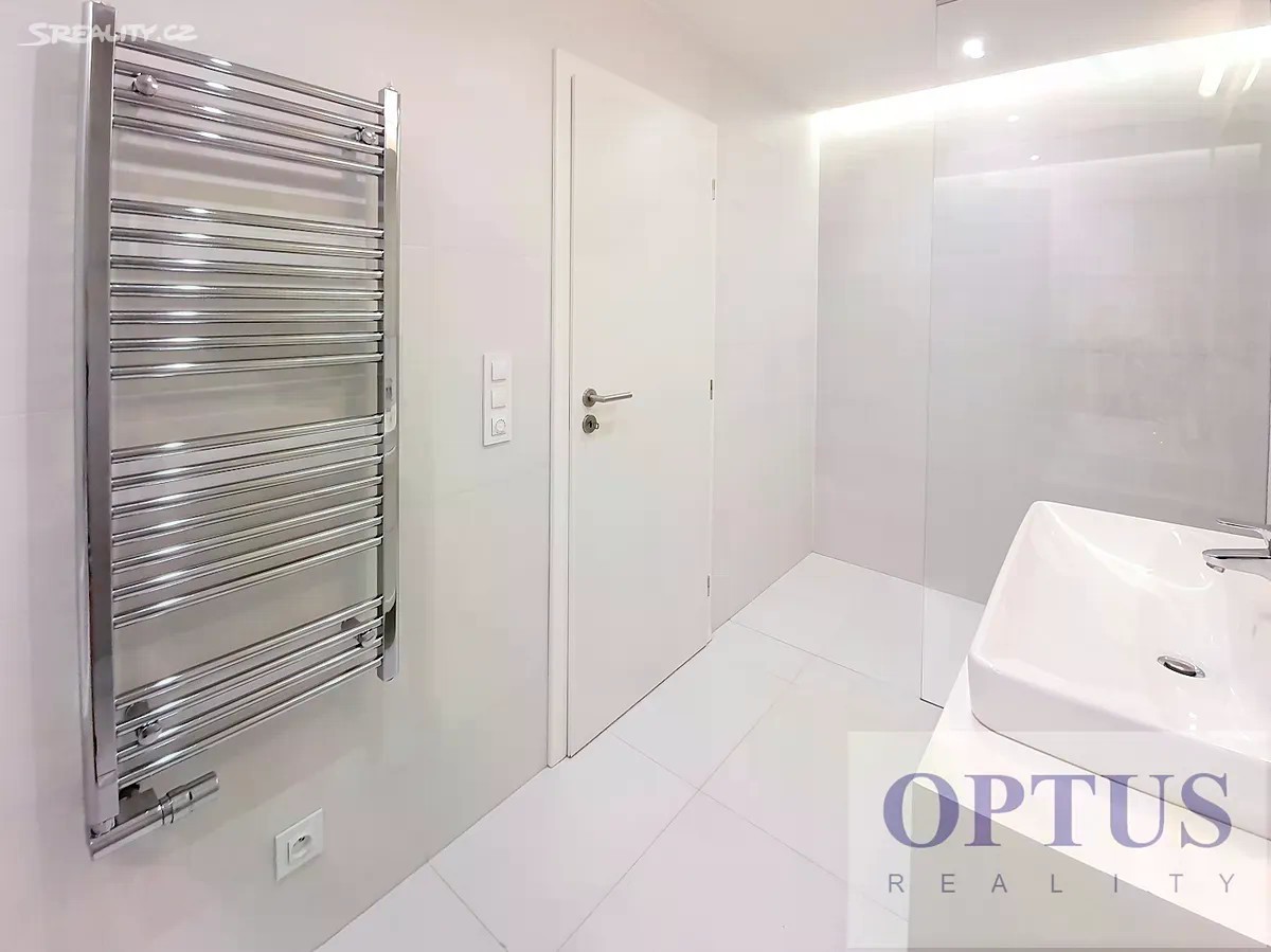 Praze 8 - Karlín, ul. Za Karlínským přístavem - atraktivní lokalita v Praze 8 - Karlín, minutu chůze od metra Křižíkova; oblíbená čtvrť s mnoha kavárnami, stylovými restauracemi, v rychlém dosahu centra, kolem domu vede cyklistická a běžecká stezka. Nový částečně zařízený moderní byt 3 + kuchyňský kout (87,6 m²) + lodžie 10,8 m², situovaný v 5. patře rezidenčního komplexu Rezidence Vltava z r. 2016 s recepcí a ostrahou 24/7. Byt tvoří předsíň s vestavěnou skříní, obývací pokoj s plně vybaveným kuchyňským koutem a se vstupem na jižně situovanou lodžii, dále 2 ložnice (11 a 13 m²) s výhledem na Vltavu, 1 koupelna (s vanou a samostatnou walk-in sprchou) a samostatné WC. Další vybavení: vestavěné kuchyňské spotřebiče Whirlpool (varná deska, el. trouba, myčka a lednice s mrazákem), dále pračka Electrolux (s parním programem), vestavěné skříně, příprava pro vysokorychlostní internet až 1 Gb/s, velkoplošná okna, dubové podlahy, bezpečností dveře. V ceně nájmu je zahrnut 1 zděný sklep a 1 garážové stání nacházející se v suterénu rezidence. K dispozici od 01.11.2025. Cena pronájmu činí 43.000 Kč/měsíc + poplatky (služby 9.000 Kč/měsíc při 2 osobách + spotřeba elektřiny v bytě) + internet + provize RK 1 měsíční nájem. Požadovaná jistota (kauce) činí 2 měsíční nájmy včetně služeb. Třída energetické náročnosti budovy je dle vyhlášky 78/2013 Sb. klasifikována jako B.