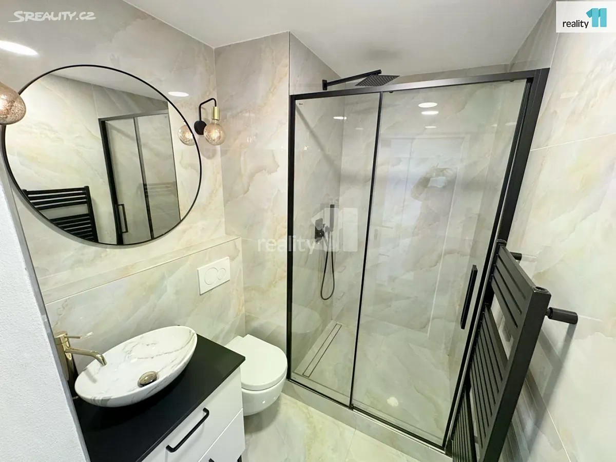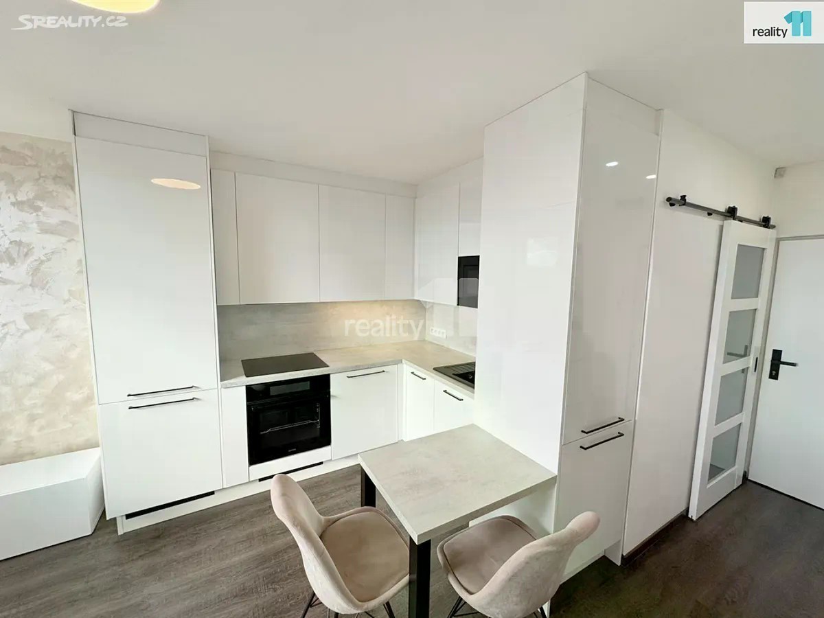 Hledáte moderní, slunný byt, v příjemné lokalitě, se skvělou dopravní dostupností? Nabízíme Vám k pronájmu byt 1+1, o velikosti 33.9 m² + sklepní koje, po kompletní rekonstrukci, umístěný v 7. patře panelového domu s výtahem, v klidné ulici, blízko veškeré občanské vybavenosti. Při rekonstrukci došlo k maximálnímu využití prostoru. Po vstoupení do bytu najdeme po pravé straně dveře do koupelny se sprchovým koutem a toaletou, dále kuchyni do L (lednice, myčka, pračka, sklokeramická deska, trouba), s menší rozkládací pohovkou. Z kuchyně se pak vchází do ložnice, která je prázdná (postel zde již není). V ložnici je dostatek prostoru i na případný pracovní kout. Část ložnice byla přepažena, čímž vznikla praktická šatna, do které pohodlně schováte všechno oblečení, ale i vysavač, lyže nebo jiné neskladné věci. Byt je v posledním patře, sousedi velmi klidní. Dům je po rekonstrukci, zateplený, plastová okna, umístěný v pěší dostupnosti od MHD, obchodů, zeleně. Volné k nastěhování od 15. 10. 2025. Hledáme slušného zájemce o dlouhodobý pronájem, ideálně jednotlivce nebo pár, bude požadována reference z minulého pronájmu. Domluvte si prohlídku. Nájemné 10.500,-Kč/měsíc + vyúčtovatelné zálohy na služby v domě 2.500,-Kč/měsíc, elektřina a internet v režii nájemce. Kauce 39.000,-Kč, bez provize RK. Ev. číslo: 27258.