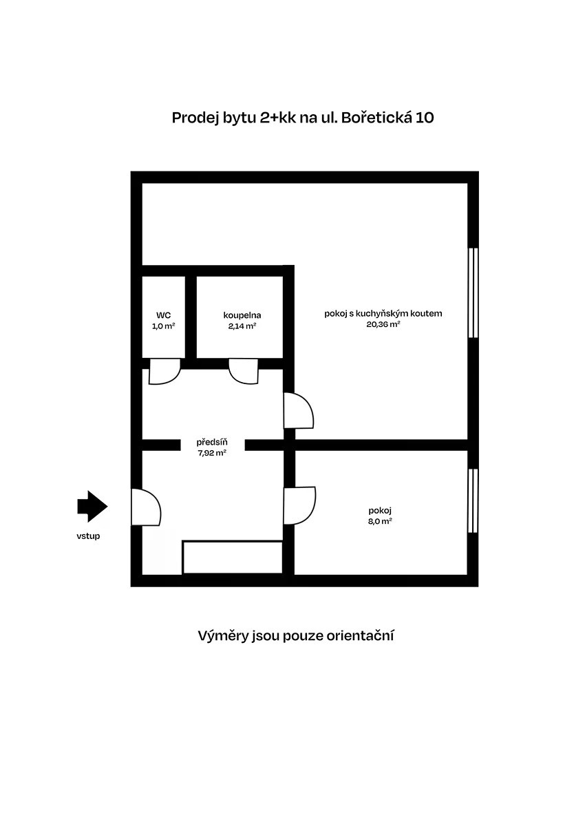 Dovolujeme si vám nabídnout byt 2+kk v žádané lokalitě Brno-Židenice na ulici Bořetická. Tento slunný, jižně orientovaný byt se nachází v revitalizovaném osmipodlažním panelovém domě s výtahem, který nabízí výhled do klidného vnitrobloku plného zeleně. Byt je v původním udržovaném stavu, což umožňuje budoucímu majiteli kompletní přizpůsobení a rekonstrukci dle vlastních představ. Dispozice zahrnuje prostorný obývací pokoj s kuchyňským koutem, pohodlnou ložnici, praktickou předsíň s vestavěnou skříní poskytující dostatek úložného prostoru, samostatnou koupelnu, WC a sklep. Velkou předností jsou neprůchozí pokoje, které zajišťují soukromí a pohodlí. V bezprostřední blízkosti domu se nachází základní a mateřská škola, obchodní možnosti a zastávky MHD. Jedná se o skvělou investiční příležitost v lokalitě s veškerou občanskou vybaveností. Neváhejte nás kontaktovat pro více informací nebo sjednání prohlídky. Majitel si vyhazuje právo výběru zájemce dle jím zvolených kritérií. K ceně bude připočtena provize realitní kanceláře. Dispozice: velikost: 2+kk výměra bytu: 40 m² konstrukce: panelová; vlastnictví: osobní; podlaží: 3/8; výtah: ano; podlahy: dlažba, limo; samostatná měřidla: ano; nastěhování: dohodou; orientace: J; komerční úvěr SVJ: 0; vybavení: dohodou; náklady na byt: 3.206,- Kč/měsíc + elektřina