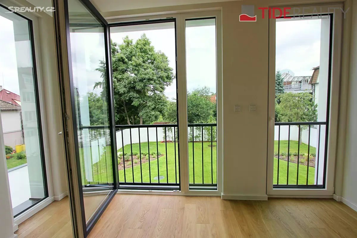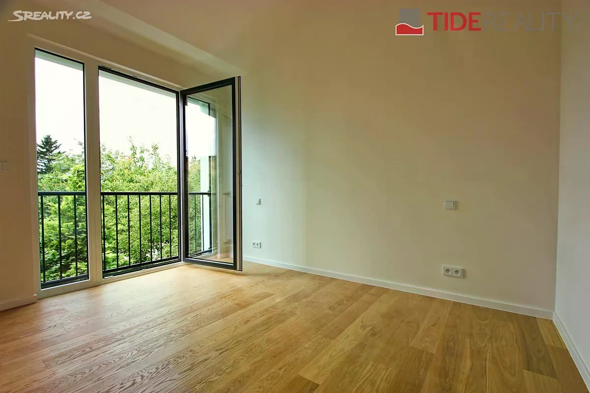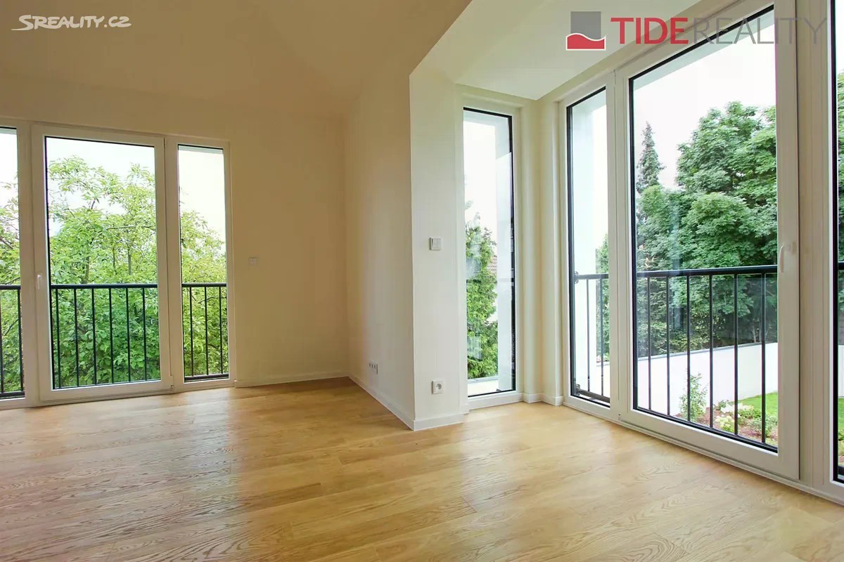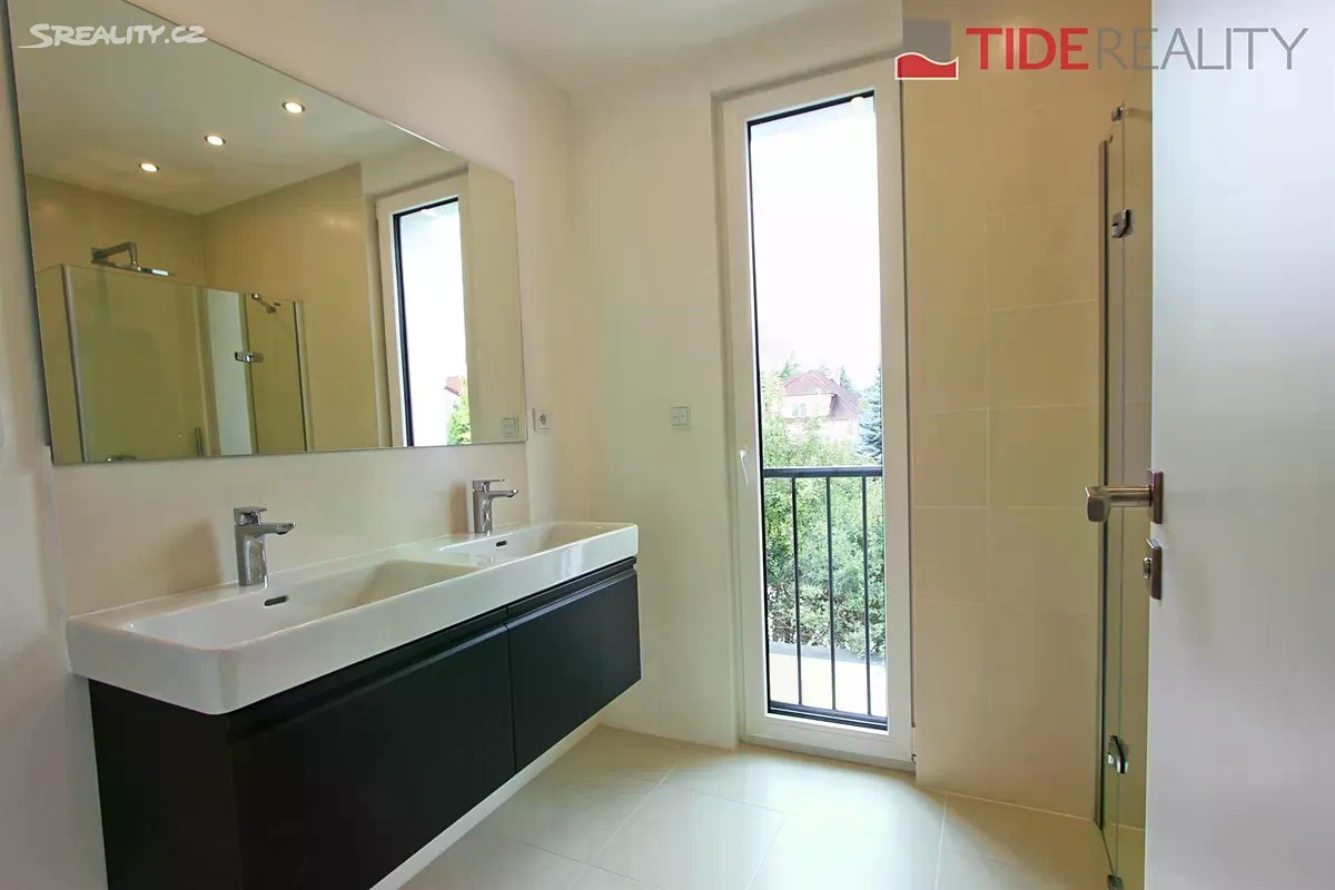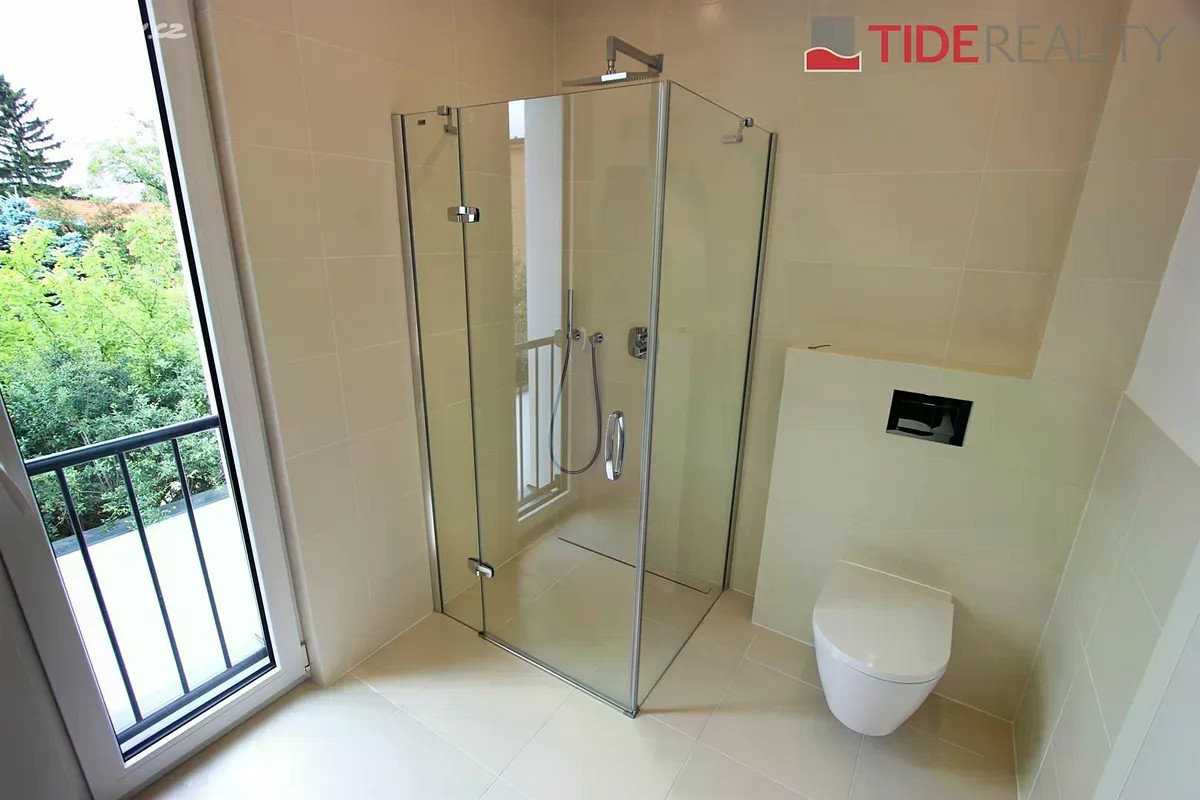 Pronájem velmi kvalitního samostatného klimatizovaného bytu 3+kk v I. patře nové dvoupodlažní vily o ploše 86 m2 se zahradním sezením a parkováním pro dvě auta. Byt má plně vybavený kuchyňský kout, obývací pokoj s výhledem do zahrady, 2 ložnice, prostornou koupelnu a samostatné WC. V bytě jsou dřevěné podlahy a kvalitní mramorová dlažba, úklidová místnost. V celém domě je instalováno podlahové topení a bezpečnostní systém. Součástí bytu jsou bezpečnostní venkovní rolety, velká francouzská okna a alarm s připojením k PCO. K bytu patří venkovní altán v zahradě, zahradní domek sloužící jako skladovací prostor a 2 parkovací stání na pozemku domu. PENB třída B.