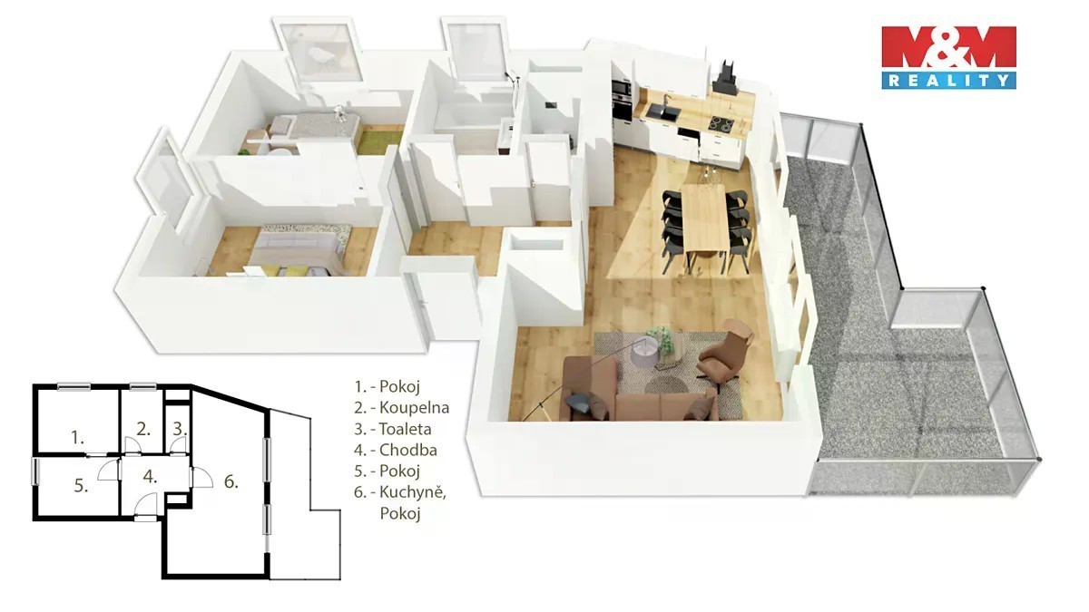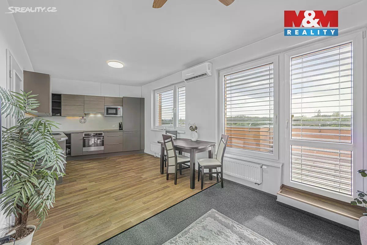 Nabízíme k prodeji moderní byt 3+kk o užitné ploše 59 m², situovaný v klidné části pražského Černého Mostu. Byt se nachází v posledním, 5. nadzemním podlaží cihlového domu z roku 2017 a nabízí krásný výhled z terasy o ploše 15 m². Součástí prodeje je také garážové stání a sklep. Byt disponuje kvalitní kuchyňskou linkou ORESI s vestavěnými spotřebiči značky Electrolux. Komfort obytných prostor zajišťují klimatizační jednotky v obývacím pokoji a ložnici, s venkovní jednotkou umístěnou na střeše. Všechna okna jsou vybavena elektricky ovládanými předokenními žaluziemi 90 Z. Nemovitost je ve velmi dobrém stavu a připravena k okamžitému nastěhování. Ideální volba pro ty, kteří hledají klidné bydlení s výbornou dostupností služeb.