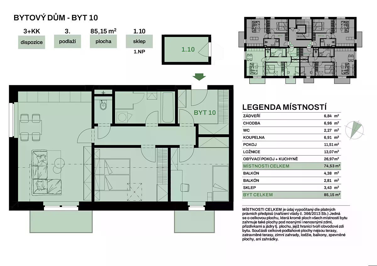 Dovolujeme si Vám nabídnout v rámci předprodeje byt v nově připravovaném bytovém domě developerského projektu BYTY CHVALATICE část Telčice. Bytová jednotka o dispozici 3+kk se se nachází ve II. NP aktuálně připravovaného bytového domu. Jednotka má obytnou plochu 76,59 m2 a náleží k ní 2 balkóny o výměře 4,38 m2+2,48m2 a sklepní kóje 3,26m2. V ceně je zahrnuto dokončení bytové jednotky na klíč ve standardním provedení, vyjma kuchyňské linky. K bytu je možno dokoupit venkovní parkovací stání za cenu 150 000,- Kč. Tento projekt je stavebním dílem založeným na precizním vyhotovení. Volba kvalitních stavebních materiálů se pozitivním způsobem podepíše na nízkých provozních nákladech. Námi zvolené materiály a zařizovací předměty se nesou v duchu vyššího standardu s přihlédnutím na praktičnost, snadnou údržbu a nadčasovost. Na snížení energetické náročnosti se bude podílet i fotovoltaická elektrárna na střeše domu. Další nabídku tvoří byty o dispozičním uspořádání 2+kk a 3+kk, jež přijdou vhod jak svobodným párům, tak rodinám s dětmi. V rámci bydlení je předkládána podlahová plocha od 41 m2 do 76 m2. Součástí většiny jednotek jsou balkony nebo předzahrádky. Součástí většiny bytů jsou sklepní kóje. Bližší informace Vám rádi poskytneme v naší RK.
