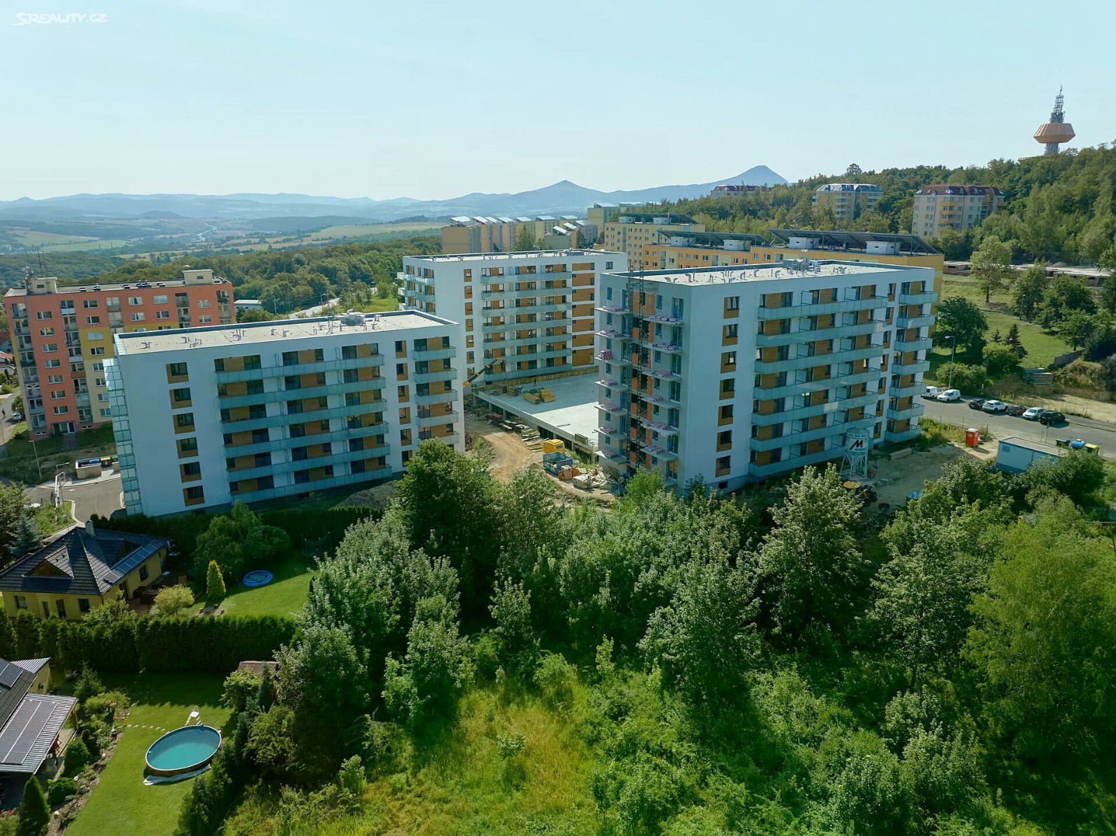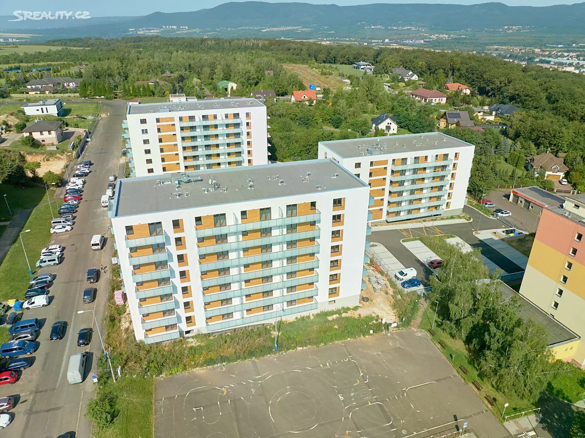 Nabízíme k dlouhodobému pronájmu byt 2+kk s balkonem, v klidné rezidenční oblasti Teplic - Nové Vsi. Tento byt o velikosti 54 m² se nachází ve 4. nadzemním podlaží cihlové novostavby v moderním, rezidenčním bytovém objektu Novoveská. V domě je výtah, bezbariérový přístup je tudíž zajištěn. Byt je světlý a velikým bonusem je prostorný balkón, z kterého je krásný výhled na město Teplice a Krušné hory. V interiéru jsou použity velkoformátové obklady a dlažby španělské značky, sanita od Ideal Standard a dřevěné dveře od italského výrobce. Byt bude v blízké době vybaven novou, moderní kuchyňskou linkou s vestavnými spotřebiči - chladnička, myčka, odsavač, varná deska a elektrická trouba, fotografie budou dodány v příštích dnech. Součástí vybavení bytu je také šatní skříň v ložnici a v předsíni. Vytápění bytu je centrální, pomocí teplovodu. Očekávají se tedy nízké náklady na provoz / vytápění, s ohledem na zateplení domu a zcela nové spotřebiče. K bytu přísluší sklepní kóje a také vyhrazené vnitřní parkovací stání uvnitř domu za poplatek. Areál bytového domu je oplocený a přístupný pouze pro rezidenty. V blízkosti domu je veškerá občanská vybavenost (samoobsluha, restaurace, škola, školka, Řetenický lesopark) a je výborně dopravně dostupný (zastávka MHD jen několik minut od objektu). Měsíční nájemné činí 16.000,- Kč + 2.000,- Kč parkovací stání + zálohy na služby / energie cca 3.000,- Kč. K těmto nákladům je nutno připočíst náklady na elektřinu. Kauce ve výši 3 měsíčních nájmů.
