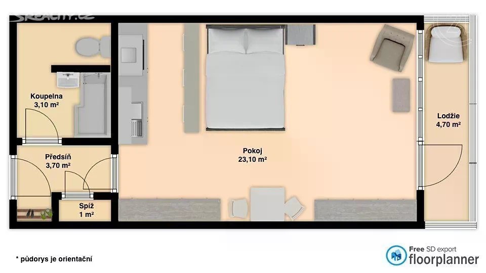 K pronájmu je připraven vybavený a prostorný byt 1+kk o výměře 36 m² v Brně - Starém Lískovci. Nachází se v 7. patře panelového domu s modernizovaným výtahem. Dům prošel kompletní revitalizací plastová okna, zateplená fasáda a opravená střecha. Celková plocha bytu činí 39 m². Dispozici tvoří obývací pokoj s kuchyňským koutem (23,10 m²) a vstupem na zasklenou lodžii (4,70 m²), předsíň (3,70 m²), koupelna s WC (3,10 m²) a spíž (1 m²). K bytu náleží také sklepní kóje (3,5 m²). Interiér je po kompletní rekonstrukci moderní vinylová podlaha, vestavná skříň s dostatkem úložného prostoru a světlý obývací prostor s kuchyní. Zasklená lodžie poskytuje příjemné místo k odpočinku. Starý Lískovec patří mezi vyhledávané brněnské lokality díky kompletní občanské vybavenosti a skvělé dopravní dostupnosti - v okolí jsou obchody, restaurace, školy, hřiště i sportoviště, do centra se snadno dostanete tramvají nebo autobusem. Dostupný od 1.1.2026, po domluvě i dříve. Nájem: 15 500 Kč/měs. Zálohy na služby: 3 241 Kč/měs. Vratná kauce: 30 000 Kč Provize RK: 15 500 Kč + 21%DPH