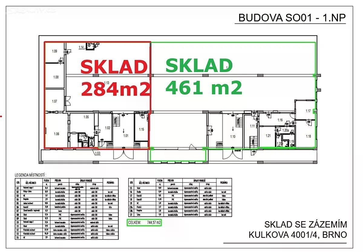 Pronájem skladového prostoru 284 m² Kulkova, Brno - Židenice
