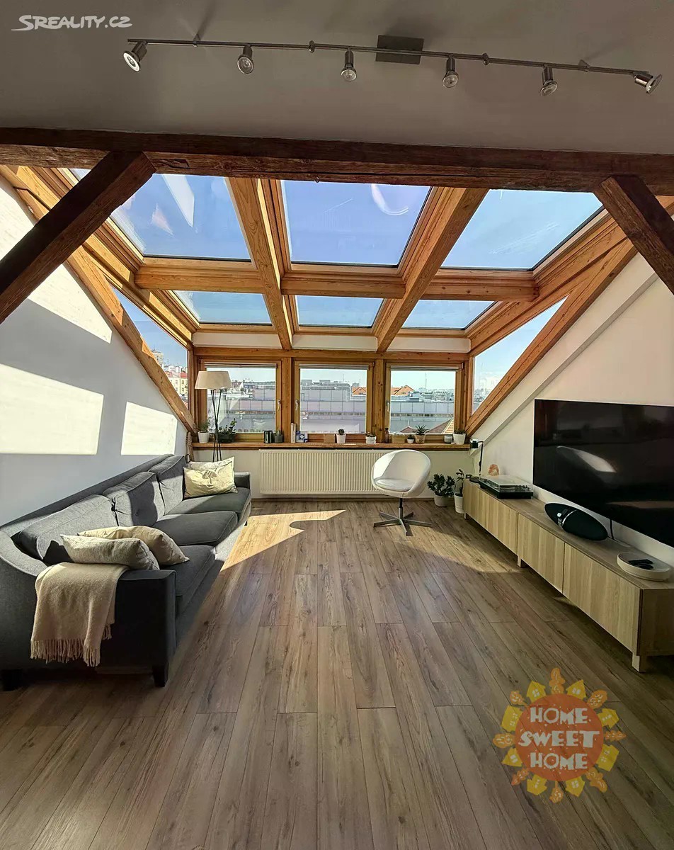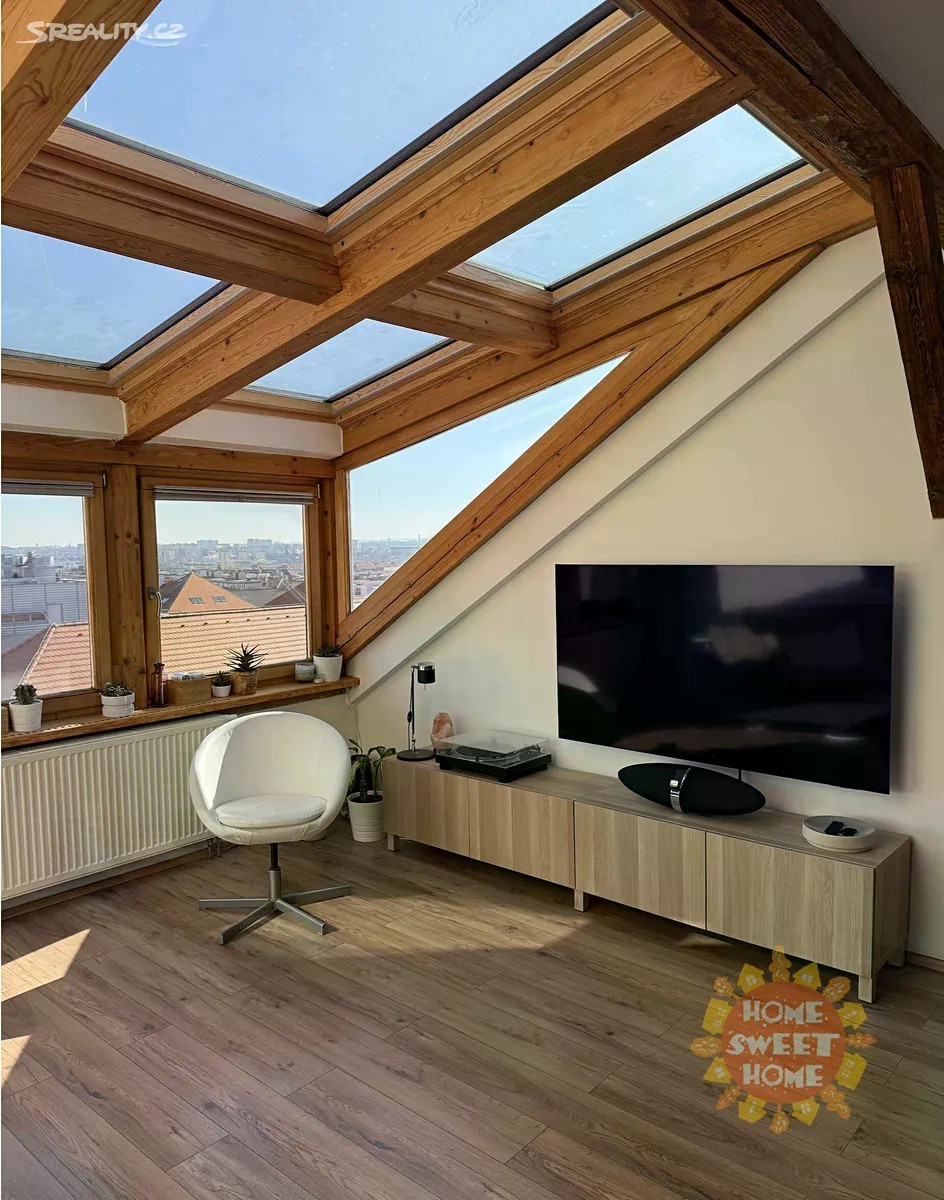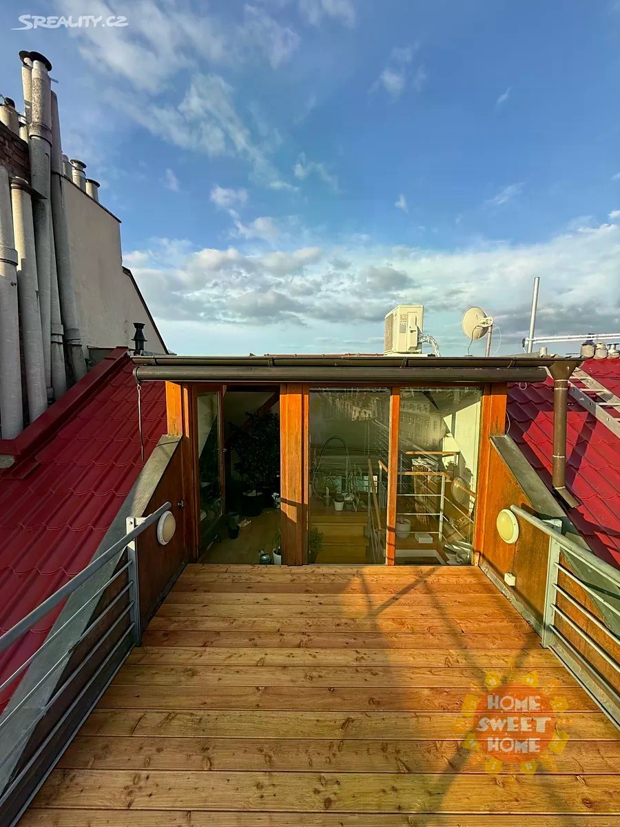 Krásný, částečně zařízený půdní mezonetový byt k pronájmu na ulici Na Míčánkách na Praze 10 - Vršovice. Byt o celkové výměře 90m2, který se nachází v 5.patře bez výtahu je mimořádně světlý a zajímavý, dispozičně 3+kk (druhá ložnice je na otevřené galerii). Byt je klimatizovaný. Dole je malá vstupní hala, obývací pokoj s kuchyní, spíž a šatna. Je zde ložnice s prostornou šatnou, koupelna ve které je vana, pračka a toaleta. Na otevřené galerii je malá ložnice, pracovní kout, šatna a výstup na terasu vybavenou zahradním nábytkem se slunečníkem. V obývacím pokoji je střecha částečně prosklená veluxovými okny. V bytě je satelit. Dům se nachází ve vyhledávané lokalitě s výbornou dostupností do centra. Občanská vybavenost - restaurace, supermarket, obchody a další. Dopravní dostupnost - 2 minuty na stanici autobusů nebo 7 minut na stanici metra Flora, linka A. Byt je dostupný k pronájmu od 1.listopadu.