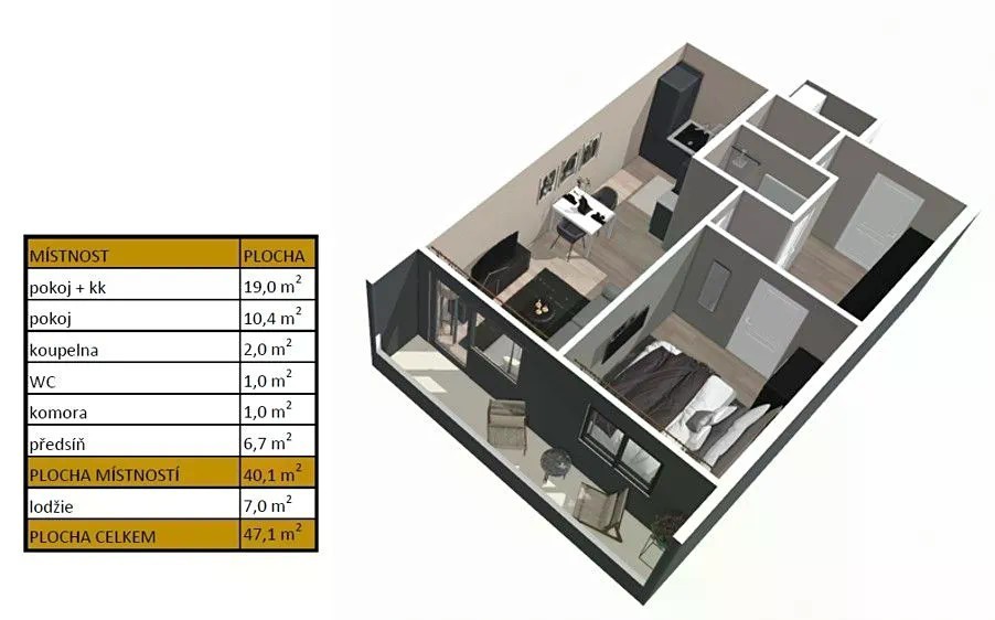 Nabízíme k prodeji útulný byt 2+kk o velikosti 40 m² ve 3NP udržovaného a zatepleného panelového domu s výtahem v obci Komárov u Hořovic. Byt je v pěkném stavu, čistý a připravený k okamžitému nastěhování. Díky své dispozici a lokalitě je vhodný jako startovací byt pro mladé lidi nebo jako zajímavá investice k pronájmu. V bytě byly provedeny nové elektrické i vodovodní rozvody, instalována plastová okna a v minulosti zrekonstruována koupelna se zděným jádrem. V pokojích je podlahová krytina z lina, ostatní místnosti mají dlažbu. Byt nabízí možnost úprav dle vlastních představ. Bytový dům je kompletně zateplený a disponuje vlastní plynovou kotelnou, která zajišťuje ohřev teplé vody a rozvod tepla do ústředního topení jednotlivých bytů. Obývací pokoj (19 m²) s přímým vstupem na prostornou lodžii (7 m²) orientovanou na jihozápad je ideálním místem k odpočinku s krásným výhledem do zeleně. Na obývací pokoj navazuje kuchyňský kout s linkou, dřezem, digestoří a přípravou na elektrický sporák a pračku. Ložnice (10,4 m²) je situována směrem na lodžii. V předsíni (6,7 m²) se nachází vestavěná skříň. Koupelna (2 m²) je vybavena sprchovým koutem a umyvadlem, WC je samostatné (1 m²). K bytu náleží také praktická komora přímo na patře (1 m²) a sklep v přízemí domu (1 m²). Komárov je příjemná a klidná obec, která nabízí plnou občanskou vybavenost - obchody, školu, školku, poštu i zdravotnická zařízení. Zároveň má velmi dobré dopravní spojení. Autobusová zastávka je vzdálená pouhých 5 minut chůze od bytu, do Hořovic se dostanete autem nebo autobusem za 10 minut a na pražské metro Zličín pohodlně dojedete autem za 35 minut od bytu. Díky tomu je lokalita vhodná jak pro mladý pár, tak i pro jednotlivce a představuje skvělý krok k vlastnímu bydlení. Byt v Komárově je ideální volbou pro ty, kteří hledají dostupné bydlení v klidném prostředí obklopeném přírodou, ale s dobrou dostupností do Prahy i blízkých Hořovic. Velkou předností lokality je i pracovní zázemí v nedalekém průmyslovém areálu Žebrák, kde se nachází řada zaměstnavatelů z různých oborů. Díky tomu je byt zajímavou volbou nejen pro ty, kteří hledají bydlení v příjemném prostředí, ale i pro ty, kdo chtějí mít zaměstnání v dosahu několika minut. Komárov navíc leží na okraji Chráněné krajinné oblasti Brdy, což ocení všichni milovníci přírody. Přímo od domu se můžete vydat na cyklostezky, pěší túry nebo rodinné procházky do lesa. Prostředí je ideální pro aktivní trávení volného času, sport i relaxaci na čerstvém vzduchu. Zajistíme Vám financování tohoto bytu. Neváhejte mě kontaktovat pro více informací nebo osobní prohlídku.