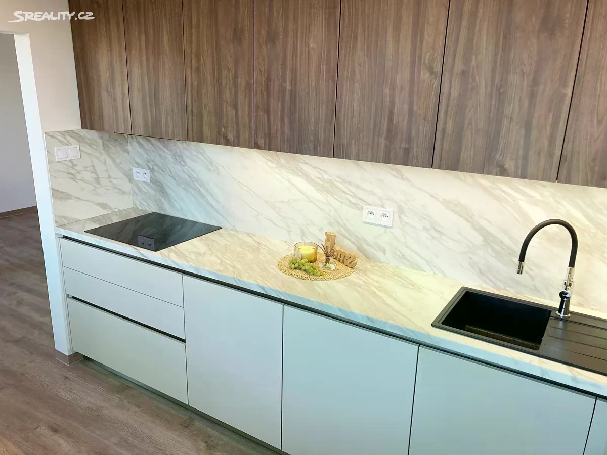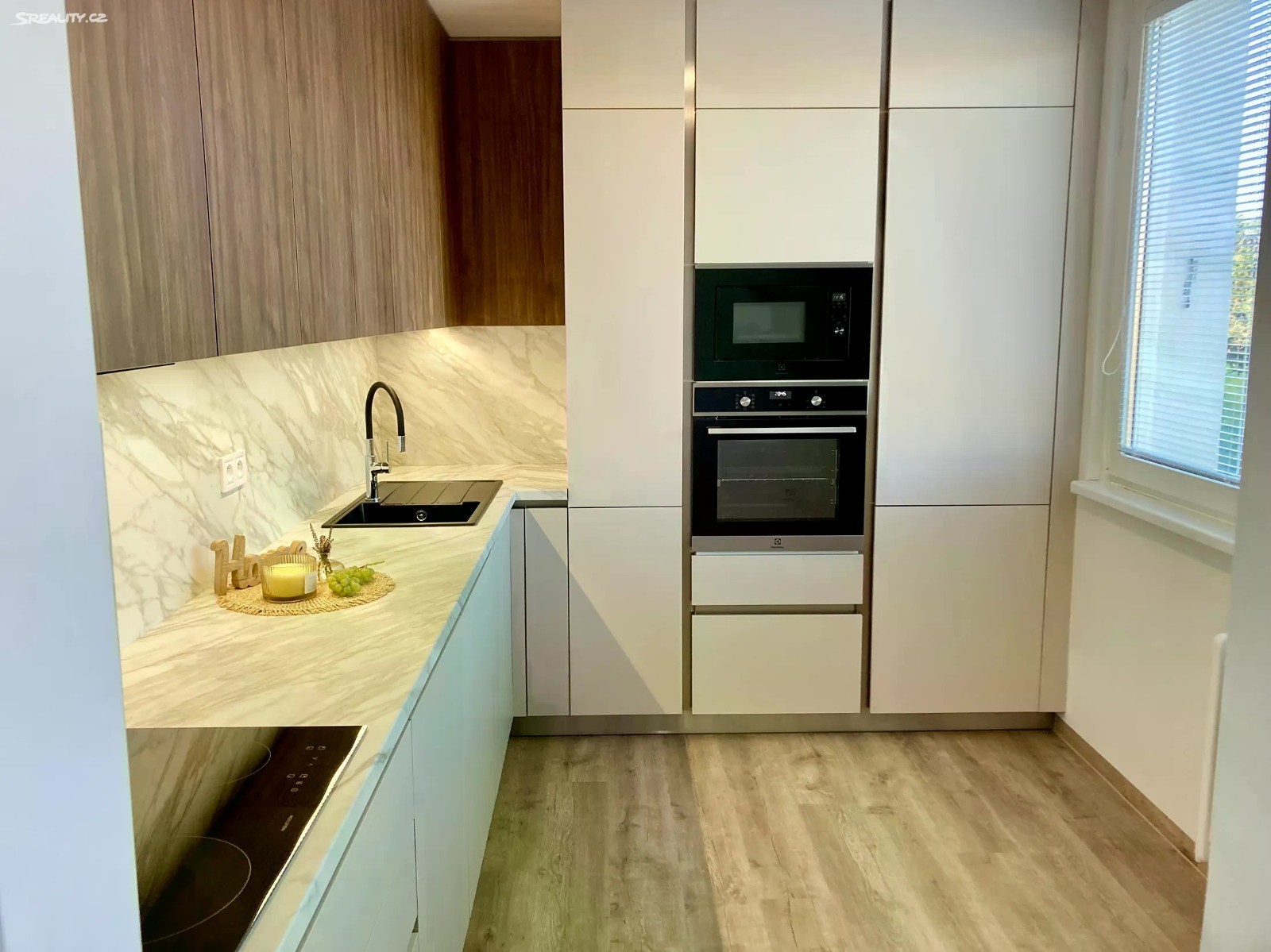 Prodávám velký typ bytu 3+kk (74m2) na ulici Heyrovského pod nemocnicí v Olomouci (část Povel) s neprůchozími ložnicemi. Byt je čerstvě po kompletní nákladné rekonstrukci a hledá prvního obyvatele. Byt i dům jsou bezbariérové. Pokusím se Vám nejprve byt trošku popsat. Začnu kuchyní, kterou zhotovil truhlář na míru a přesně tak, aby splňovala potřeby snad každé ženy či muže. Zvolené spotřebiče jsou značky Electrolux, konkrétně vestavěná lednice s mrazákem, myčka, trouba, mikrovlnka, indukční varná deska, nad kterou je zabudovaný odsavač par. Byt se nachází ve 4.patře 8-patrového panelového domu naštěstí s výtahem. Do obývacího pokoje se umístila klimatizační jednotka, která zajistí v tomto bytě velmi příjemné klima, ačkoli v létě mohou venku atakovat teploty 35 stupňů. Ložnice jsou neprůchozí. Z jedné z nich vstupujete na balkon. Vstupní chodba nabízí dostatek prostoru pro vestavěné skříně. O zabezpečení bytu se postarají bezpečnostní dveře 3. třídy. V celém bytě jsou zhotovené sádrové omítky, které jsou časté dnes jen v novostavbách a jsou velmi praktické. Co se týče podlah, v obytných místnostech byl zvolen vinyl. V koupelně, na wc a balkoně pak dlažba. Koupelna je velmi prostorná, umožnila nám zde umístit velkou sprchu a dvojité umyvadlo tak, že zde zůstalo dostatek místa na pračku a sušičku. Interiérové dveře kvalitní značky Gerbrich jsou bezfalcové s černým kováním. Lékaři, školy, školky, obchody, vše je v docházkové vzdálenosti 300-500 m. Parkování je tu velmi dobré na to, že jsme na sídlišti v Olomouci. Velké parkoviště je přímo pod domem. Financovat ho můžete v hotovosti i hypotečním uvěrem. Neváhejte mě kontaktovat pro další informace, které Vás mohou zajímat. Pozn. Pejsek není součástí prodeje.