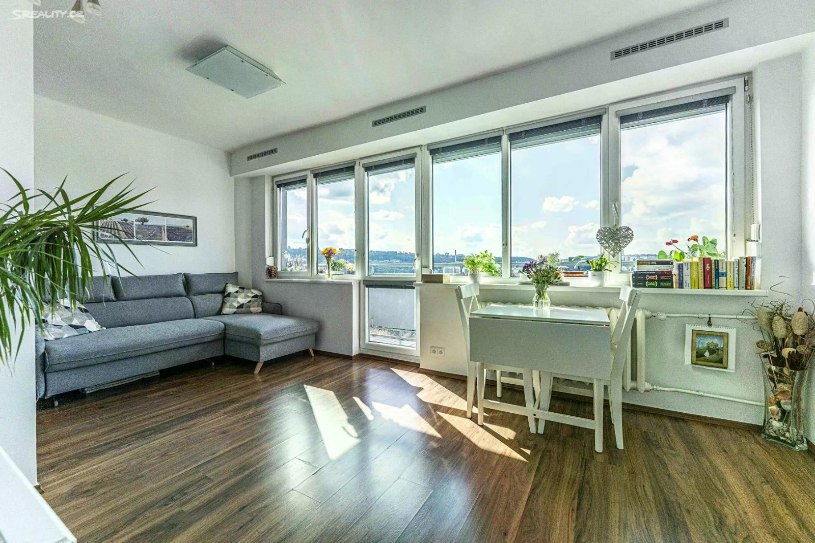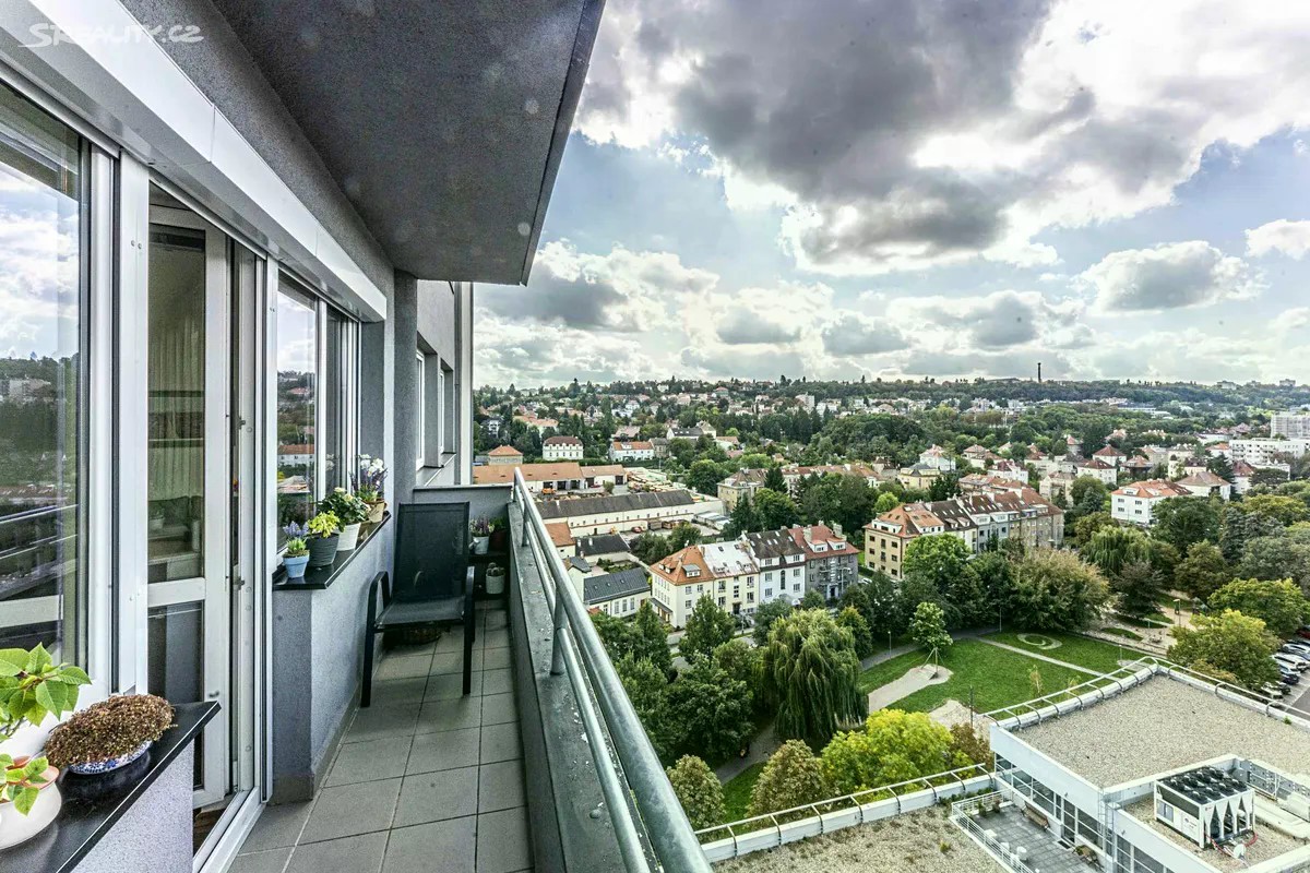 S potěšením Vám nabízíme krásný slunný 2+kk v 13. patře (z 14 pater) s lodžií a skvělým výhledem ve věžovém domě, nazývaném Hadovka. Byt s celkovou podlahovou plochou cca 53 m2 a balkonem (cca 5 m2) prošel velmi povedenou rekonstrukcí před cca 5 lety vč. rozvodů apod. Věříme, že Vás zaujme provedení úprav, barevná kompozice kombinující světlé a tmavší prvky, dostatek úložných prostor atd. Byt je velmi slunný se západní orientací, ve vyšším patře s nádhernými výhledy na okolí, případné horké dny během léta řeší předokenní žaluzie. V bytě je v případě přání provedena příprava na instalaci klimatizace. Na podlahách je skládaná dřevěná podlaha a dlažba. Nová plastová okna. Dispozice - vstupní chodba (předsíň) s vestavnou skříní, vstupem na toaletu a do koupelny se sprchovým koutem a místem pro pračku (v případě potřeby je možno koupelnu renovovat s vanou). Ložnice má velkou vestavnou skříň, obývací pokoj má vstup na balkon, kuchyńský kout s kuchyní vybavenou běžnými spotřebiči má dále malou spíž. K bytu dále patří sklepní kóje. Dům původně z roku 1970, má železobetonovou konstrukci, cihlové nosné zdi, připomíná ovšem panel. Během nedávné doby byla budova renovována a zateplena na severní a východní straně budovy. V přízemí je komfortní vstup, v suterénu je k dispozici prádelna se sušičkou. Vytápění bytu je centrální s vlastním kotlem. Místní SVJ funguje velmi dobře, dům dokonce sám vydělává, část nebytových prostor v domě je pronajato řetězci Žabka jako potraviny. Díky tomu budoucí majitel bude hradit velmi nízké měsíční náklady - pouze cca 2900 Kč + elektřina! Majitel si vyhrazuje právo vybrat si mezi případnými zájemci dle svého uvážení. V okolí je veškerá infrastruktura, zmíněné potraviny Žabka, zastávka tramvaje Hadovka hned u domu, stanice metra mezi Bořislavkou a Dejvickou. V případě Vašeho zájmu, nebo pro jakkýkoliv dotaz prosím napiště makléři na e-mail. Děkuji