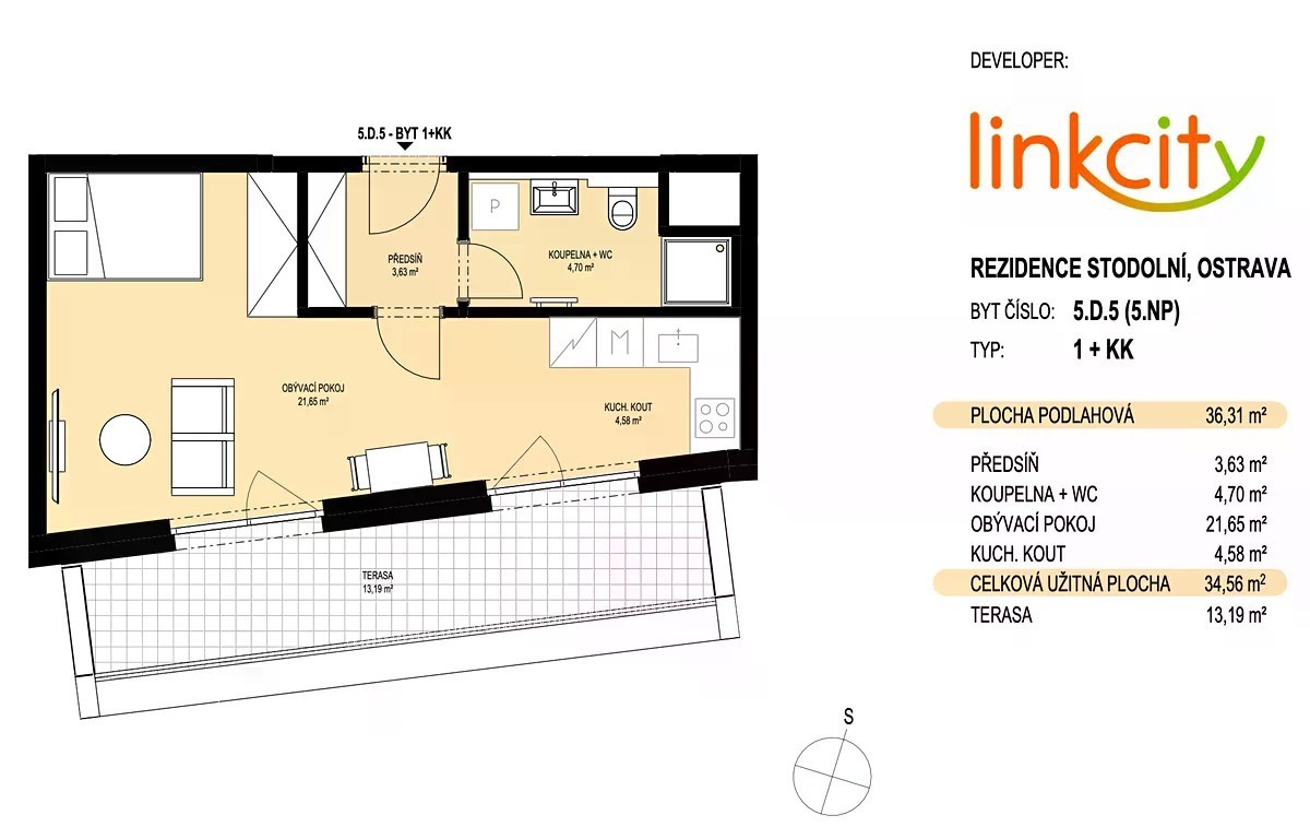 Nabízím postoupení smlouvy na byt v projektu Rezidence Stodolní, který je už téměř vyprodaný. Jedná se o dispozičně praktický byt 1+kk (36,31 m²) s velkou terasou (13,19 m²), umístěný v 5. - nejvyšším - patře. Projekt se staví v samotném centru Ostravy a dokončení je plánováno do konce roku 2027. Hlavní parametry bytu - Bytová jednotka: 5.D.5, 1+kk, 36,31 m² - Velká terasa 13,19 m² - Nejvyšší patro, bez sousedů nad vámi - Příprava na klimatizaci a venkovní žaluzie Projekt Rezidence Stodolní - Architektonicky kvalitní návrh od Bogle Architects - Fotovoltaika na střeše → nižší provozní náklady - Podzemní garáž (120 míst, sklepy, připraveno na elektromobilitu) - Dvě komunitní zahrady pro rezidenty - Lokalita: přímo v centru Ostravy, pěší dostupnost MHD, obchodů i kultury - Moderní standard od renomovaného developera Linkcity Czech Republic a.s. Financování (splátkový kalendář) Kupní cena je rozložena do postupných plateb podle harmonogramu stavby: - 1 470 370 Kč při postoupení smlouvy (preferuji advokátní úschovu) - 1 040 370 Kč po dokončení hrubé stavby (polovina roku ********* Kč po dokončení hrubých podlah a omítek (konec ********* Kč po dokončení vnitřních dveří a rozvodů (2Q ********* Kč při podpisu převodní smlouvy (4Q 2027) Dobrý deal - 1+kk v centru města patří k nejrychleji pronajímatelným bytům - Projekt je téměř vyprodaný, tato jednotka v nejvyšším patře s velkou terasou je výjimečná - Bezpečné financování: platby se dělí postupně podle dokončovacích fází - Developer s historií: Linkcity realizoval úspěšně řadu projektů v Praze a Ostravě V případě zájmu mne kontaktujte pro více informací - rád poskytnu veškeré detaily a dokumentaci.