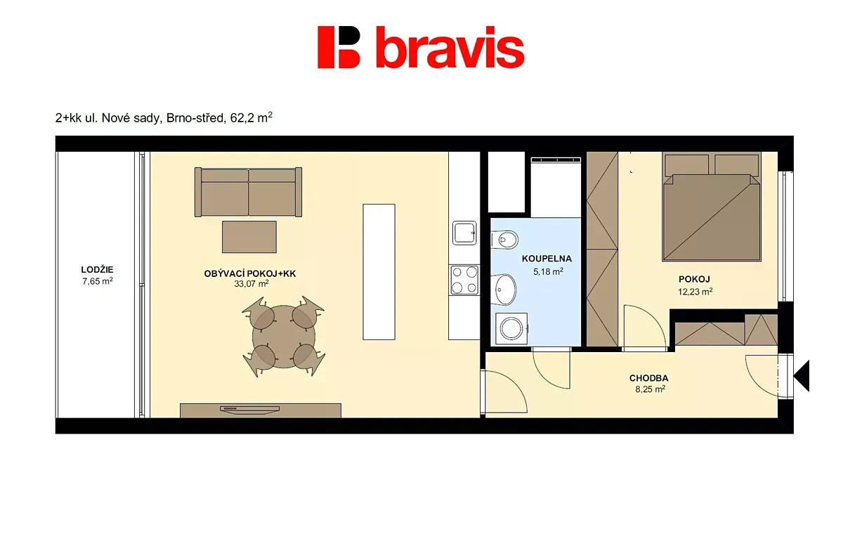 Hledáte moderní byt s balkonem a klimatizací v polyfunkčním domě s nadstandardním vybavením a užitnou zelenou terasou na střeše domu? V domě, který má nízkou energetickou náročnost tř. A, využívá nejmodernější technologie a nachází se v centru Brna v těsné blízkosti jeho hlavních dominant Petrova a Špilberku. Dům nabízí možnost relaxace na střešní zahradě s nádherným výhledem na celé Brno. Byt 2+kk o celkové podlahové ploše 62 m2 + lodžie 8 m2 a sklepem se nachází v 6. NP. Kuchyně je vybavena moderní kuchyňskou linkou na míru plně vybavenou spotřebiči (varná deska, trouba, digestoř, lednice s mrazícím boxem, myčka a mikrovlnná trouba). Obývací část pokoje nabízí vstup na prostornou lodžii o výměře 8 m2. Předsíň i ložnice jsou vybaveny vestavěnými skříněmi. Koupelna disponuje sprchovým koutem, umyvadlem, otopným žebříkem, přípojkou na pračku a toaletou - vše v moderním designu. Interiérové dveře výšky 220 cm dodávají celému bytu krásný, prostorný vzhled. Centrální klimatizace a rekuperace, podlahové teplovodní topení je samozřejmostí ve všech jednotkách. Chytrá domácnost nabízí měření a regulaci topení, chlazení a větrání v každé jednotce na dálku přes mobilní aplikaci. Byt je vybaven velkoformátovými hliníkovými okny s trojskly. Inteligentní budova - optimální řízení energetiky celé budovy - 3 zdroje výroby tepla - tepelné čerpadlo - systém země-voda, 11 vrtů 110m hlubokých, plynové kotle, výměníková stanice zajistí nízké náklady na bydlení. Možnost připojení TV a internetu od poskytovatele Netbox. Umístění v přímém centru Brna zajišťuje perfektní občanskou vybavenost, v pěší vzdálenosti a zároveň poskytuje vynikající napojení na městský okruh, dálniční síť i městskou hromadnou dopravu. Projekt plynule naváže na nově vznikající čtvrť jižního města - Trnitou, jejíž dominantou bude promenáda na místě dnešního železničního uzlu. Prohlídky možné po domluvě s uvedeným makléřem. Možnost jednorázového nebo pravidelného úklidu naší úklidovou firmou.