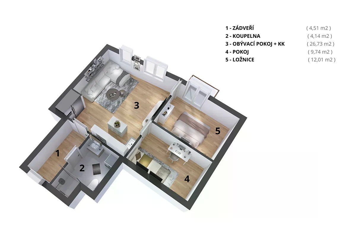 Byt 2.2. se nachází ve druhém (nejvyšším) podlaží s otevřeným výhledem na Chabry s okny a balkonem do vnitřního dvora. Obytná plocha je 59 m2. K příslušenství patří 30ti metrová střešní terasa přímo nad bytem s otevřeným výhledem nad ostatní domy. Terasa má přívod vody a elektřiny a je určena pro Vaši pohodu při relaxu, odpočinku a grilování. V ceně je dále zahrnuto garážové stání a sklepní kóje. Tento byt je opravdu jedinečný. Nabízíme jedinečné bydlení v projektu Perštejnská, kde iluze Prahy mizí. Jedná se o komorní projekt o sedmi bytových jednotkách ve staré původní zástavbě v Dolních Chabrech na Praze 8. Byty jsou o dispozici 2+kk až 3+kk s balkony, předzahrádkou a jedinečnou střešní terasou pro tři byty s panoramatickým výhledem směrem k Drahanskému údolí a na okolí domu. K příslušenství patří sklepní kóje, čtyři parkovací místa na pozemku a dvě krytá garážová stání. Dům je již téměř dokončen, ladí se interiéry. Kolaudace domu proběhne do konce roku 2025. Neváhejte kontaktovat makléře, ať Vám tato jedinečná šance neuteče. Zobrazené fotografie interiéru jsou pouze ilustrační a jedná se o vizualizace, nikoliv o skutečný stav dokončeného bytu.
