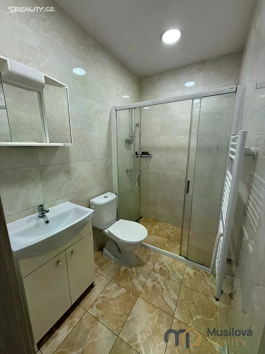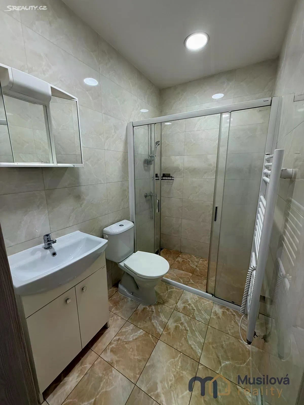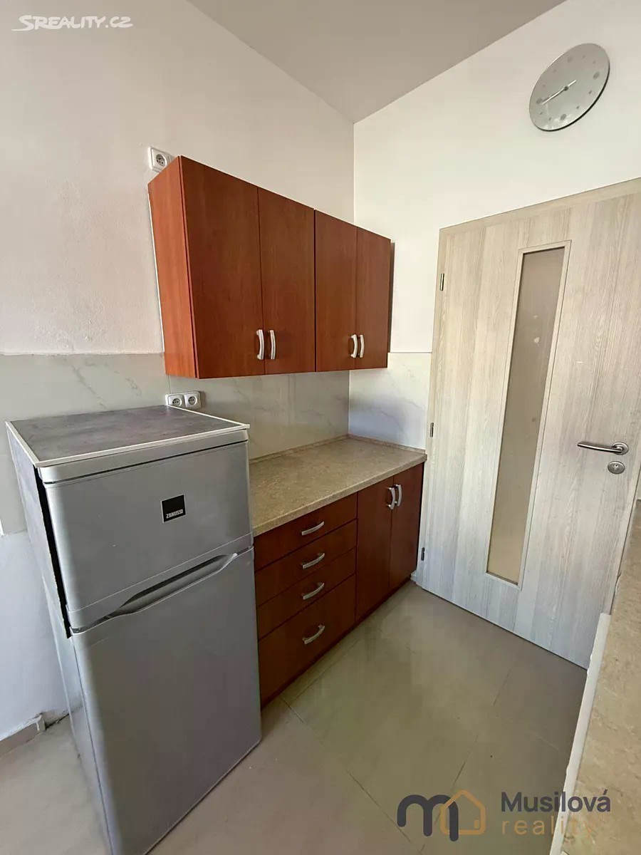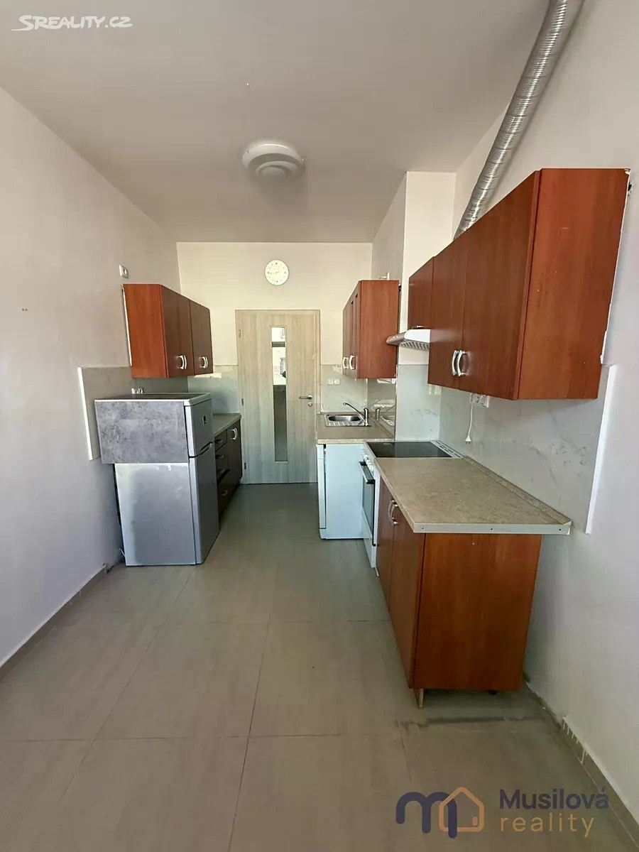 V zastoupení majitele vám nabízím k pronájmu byt č. 5 o dispozici 2+kk a celkové výměře 44,80 m2 nacházející se v 1. nadzemním podlaží (celkově ze 5.NP). Slunný byt se skládá z předsíně, koupelny se sprchovým koutem, WC, kuchyně vč. spotřebičů (lednice, trouba s varnou deskou, digestoř, myčka na nádobí, pračka) a ložnice. Vytápění bytu je řešeno centrální plynovou kotelnou. K bytu lze pronajmout parkovací místo (za poplatek 600,-). Nemovitost se nachází v cihlovém domě, který prošel kompletní rekonstrukcí. Nemovitost se nachází v lokalitě s veškerou občanskou vybaveností (restaurace, lékárna, škola, školka, MHD). Pěší chůzí 10 min. do centra města Ústí nad Labem. Fotografie jsou ilustrační. Měsíční poplatky: Nájemné: 8.500,- Kč zálohy na média: 2.400,- Kč (elektrická energie, voda, TUV, plyn, osvětlení spol. prostor, výtah atd.) Vratná kauce: 1x měsíční nájemné vč. záloh Provize: 1x nájemné vč. záloh Majitel požaduje 2x nájemné vč. záloh předem Volný od 15.9.2025 Pro více informací mne kontaktujte 7 dní v týdnu.