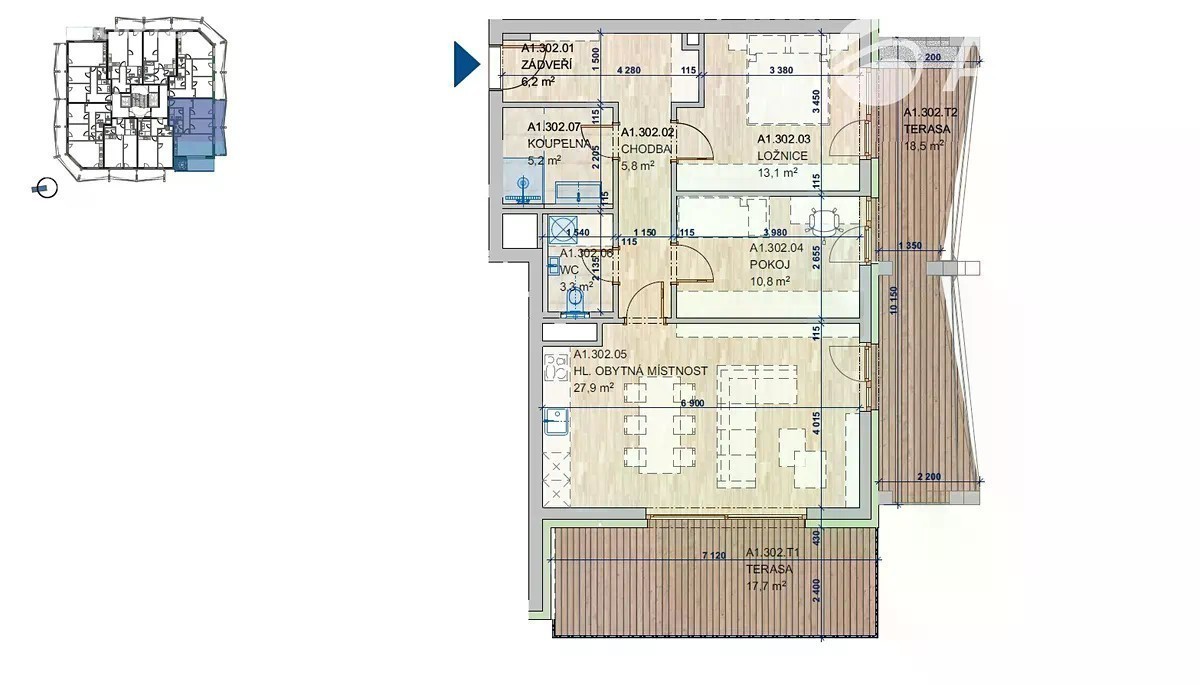 Nabízím k pronájmu byt 3kk v atraktivní lokalitě o celkové ploše 130 m² - terasami o velikosti 17,7 m² a 18,5 m², umístěný v 3. nadzemním podlaží novostavby Allrisk MERIDIEM na ulici Komárovská. DISPOZICE: - hlavní místnost s kuchyňským koutem (27,9 m²) - pokoj (13,1 m²) - pokoj (10,8 m²) - chodba (5,8 m²) - zádveří (6,2 m²) - koupelna se sprchovým koutem (5,2 m²) - samostatné WC (3,3 m²) KLÍČOVÉ VÝHODY: - novostavba s vysokým standardem provedení - francouzská okna zajišťující dostatek denního světla - samostatná koupelna a WC - 2 terasy VYBAVENÍ: - klimatizace - rekuperace - venkovní elektricky ovládané žaluzie - velkoformátové obklady a dlažba v koupelně a na toaletě - kuchyňská linka s vestavnými spotřebiči - skříňka pod TV - vestavná skříň v ložnici a na chodbě - botník na chodbě - umyvadlové skříňky na WC a v koupelně LOKALITA: - výborná dostupnost MHD, do centra Brna za pár minut - rekreační možnosti: cyklostezka, biotop, sportovní centrum, parky - kompletní občanská vybavenost v docházkové vzdálenosti PARKOVÁNÍ: možnost pronájmu dvou parkovacích stání (nabíjecí stanice wallbox), která se nachází přímo v domě v 1. podzemním podlaží - pohodlný a bezpečný přístup výtahem až k jednotce. SKLEP: možnost pronájmu sklepní kóje, která se nachází přímo u garážového stání ZAUJALA VÁS TATO NABÍDKA? Neváhejte mě kontaktovat prostřednictvím formuláře u této nabídky - ráda Vám poskytnu veškeré informace a zodpovím Vaše dotazy, doplním všechny užitečné informace a zajistím osobní prohlídku. Společně projdeme vše důležité, abyste si mohli udělat jasnou představu, zda je tato nemovitost tou pravou volbou právě pro Vás.