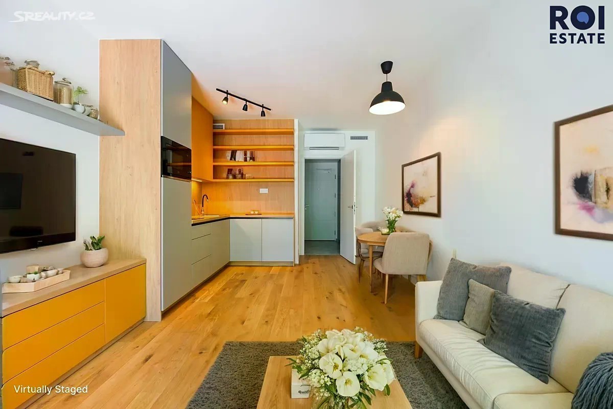 Moderní byt 1+kk s předzahrádkou a wellness zázemím - Ahoj Vanguard, Praha Hledáte stylové bydlení v srdci moderní Prahy? Nabízíme k pronájmu světlý a vzdušný byt 1+kk v prestižním projektu Ahoj Vanguard, který spojuje kvalitní architekturu, prémiové služby a komunitní životní styl. Dispozice: 1+kk | Užitná plocha: 27 m² Předzahrádka: 23 m² | Sklepní kóje: v ceně Umístění: 3. Patro | Stav: novostavba Proč právě tento byt? Byt byl doslova teprve nedávno převzat od developera a ještě v něm nikdo nebydlel. Přímý vstup z obývací části na soukromou předzahrádku - ideální místo pro relax, práci z domova nebo letní posezení. Předzahrádka je vybavena elektrickou zásuvkou a samostatným vodovodním kohoutkem, což zajišťuje maximální komfort při venkovním využití prostoru i snadnou péči o trávník. Velká posuvná okna zajišťují dostatek denního světla a propojení interiéru s venkovním prostorem. Nechybí ani před okenní žaluzie, které poskytují soukromí, tepelný komfort i ochranu před sluncem. Byt je orientován na jižní stranu, což zajišťuje dostatek denního světla po celý den a příjemně prosluněný interiér. V bytě je instalována moderní kuchyňská linka se zabudovanými spotřebiči, koupelna se sprchovým koutem, topným žebříkem a toaletou. Podlaha je dřevěná, nechybí klimatizace, rekuperace ani videotelefon - maximální pohodlí i bezpečnost. Byt je klimatizovaný, s individuálním termostatem, připravený k dovybavení dle vlastního stylu. Prémiové zázemí pro rezidenta a nájemce v ceně. Součástí projektu je privátní wellness zóna, ke které se dostanete v županu rovnou z bytu: - prosklený bazén s výhledem, - několik saun, - plně vybavené fitness centrum, - bezpečný vstup podzemní chodbou přímo z domu. Přístup na společnou terasu s posezením, možností grilování, lednicí a venkovním grilem - ideální pro soukromé akce s rodinou či přáteli. Parkovací stání v garáži je možné dokoupit nebo si pronajmout po předchozí dohodě s vlastníky jednotek. Nejvyšší patro garáží je navíc výborně odhlučněno speciálním akustickým materiálem, díky čemuž nedochází k nežádoucím ozvěnám ani hluku, které by mohly rušit byty umístěné přímo nad tímto podlažím. V areálu projektu je k dispozici také několik veřejných bezplatných parkovacích míst určených pro rezidenty, včetně možnosti dobíjení elektromobilu. Tento jedinečný byt je aktuálně jediný svého druhu v nabídce. Cena je stanovena přiměřeně s ohledem na lokalitu, standart i vybavení.