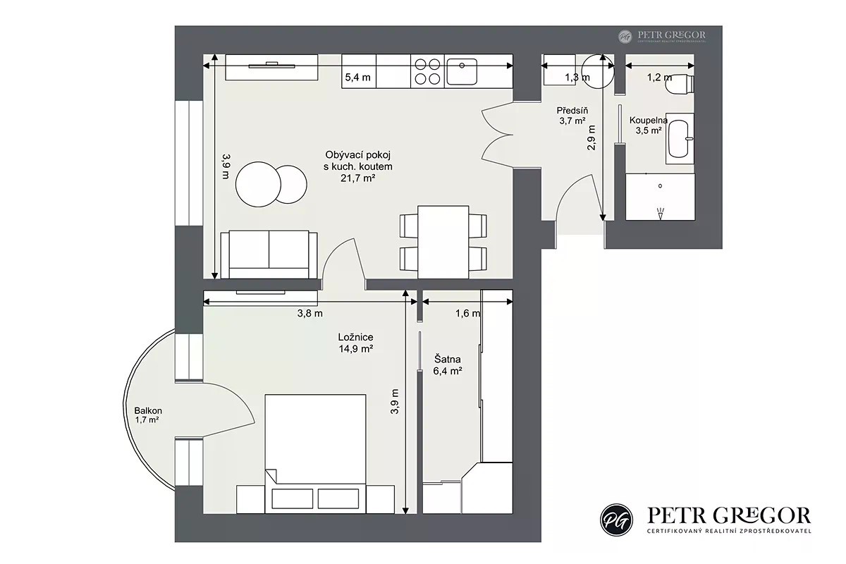 Nabízím k prodeji světlý a pečlivě připravený byt 2+kk o užitné ploše 52,7 m², nacházející se ve 2. nadzemním podlaží (1. patro) kompletně zrekonstruovaného cihlového domu bez výtahu. K bytu náleží také balkón o velikosti 1,71 m² a sklep o ploše 4,11 m². Dům prochází kompletní rekonstrukcí, včetně rozvodů vody (plast), plynu (měď), kanalizace (plast), elektroinstalace, internetu, TV a fasády. Shell & Core: Byt je nabízen bez dokončeného interiéru, ale s kompletními vnějšími strukturami a inženýrskými sítěmi - ideální volba pro ty, kteří si chtějí nové bydlení dotvořit přesně podle svých představ. Majitel zároveň nabízí možnost dokončení bytu na klíč dle přání a požadavků kupujícího, včetně výběru materiálů, povrchů a zařizovacích prvků. Vytápění a ohřev vody zajišťuje moderní plynový kondenzační kotel Vaillant. Topení je řešeno radiátory OT Radik VK, jejichž barevné provedení si nový majitel zvolí dle vzorníku RAL. Podlahová konstrukce je nově provedena - pod OSB deskami je rošt ošetřený nátěrem a vyplněný 30 cm vrstvou izolační a protihlukové pěny. Koupelna je již kompletně dokončená - osazena sanitou Duravit, bateriemi Hansgrohe, sprchovou zástěnou Hüppe a žebříkovým radiátorem Zehnder. Obklady jsou malofomátové v kombinaci bílé a zelené barvy od SIKO. Připraveno je také stavební pouzdro JAP pro dveře, které si nový majitel vybere a instaluje dle vlastního vkusu. Okna jsou původní špaletová - vnější část osazena dvojsklem, vnitřní jednosklem. Rámy jsou nově zasklené a opálené na dřevo. Rádi vám pomůžeme i se zajištěním financování koupě tohoto bytu. V případě jakýchkoli dotazů mě neváhejte kontaktovat - rád vám vše zodpovím a byt osobně ukážu.