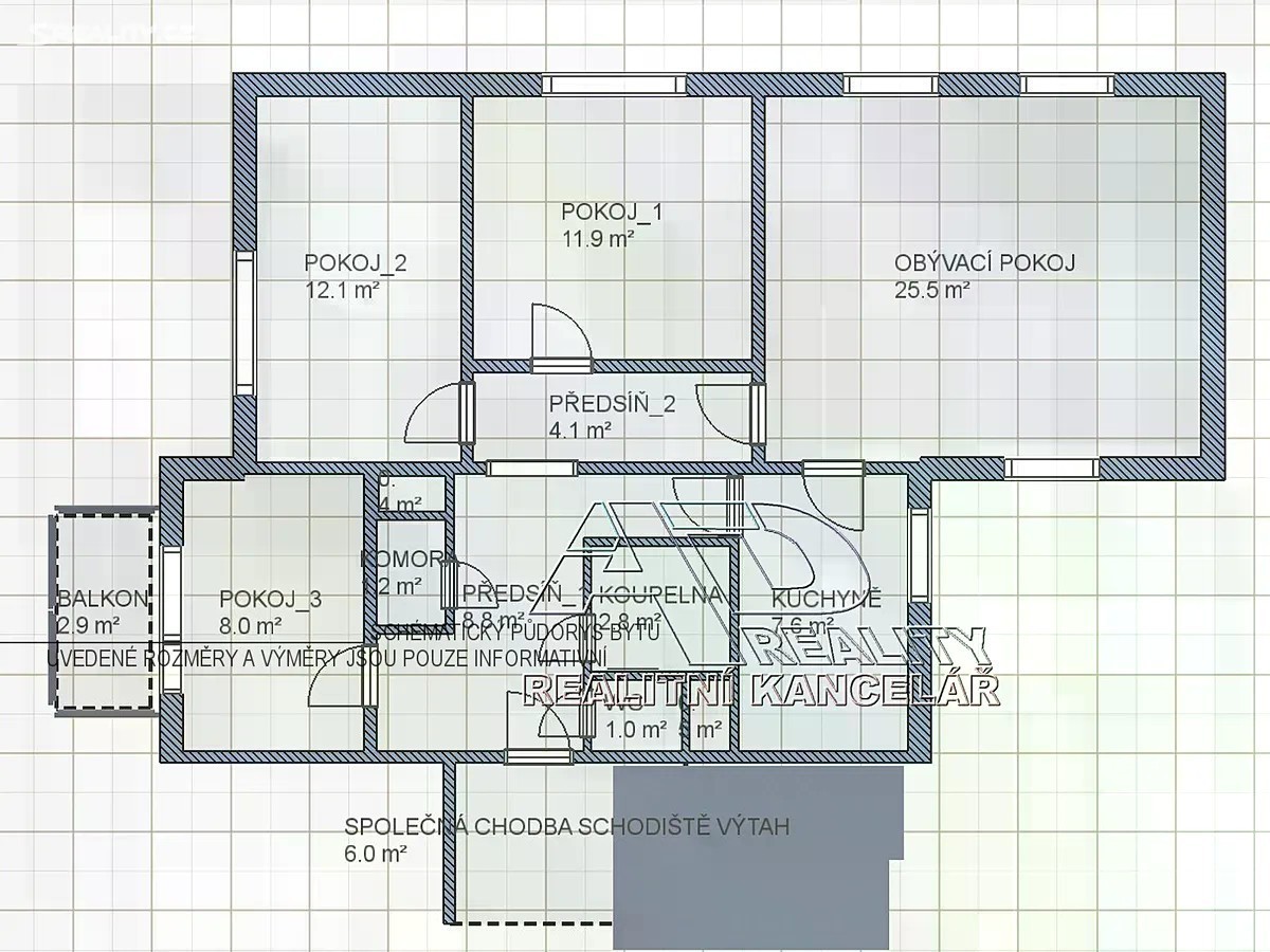 Ve výhradním zastoupení vlastníka nabízíme k prodeji atypický rohový panelový byt velikosti 4+1 s balkonem umístěný v revitalizovaném panelovém bytovém domě na okraji sídliště Šumava v ulici Netolická v Českých Budějovicích. Celková plocha bytu 90m2, podlahová plocha bytu [84,6m2] + balkon [2,3m2] + větší sklep [3,0m2]. Bytová jednotka je v původním stavebně-technickém stavu (odpovídající roku výstavby 1984) bez provedení rekonstrukce či stavebních úprav, vyklizený a připravený k modernizaci. Okna plastová, bytový dům je částečně revitalizovaný, v plánu výměna výtahu. Svým umístěným v okrajové části sídliště a nejvyšším patrem a dispozicí nabízí panoramatický výhled na město, dostupnost veškeré vybavenosti (doprava, obchody, školy…), když okna obytných místností a balkon jsou orientována mimo zástavbu sídliště. Svým novým majitelům byt nabízí nadstandartní užitnou plochu bytu, atypickou / rohovou dispozici (původní řešení jako dvougenerační byt) prostorný obývací pokoj, neprůchozí pokoje, balkon na sever mimo zástavbu sídliště. V rámci rekonstrukce lze bez větších stavebních úprav změnit dispozici bytu, zvětšit koupelnu a využít a zvětšit úložné prostory bytu. Byt je kompletně vyklizený, připravený buď k nastěhování, nebo k modernizaci či rekonstrukci. Současní bytu je kuchyňská linka, elektrický sporák a vestavěné skříně. V bytě jsou osazena plastová okna. Orientace oken bytu (obytných místností) na sever, východ i západ. Dispozice bytu: obývací pokoj [25,8m2], pokoj [12m2], pokoj [12,09m2], pokoj [8m2] s balkonem [2,25m2], kuchyně [8,2m2], prostorná předsíň [13,76m2], koupelna [2,8m2] a WC [1,0m2] a WC [1,0m2]. K bytu je k dispozici sklepní koje v 1.NP (technické podlaží - přízemí) domu o výměře [3,0m2]. Topení v bytě centrální / ústřední dálkové (radiátory), podružné měření spotřeby teplé a studené vody (vodoměry), samostatné měření spotřeby elektřiny (elektroměr). V bytě je možnost připojení internetu (Starnet) a STA. Byt je po celou dobu ve vlastnictví jednoho majitele (rodiny), který v bytě bydlel (byt nebyl nikdy pronajatý). Byt je umístěn v 9.nadzemním podlaží, poslední (8.obytné patro) bytového domu s výtahem, bytový dům je průběžně udržovaný. Kolaudace objektu proběhla v roce 1984, jsou pouze 2 byty na patře. Energetická náročnost budovy / PENB v hodnotě [C]. Vlastnictví: bytová jednotka ve vlastnictví (osobní vlastnictví) zapsaná v katastru nemovitostí. Na nemovitosti (bytové jednotce) neváznou žádná věcná břemena hypotéka či exekuce, jiná práva třetích osob. Financování koupě lze řešit hypotékou čí úvěrem banky. Veškerá občanská vybavenost včetně MHD je v dosahu, základní škola, školka, obchody, služby, banka v blízkosti. Parkování na parkovišti podél domu / v blízkosti domu. Byt je k dispozici po dohodě ihned. Aktuální cena uvedená shora je kompletní cenou včetně provize RK a majetkoprávního servisu spojeného s koupí nemovitosti. Pro bližší informace a termíny prohlídky volejte makléře (Jindřich Dvořák, Dipl.Tech). Nemovitost je nabízena výhradně v nabídce realitní kanceláře AD-REALITY České Budějovice.